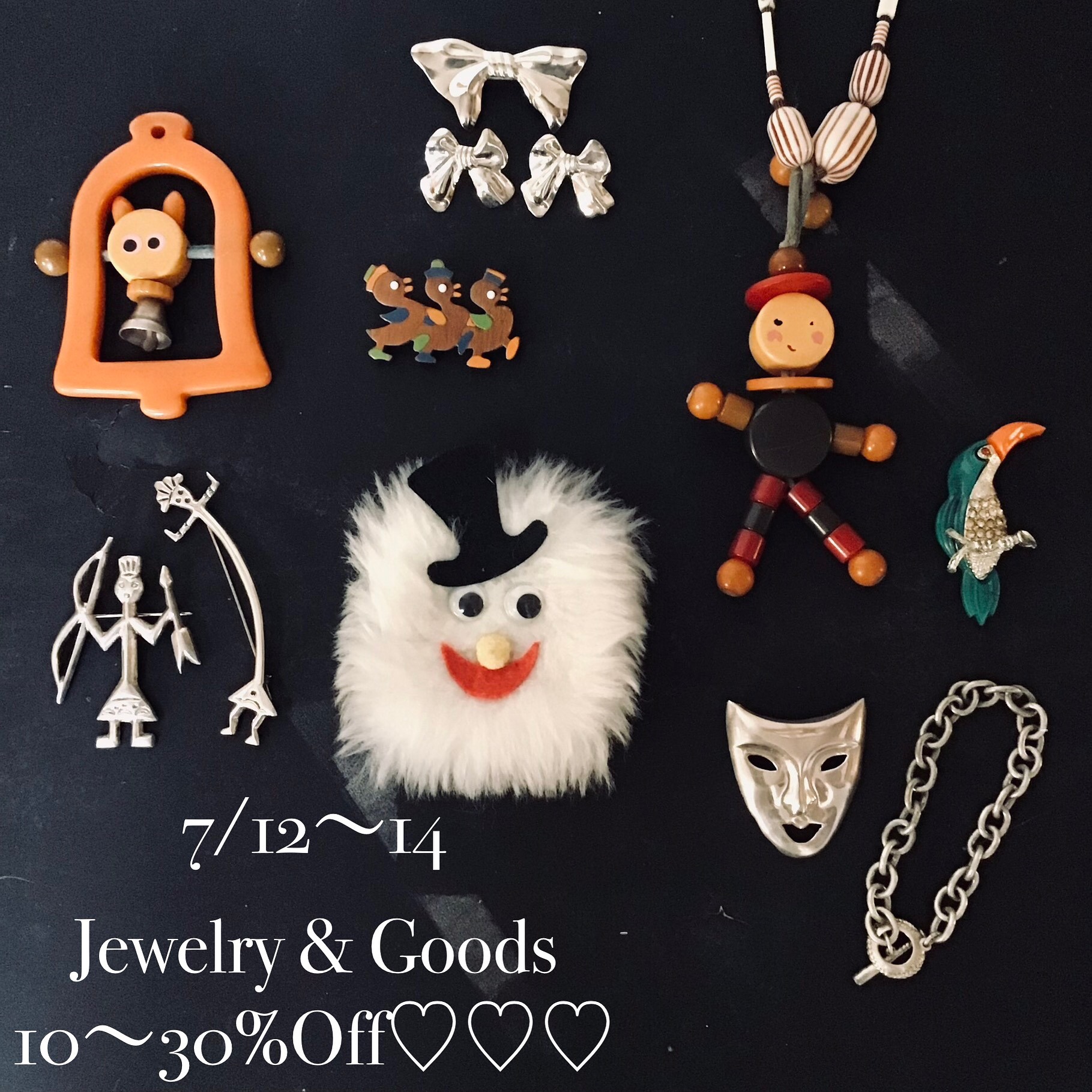期間中、ヴィンテージシルバーやコスチュームジュエリー、ドリームペッツなどを10%〜30%OFFさせて頂きます◎