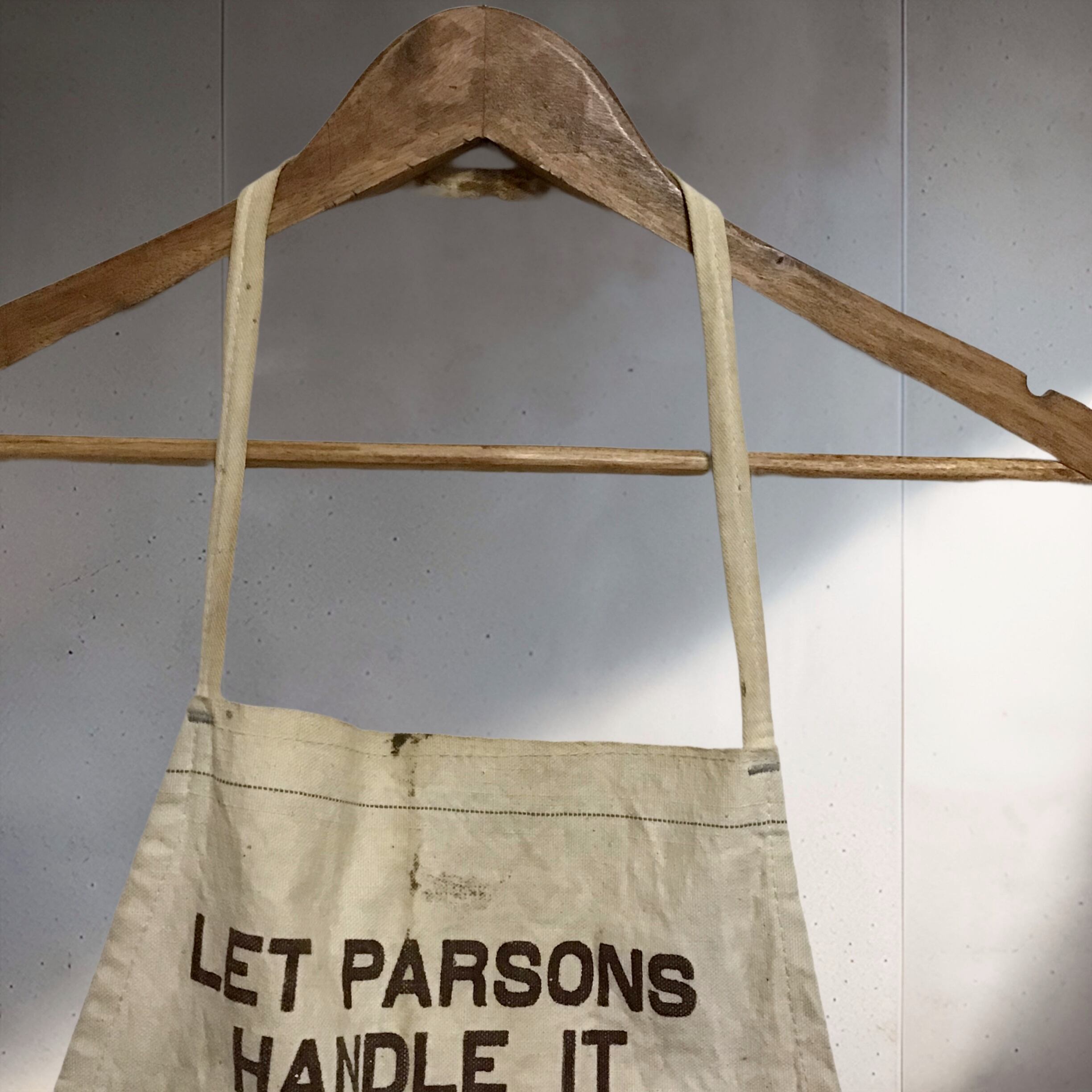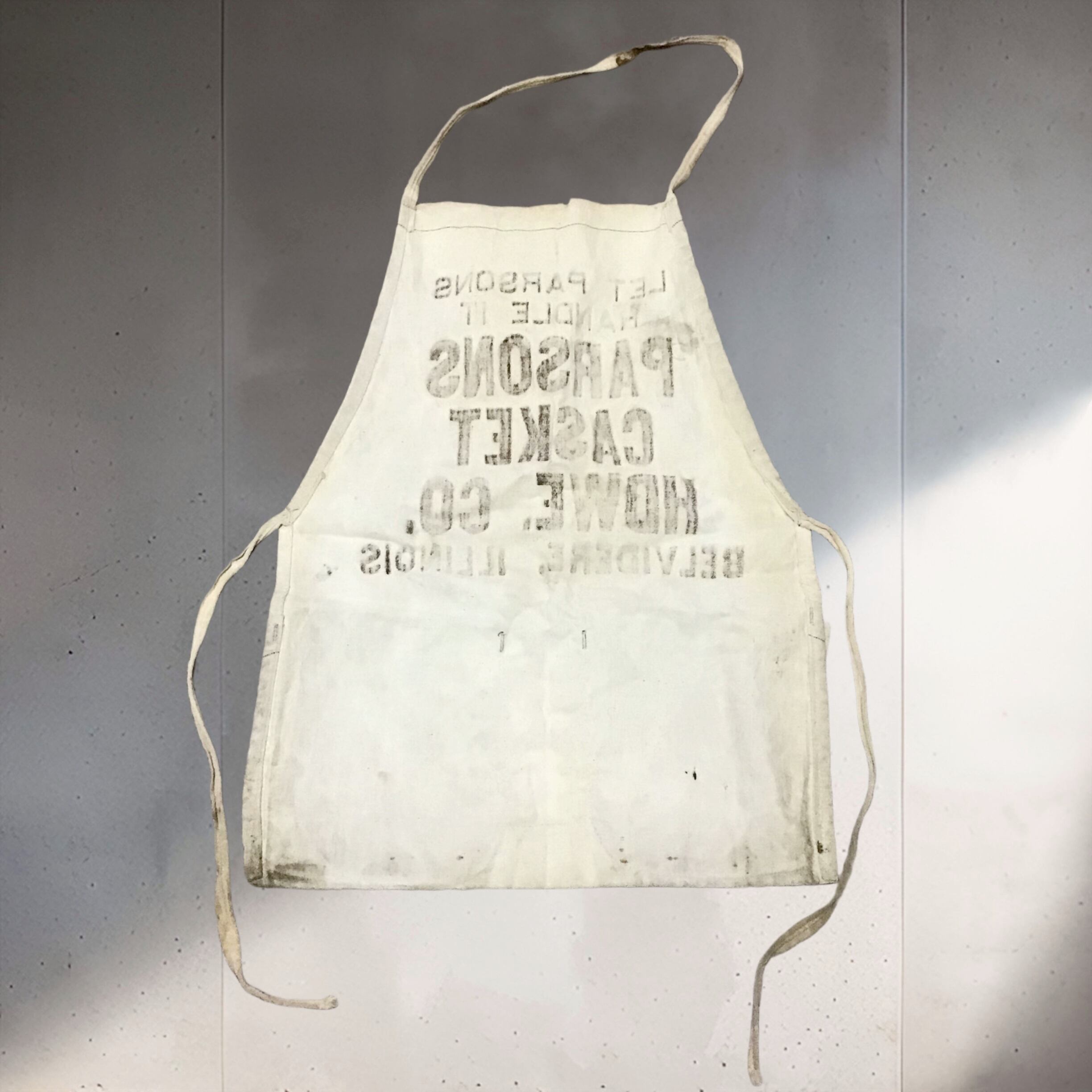ヴィンテージエプロン。良いプリントに汚れもたくさんのヴィンテージ感溢れる雰囲気の良いお品です♡着丈も程よく、アトリエコートやロングシャツに合わせるといい感じです◎