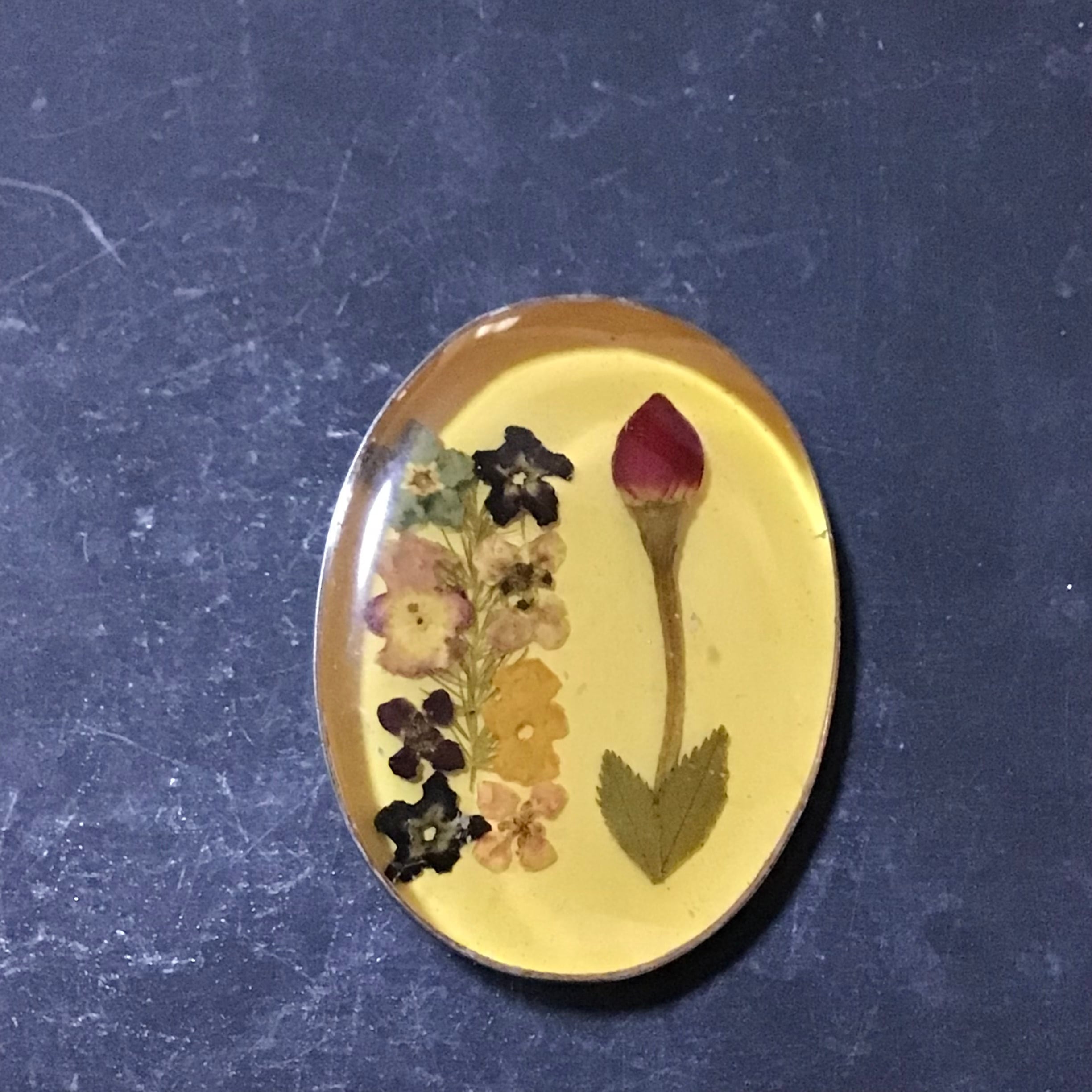 可憐なドライフラワーが閉じ込められたブローチ。ペンダントトップとしても使って頂けるお品です♡お花の色合いとバランスも可愛らしく店主お気に入りです◎