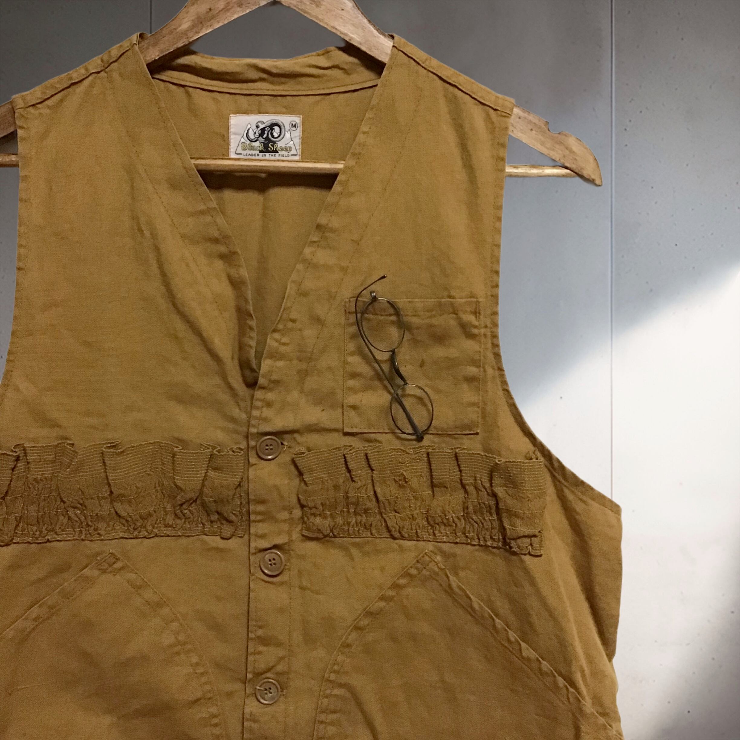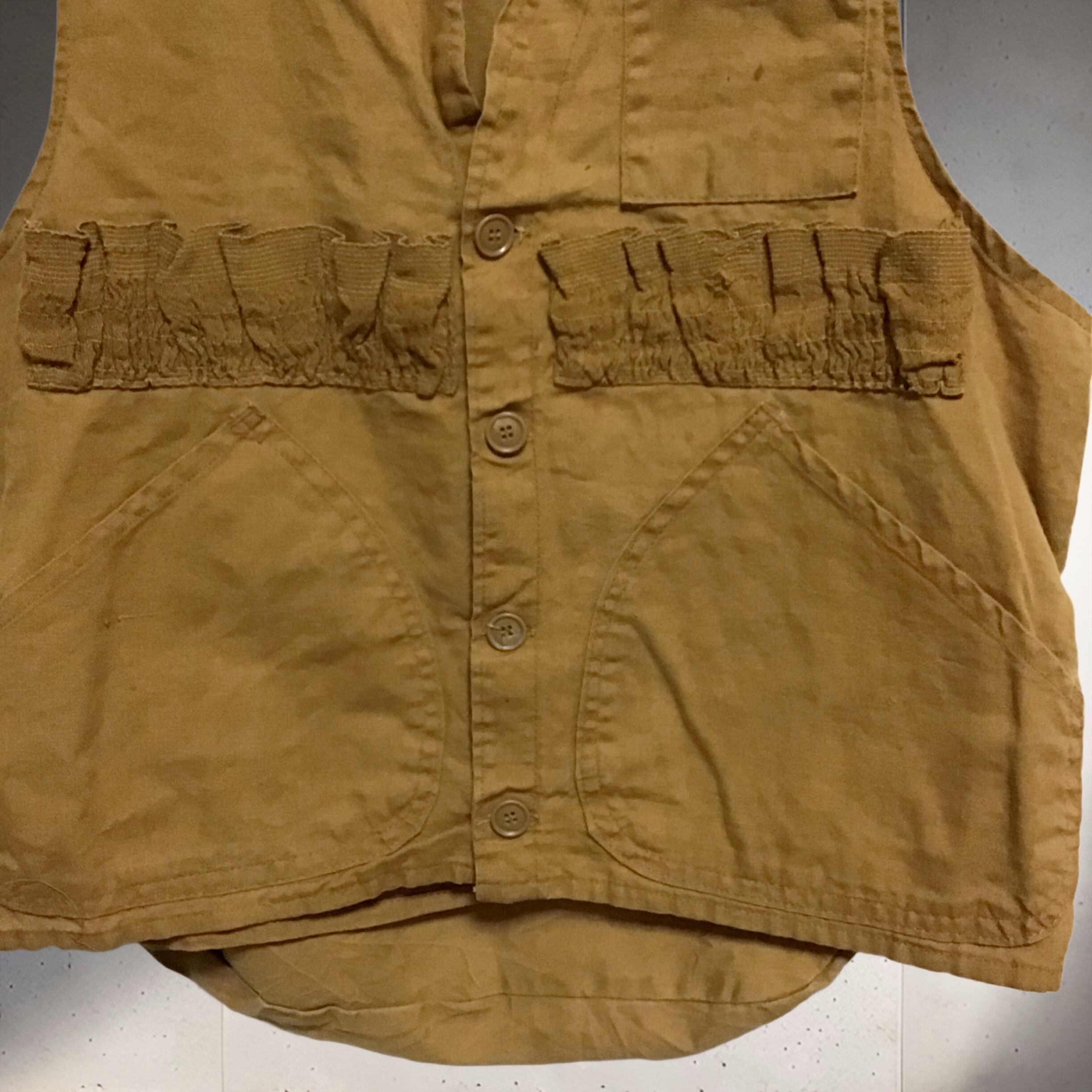 1970年代ハンティングベスト、ゲームポケットは中がラバー加工されています。斜めポケットが良いデザイン、軽めの素材でいろいろな物に合わせやすく一枚あると重宝するアイテムです◎フェスやアウトドアにはゲームポケットが意外と便利だったり、店主はワンピースなどちょっと甘めのスタイルにプラスするのが好きです◎