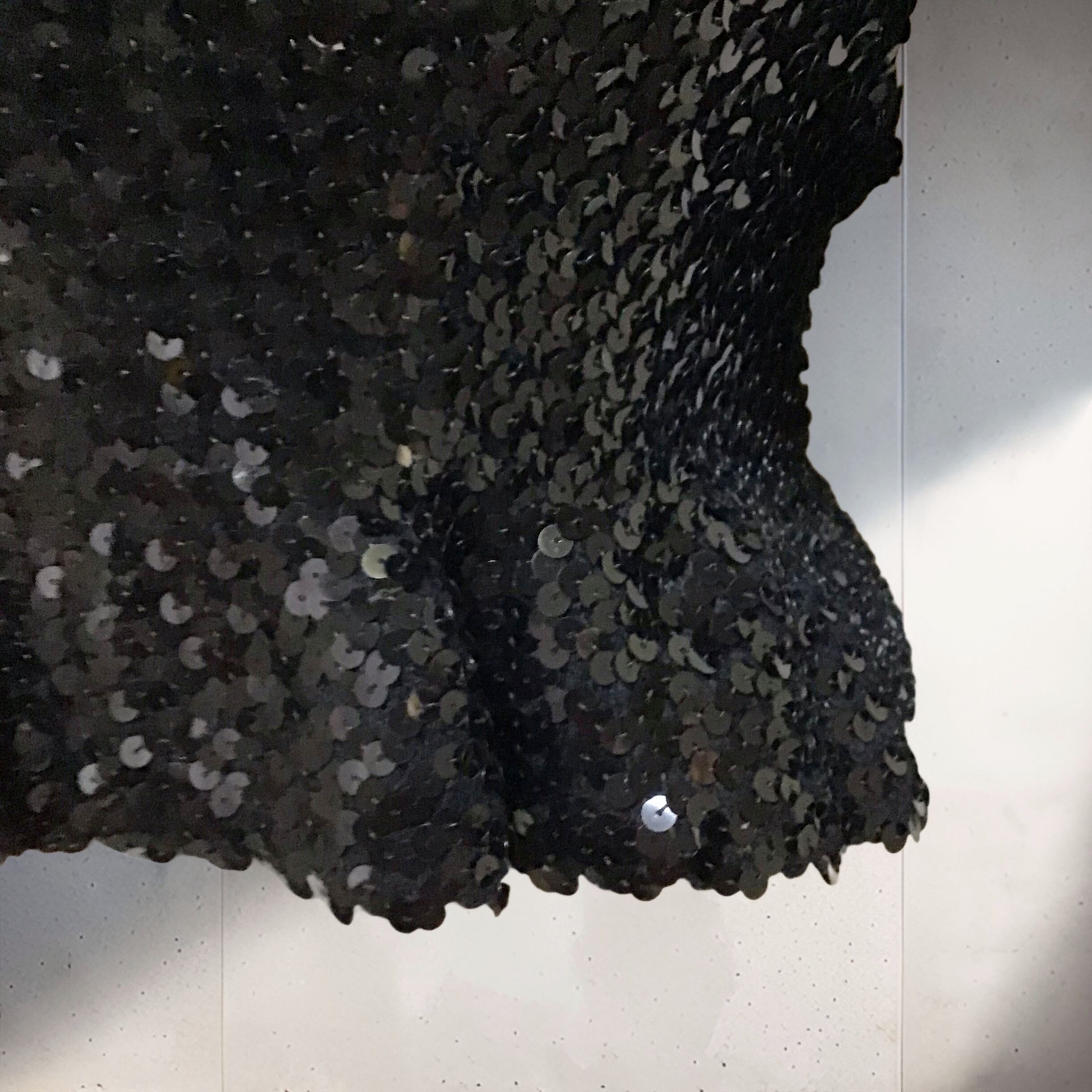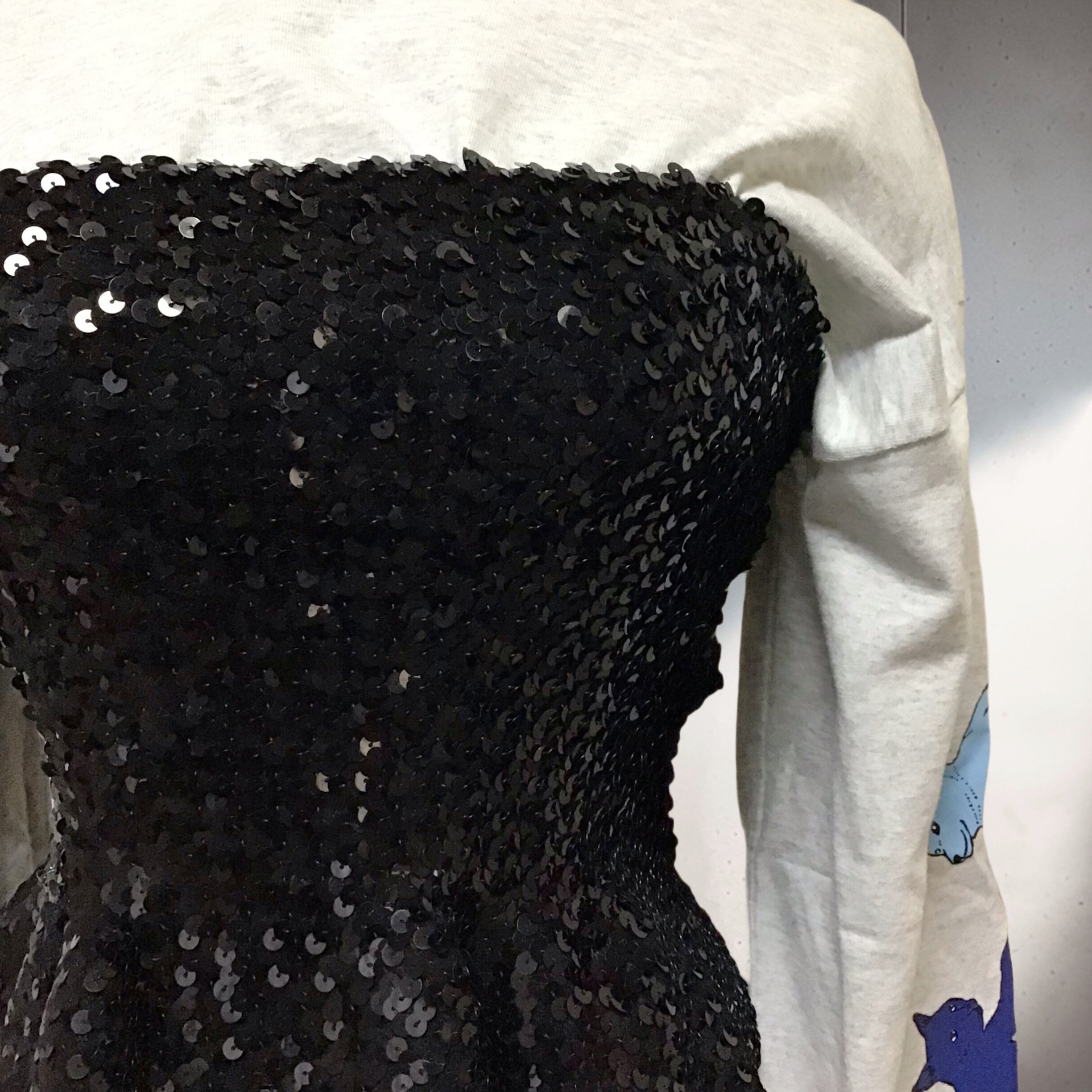 スパンコールと裾のペプラムがとても可愛いベアトップです♡裏はニット素材で伸びも良いのでいろいろな物に合わせられそうです◎ロンTやブラウスに合わせるのが今の気分♡お色も黒で万能感があり店主おすすめのお品です!