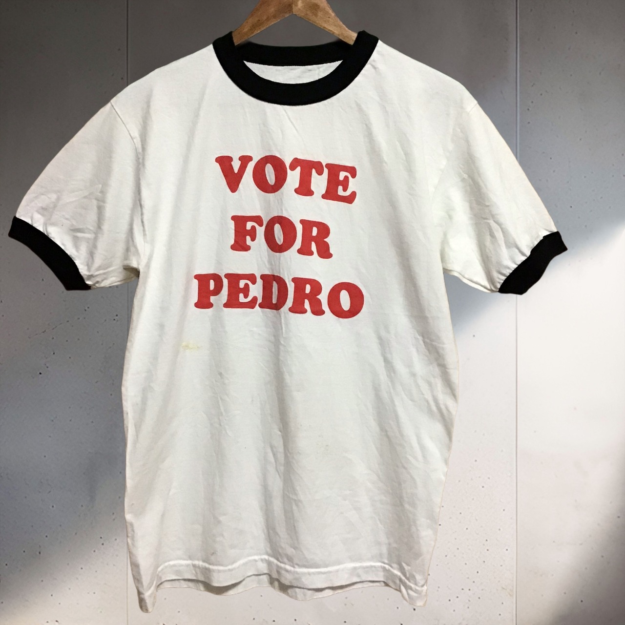 2000年代のムービーTシャツ。「ナポレオン ダイナマイト」というコメディー映画で主人公が着ていたプリントです。本家より少し大きめのフォントと黒のリンガーが店主的にはお気に入りです♡お腹付近にペンキのような塗料の付着はありますが、生地はとてもしっかりしています◎