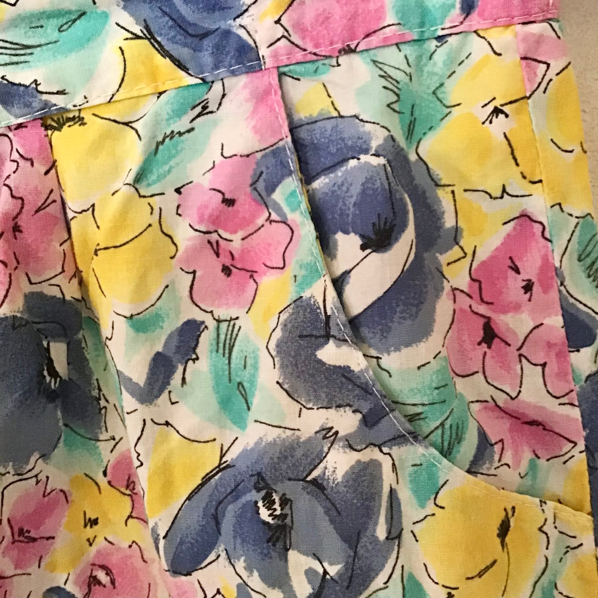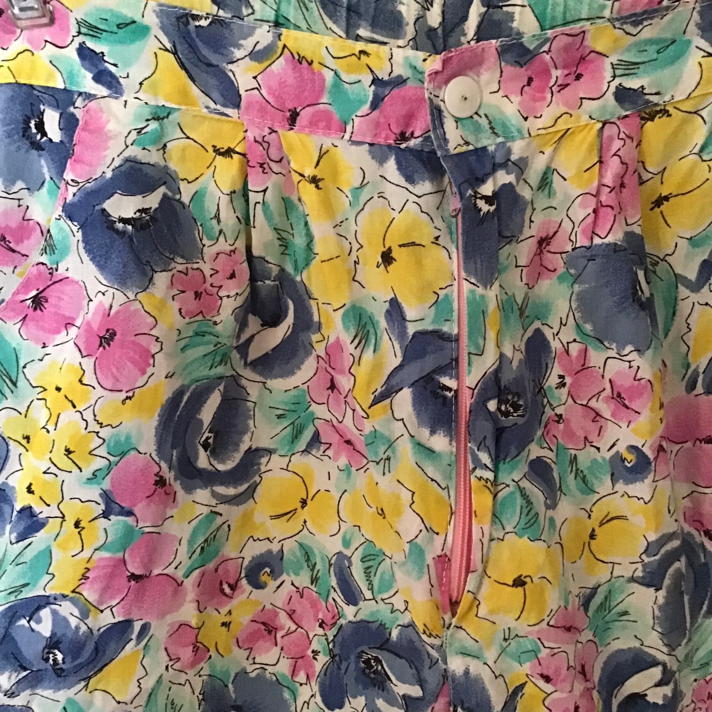 フラワープリントのショートパンツ。おそらくハンドメイドの裏地のない軽い履き心地と,90年代らしいムードのプリントが夏にぴったりです♡Tシャツとスニーカーに合わせるだけで可愛いコーディネートの完成です◎