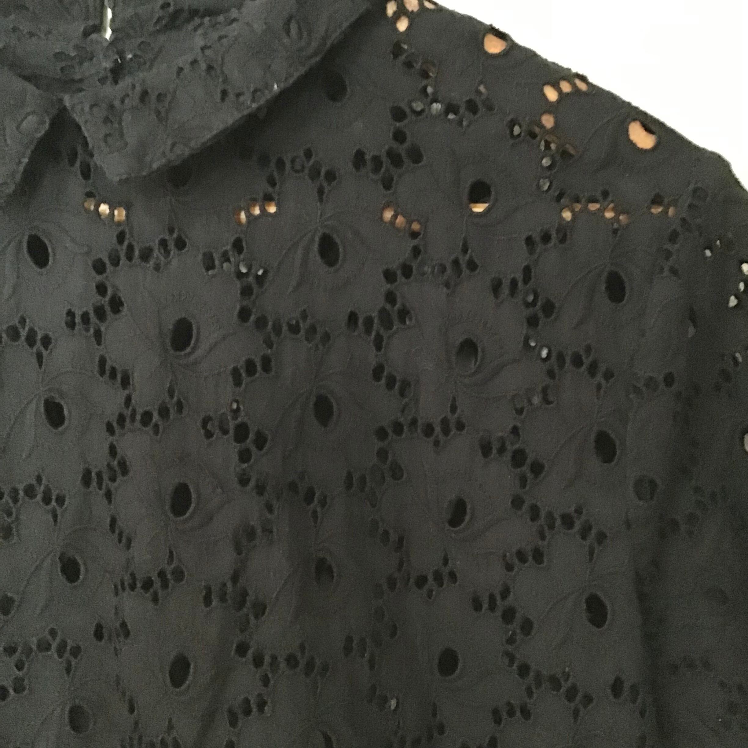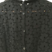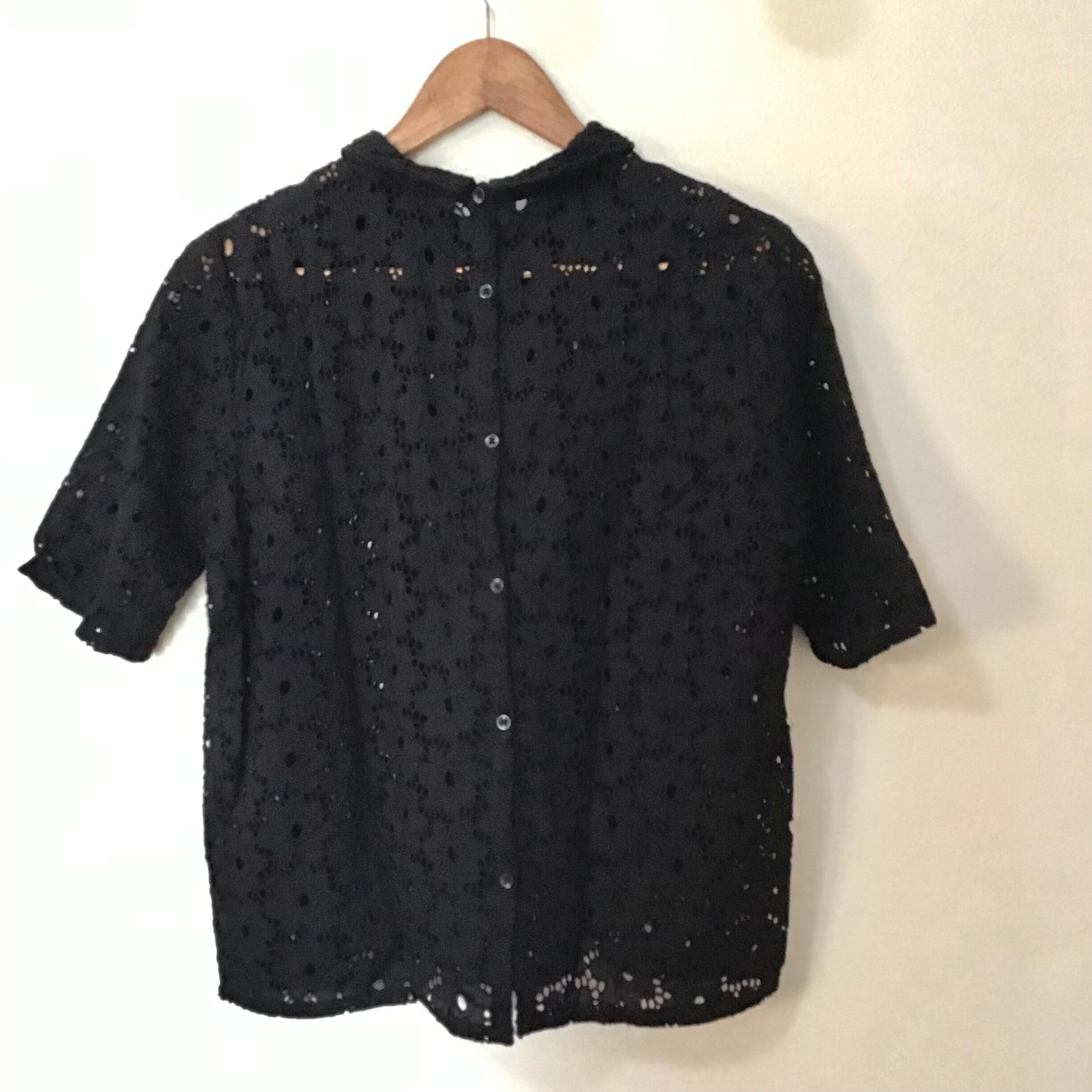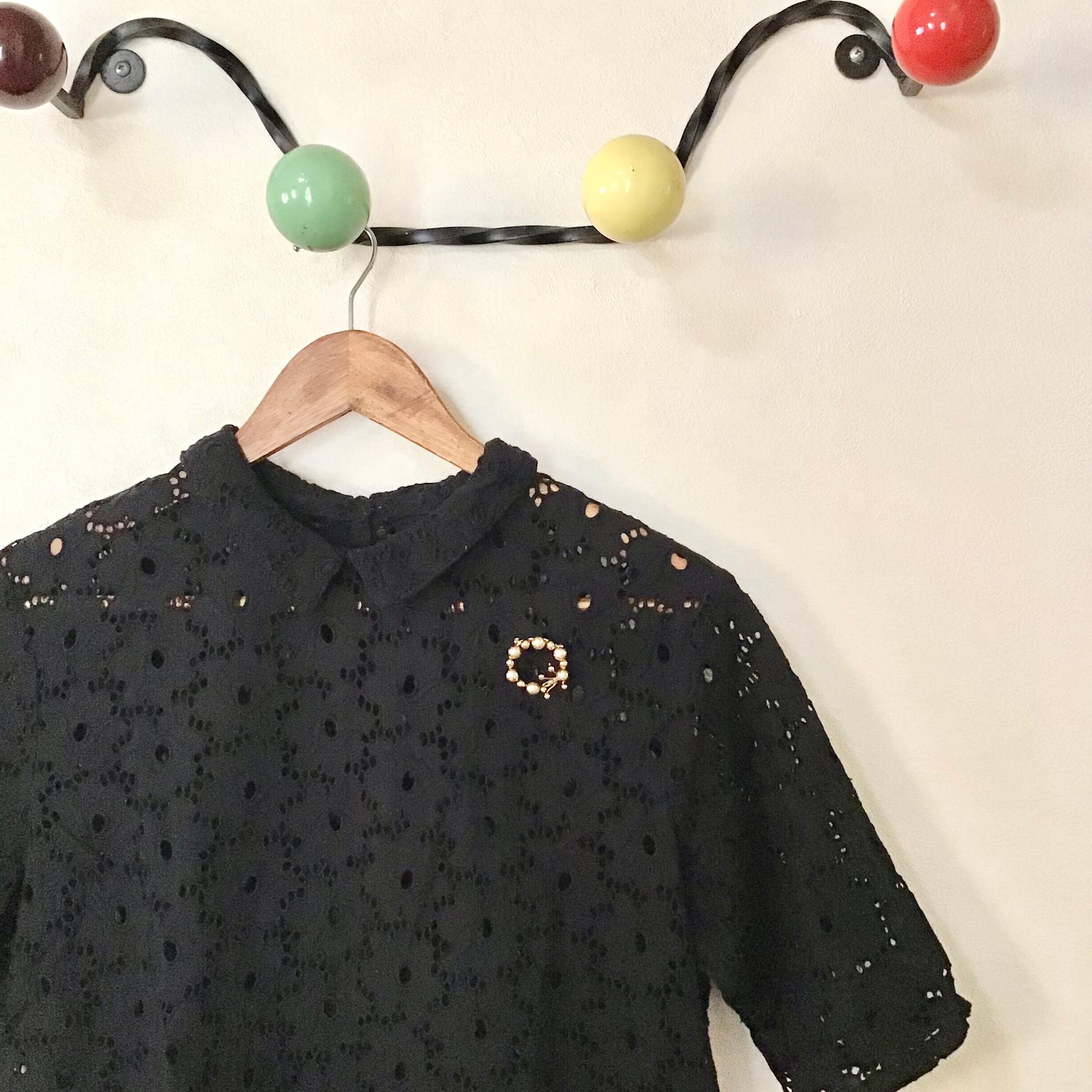 カットワークレースのブラウス。花柄のレース生地に小ぶりな襟と後ろボタンのデザインも可愛いです♡ブローチを合わせてレディに着こなしたり、透け感を活かしたコーディネートも可愛いと思います◎