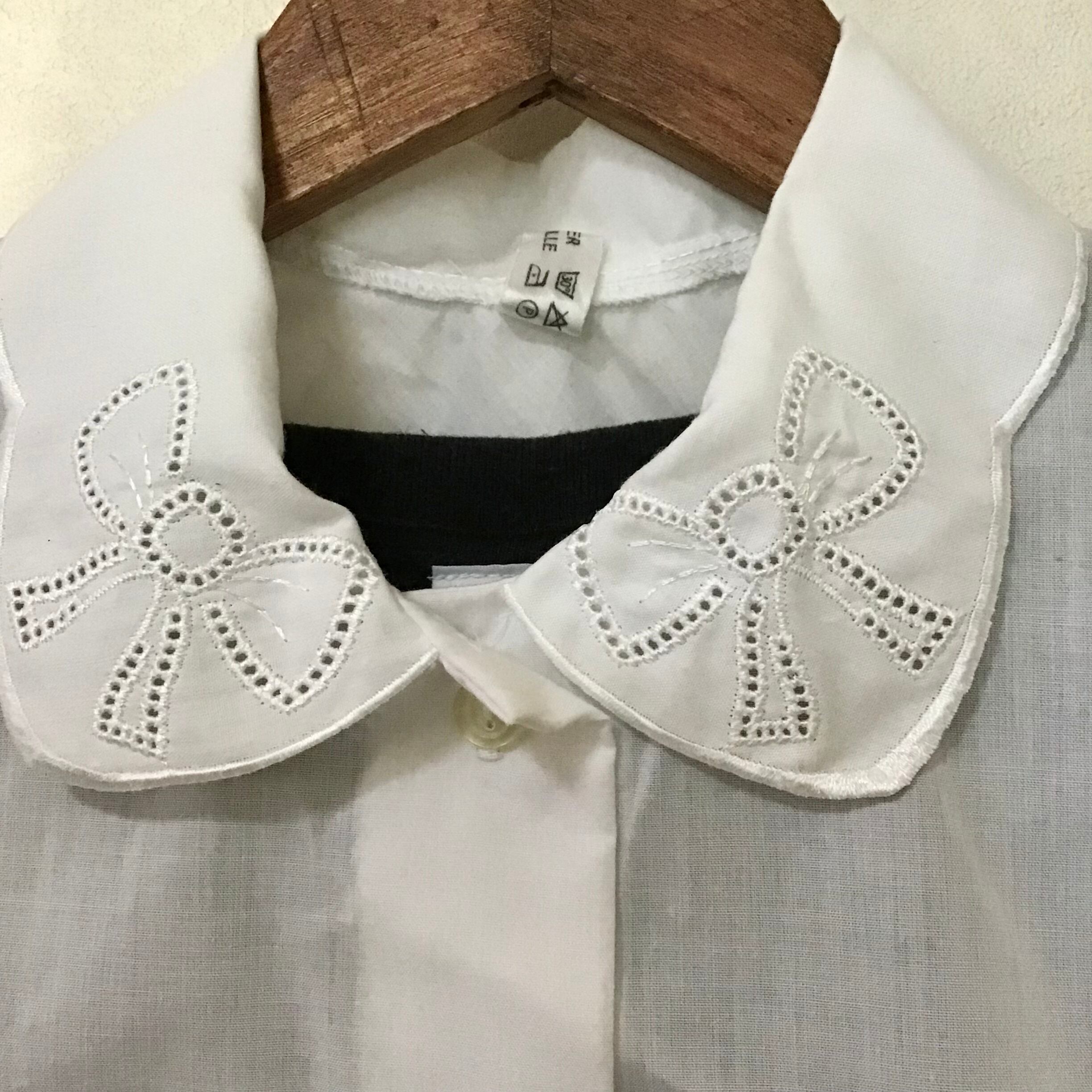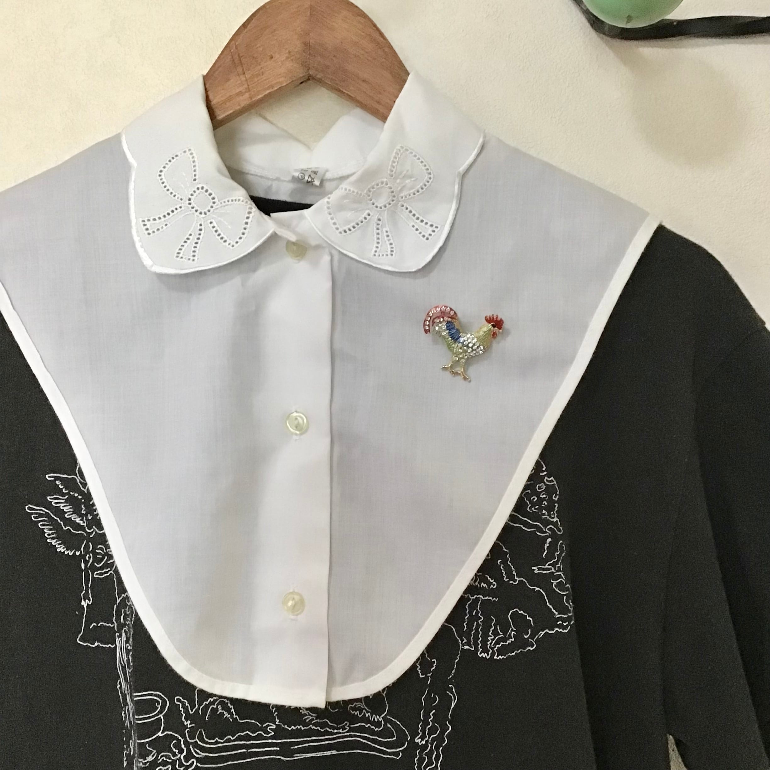 リボンのつけ襟。控えめなデザインが使い勝手良さそうでおすすめです♡襟の後ろはさりげなくスカラップで可愛いです◎インでもアウトでも、シンプルなコーディネートのプラスワンアイテムに!