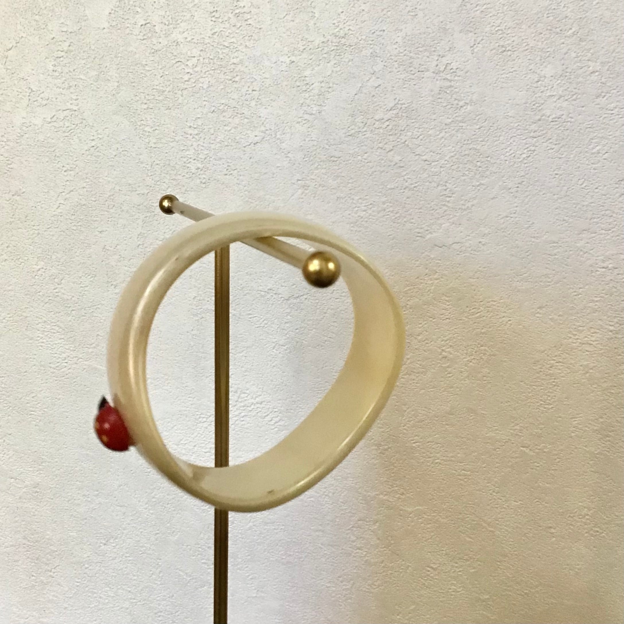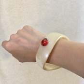 オールドプラスチックのバングル。パールがかったクリーム色にてんとう虫がポイントになって可愛いです♡