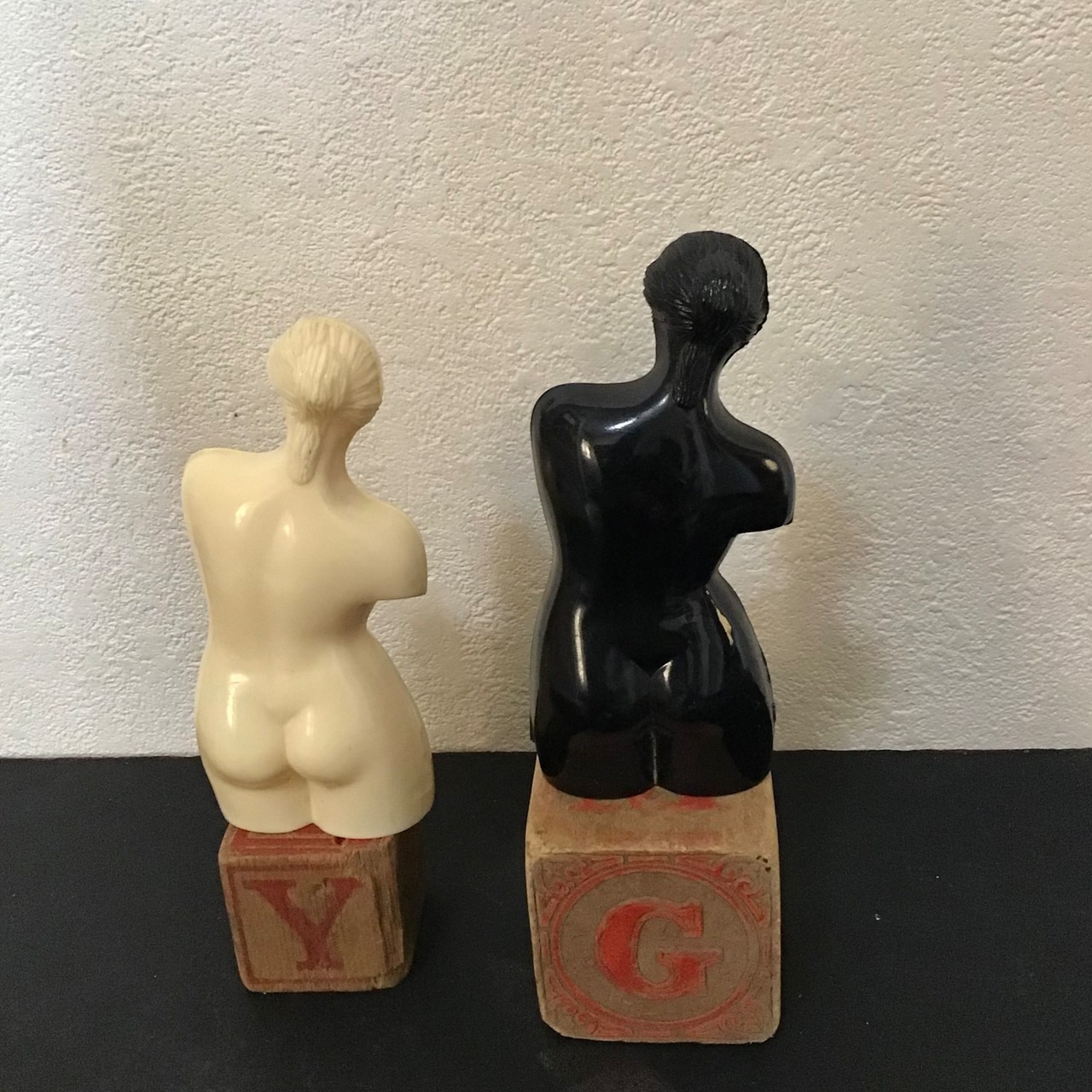 1960年代、オールドプラスチック製のミロのヴィーナスデザインのソルト&ペッパーです◎ユニークなデザインと、経年したプラスチックの色味や、モノトーンなのがとても雰囲気良く店主お気に入りです♡胸の先から塩コショウが出るようになっています。オブジェとして飾って頂くのがおすすめです◎