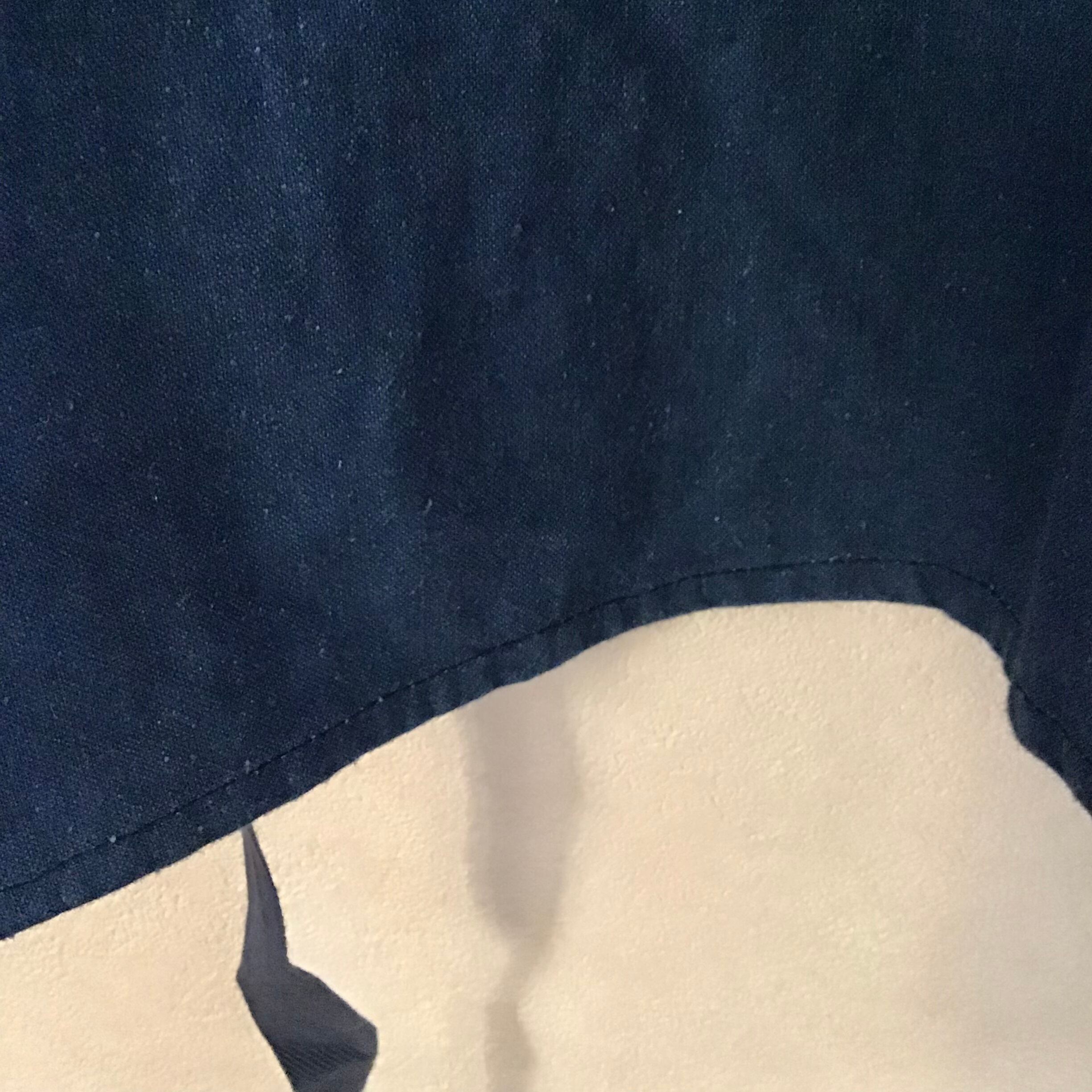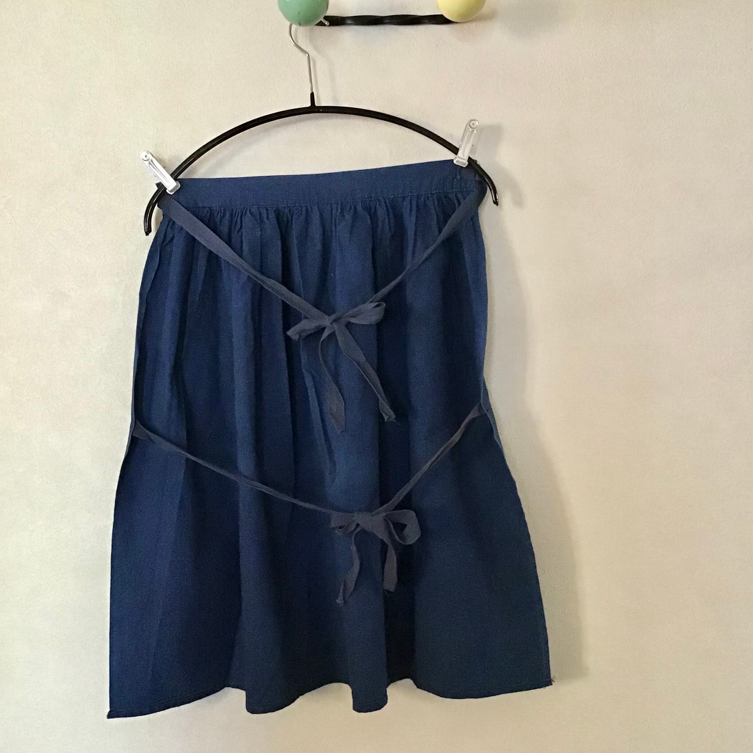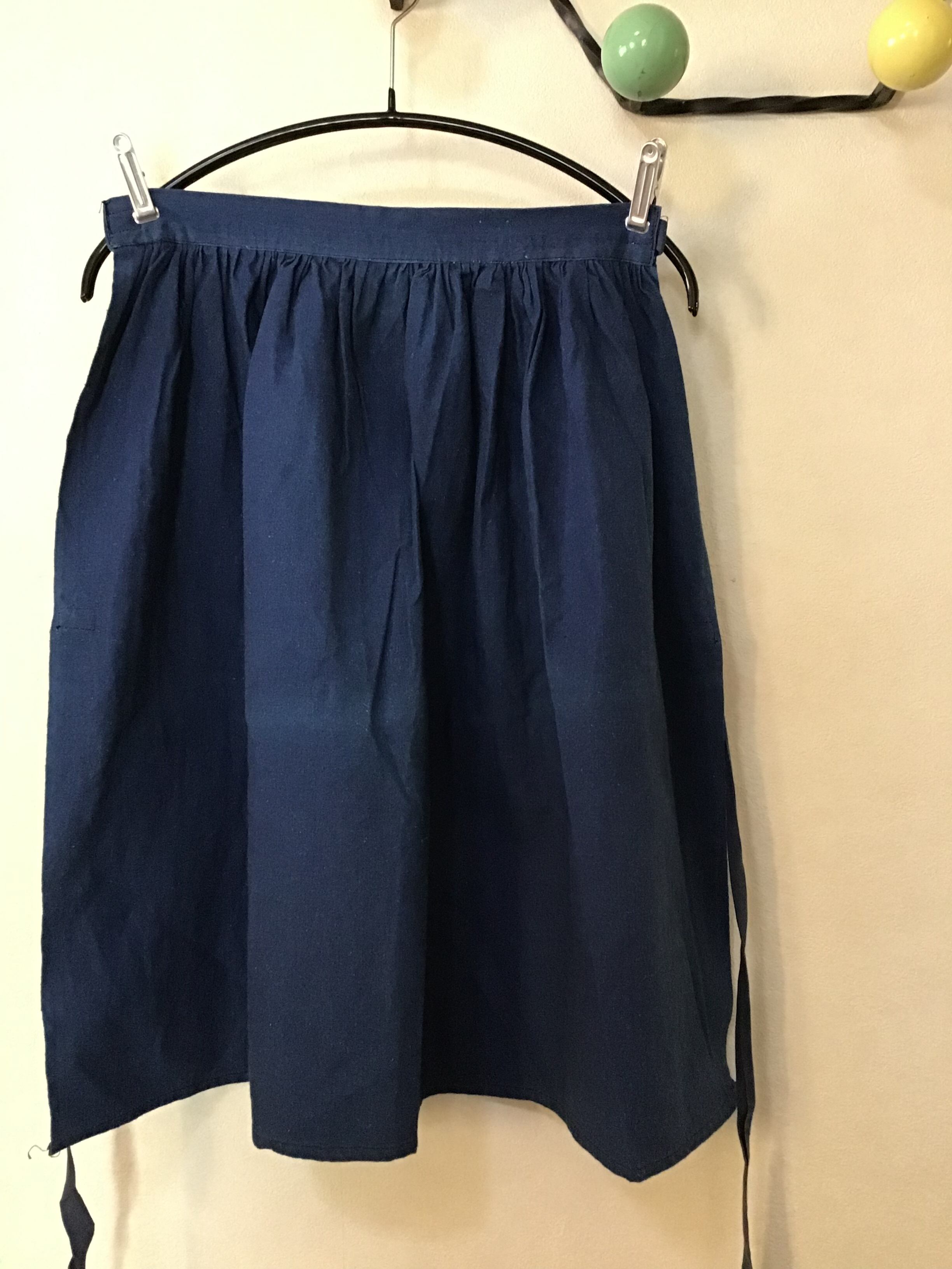 1940〜50年代頃のインディゴ染めのエプロン。少しネップがある柔らかめのコットン素材で両端は耳になっています。青みのあるインディゴが良い風合いで、少し焼けはありますが生地もしっかりしており、ワンピースやスカートに重ねたりと様々なコーディネートに使い易い素敵なお品です♡ウエストと腰に紐が付いています。