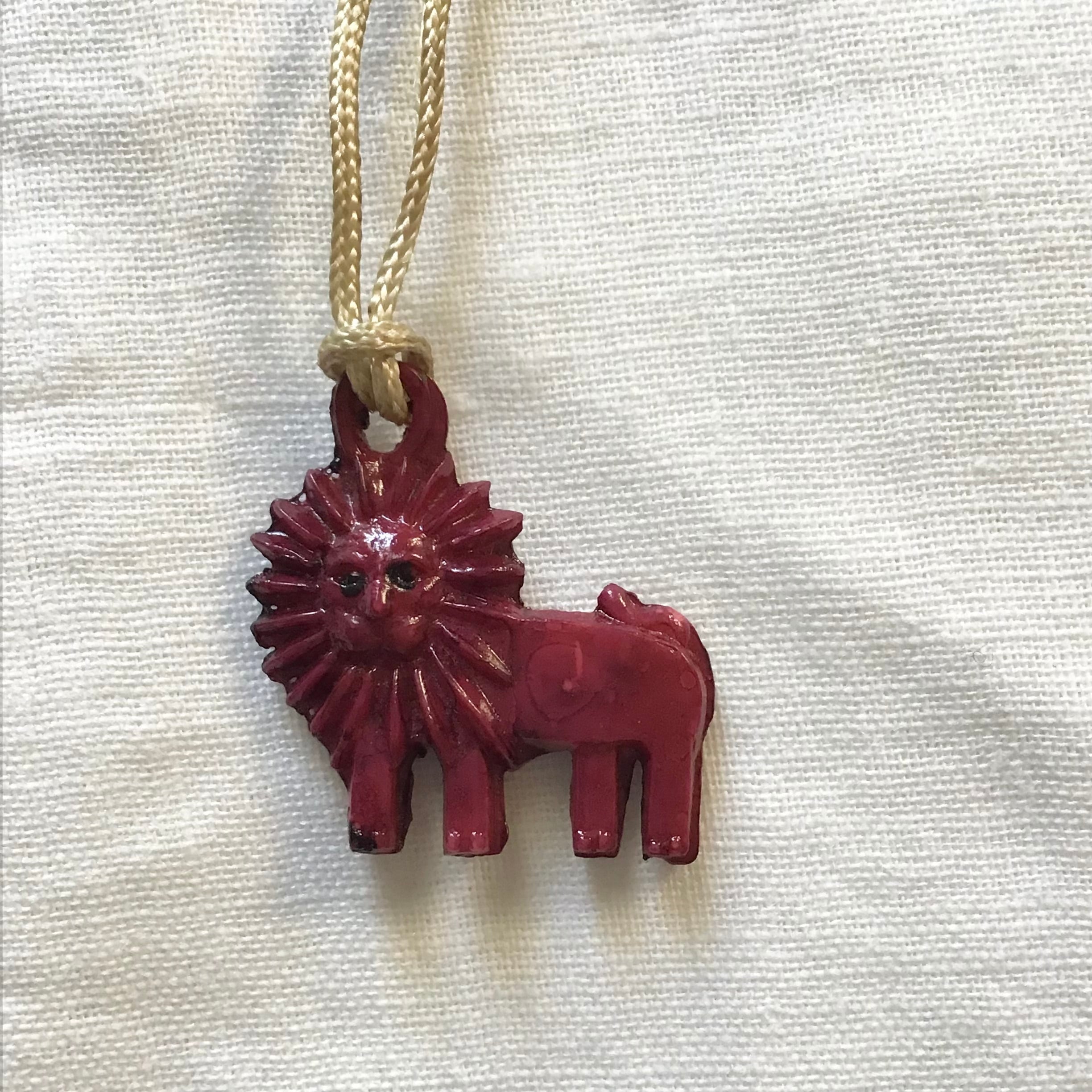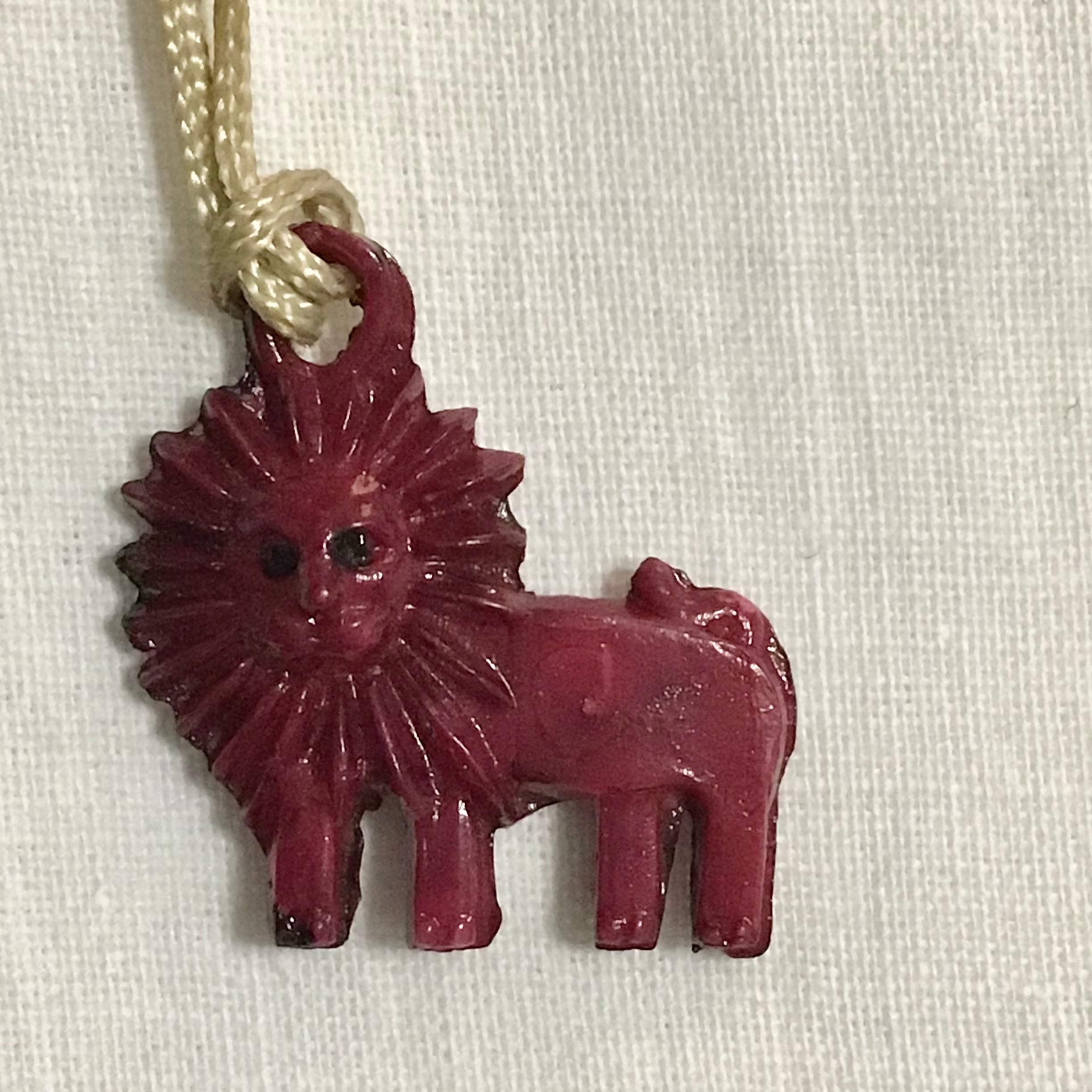1950年代のガムボールのおまけチャーム、小さなライオンです。当時の紐がそのまま付いており、ブローチやネックレスにしたり、襟の先やお気に入りのポーチに縫い付けても可愛いです♡ボールチェーンをお付けしますので、必要に応じてお使いください◎