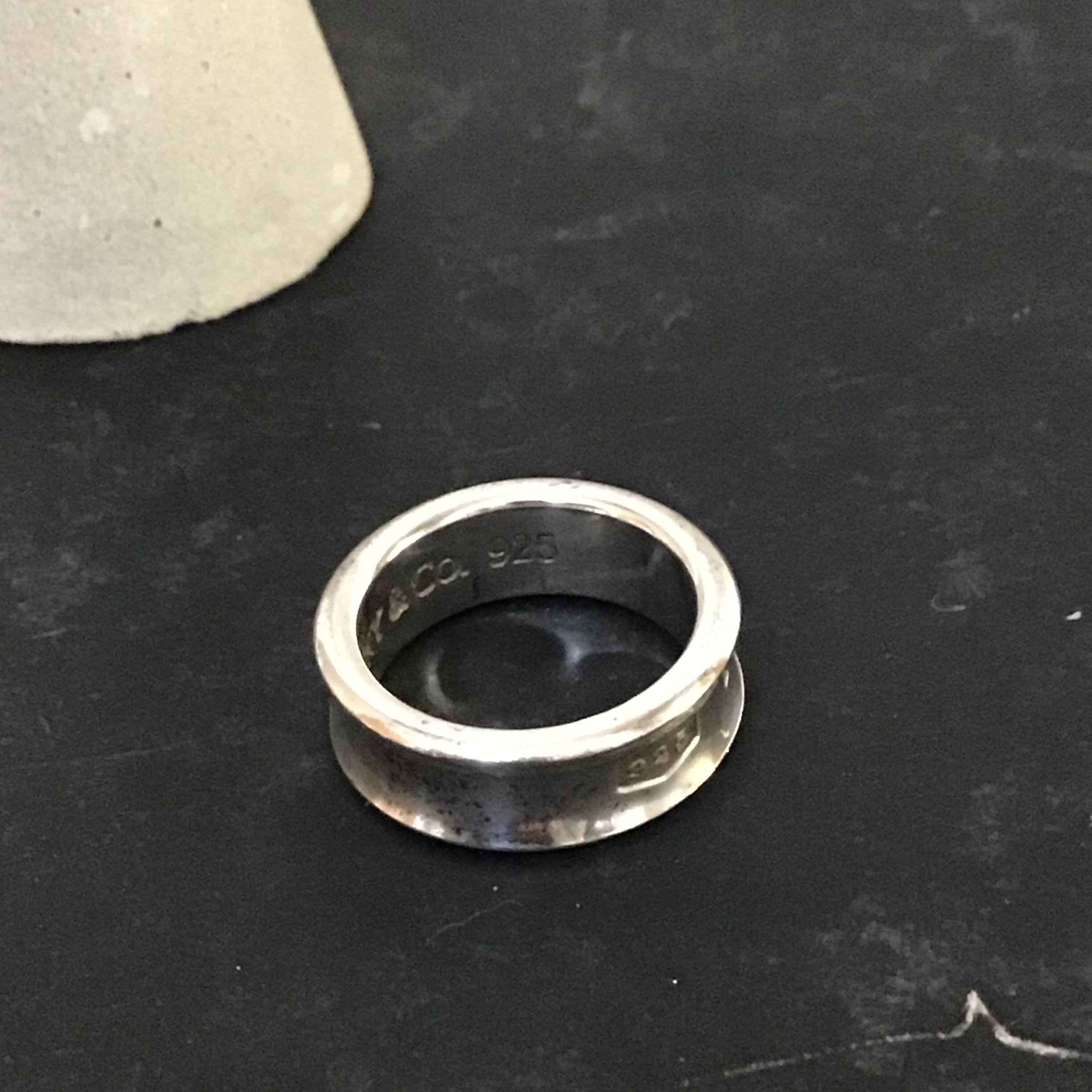 ティファニーのシルバーリング、1997年の刻印入り。シンプルな定番のリングで使いやすく、コーディネートを選ばない正にエターナルなお品です◎さらに細いリングとの重ねつけもおすすめです♡