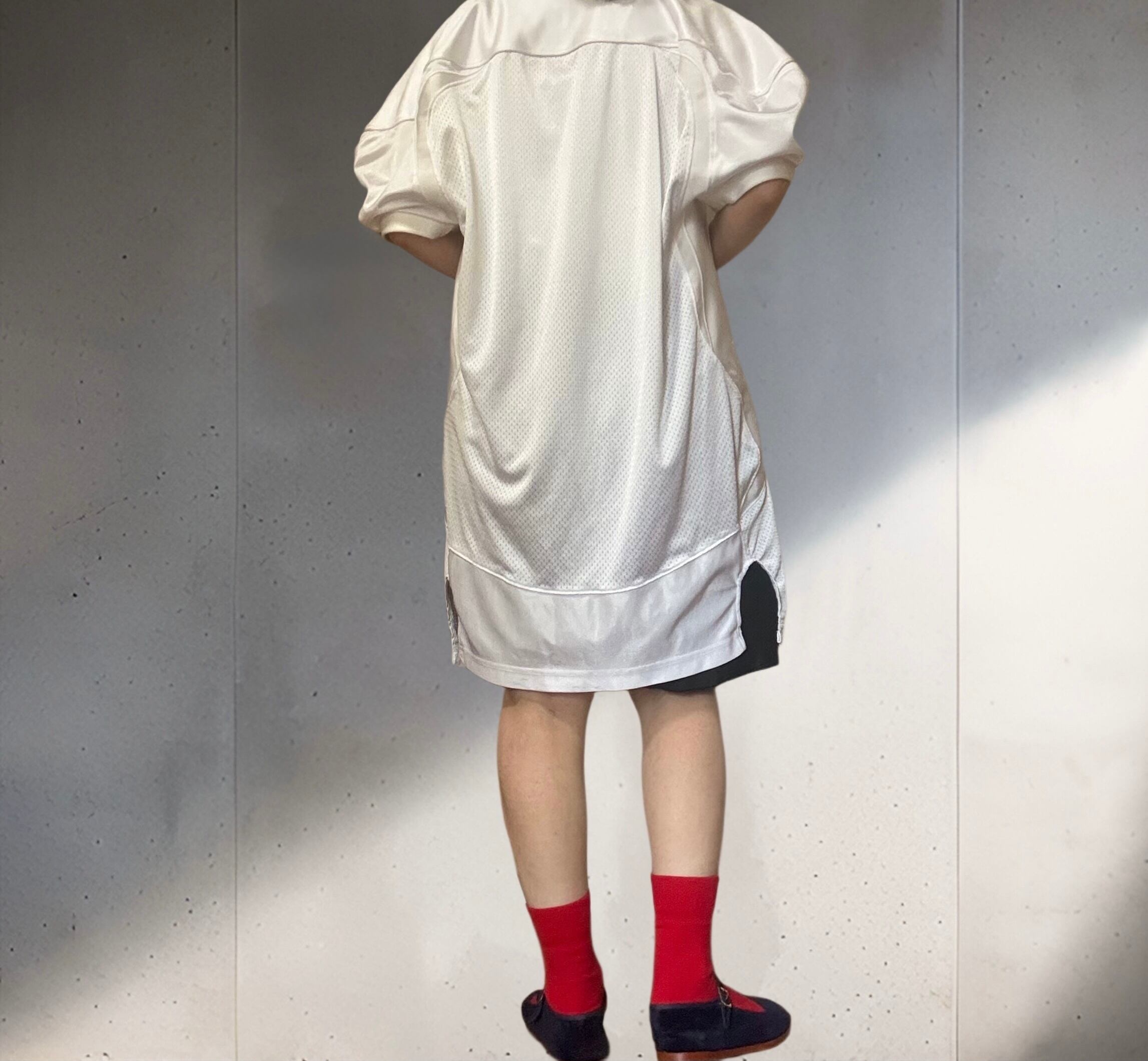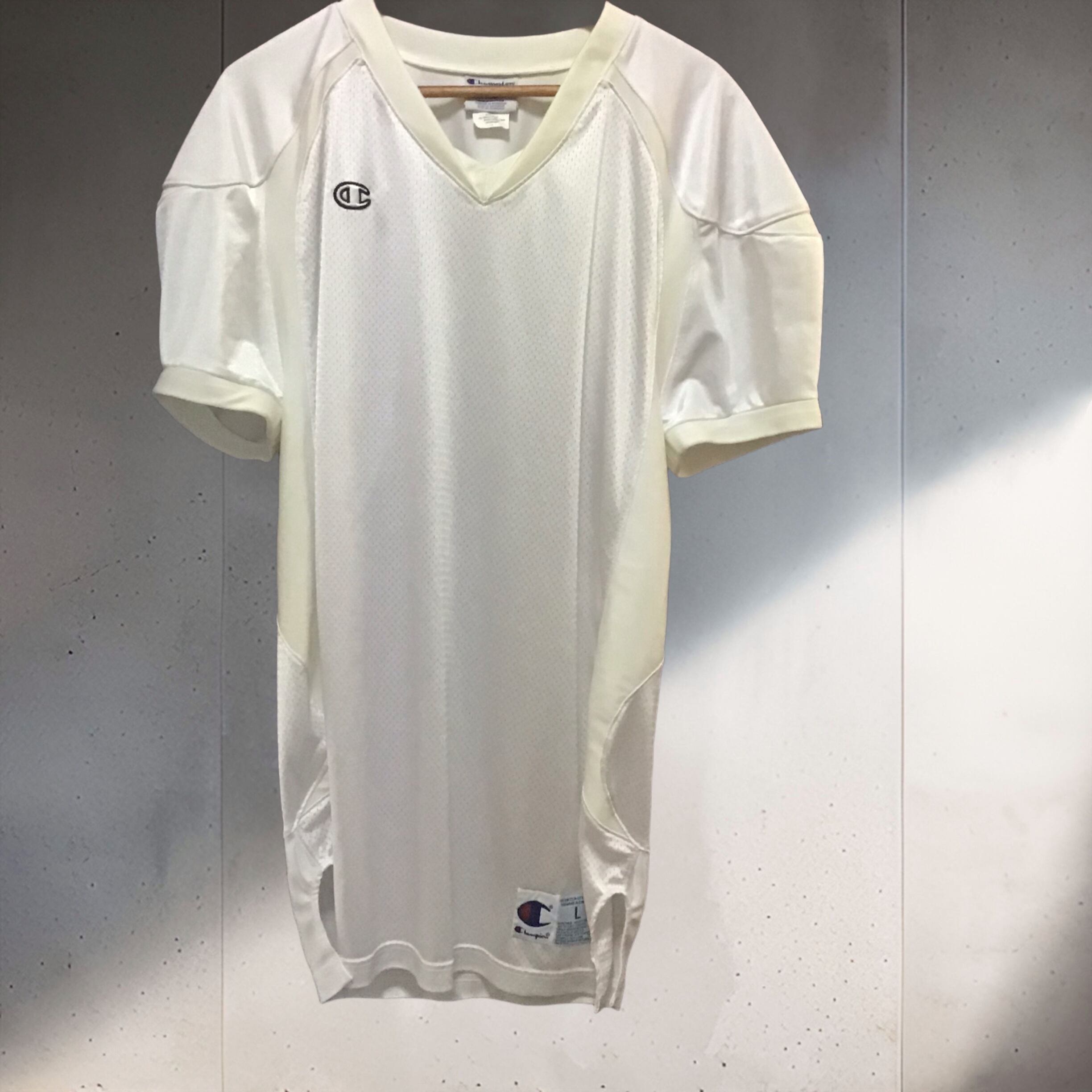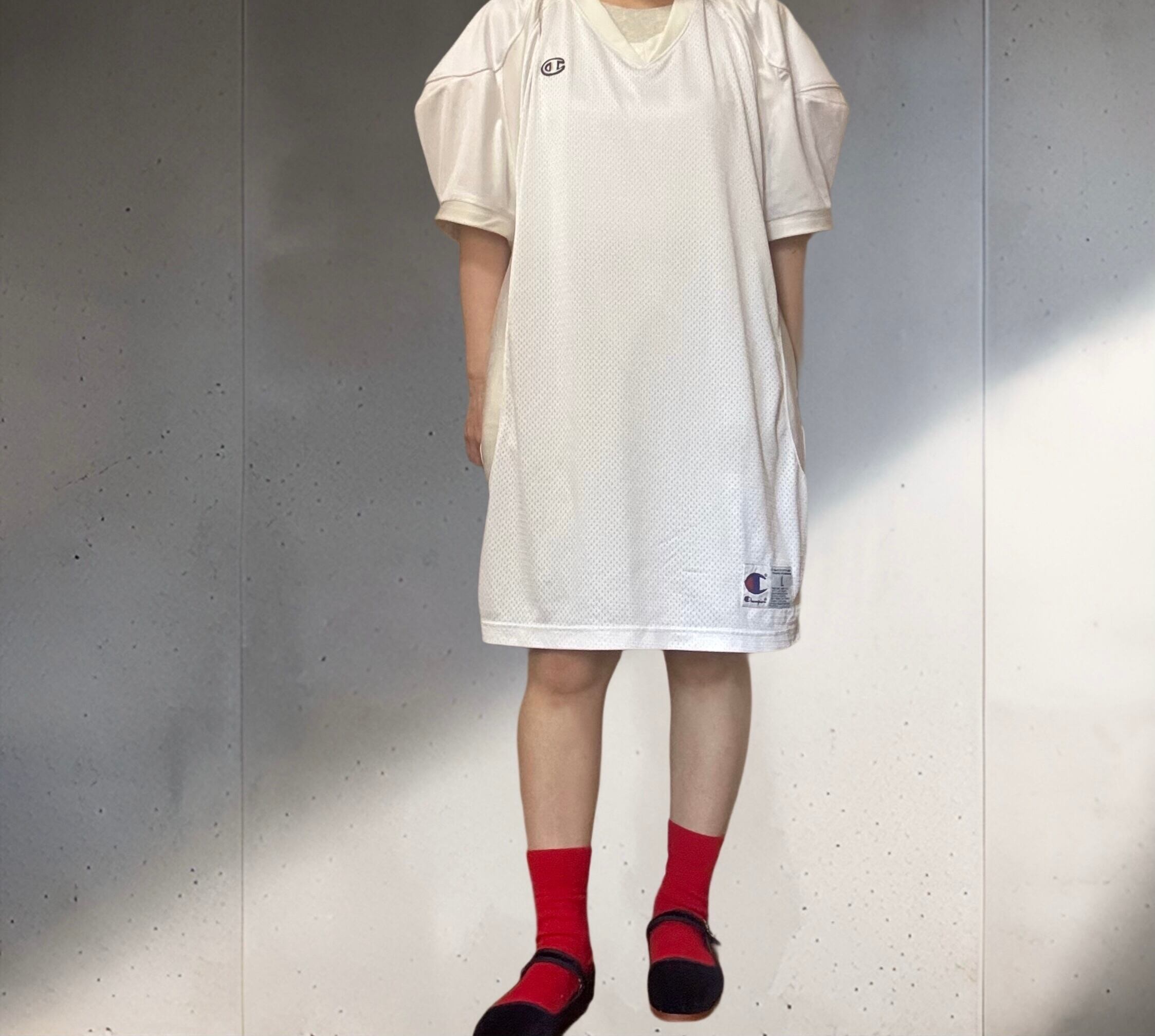 Championのゲームシャツ。肩や脇の立体的なデザインがゲームシャツならではで、既存の服にはない面白さがある良いお品です♡スポーティとはまた違った解釈で着たくなる店主お気に入りです◎艶のあるホワイトも良いです!