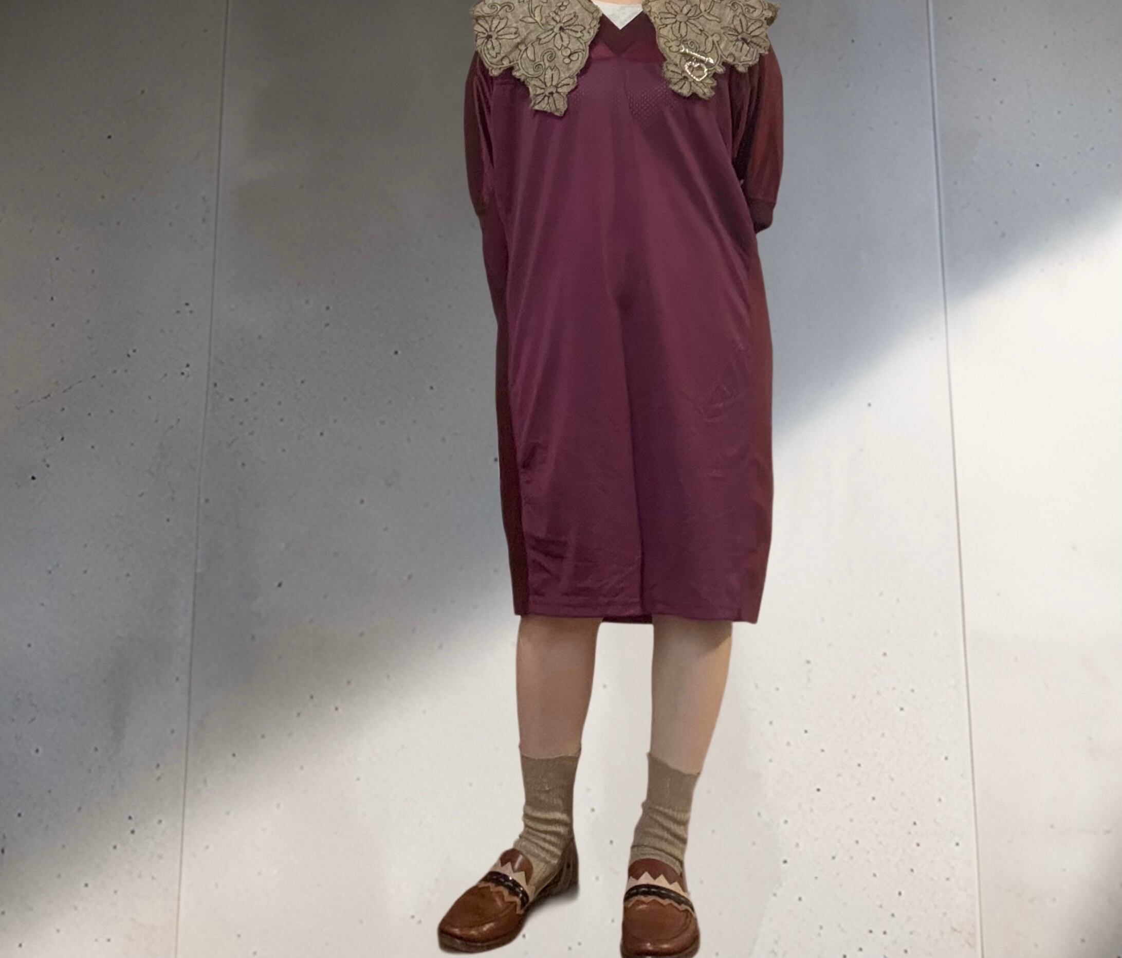 メッシュのゲームシャツ。ゲームシャツ特有の艶のある素材が晩夏から秋口に合うのでは!と思いご紹介です◎渋みのあるボルドーとヘルシーなVネックが秋っぽくいい感じです♡下にパンツを合わせたり、いろいろなコーディネートが楽しめそうです◎