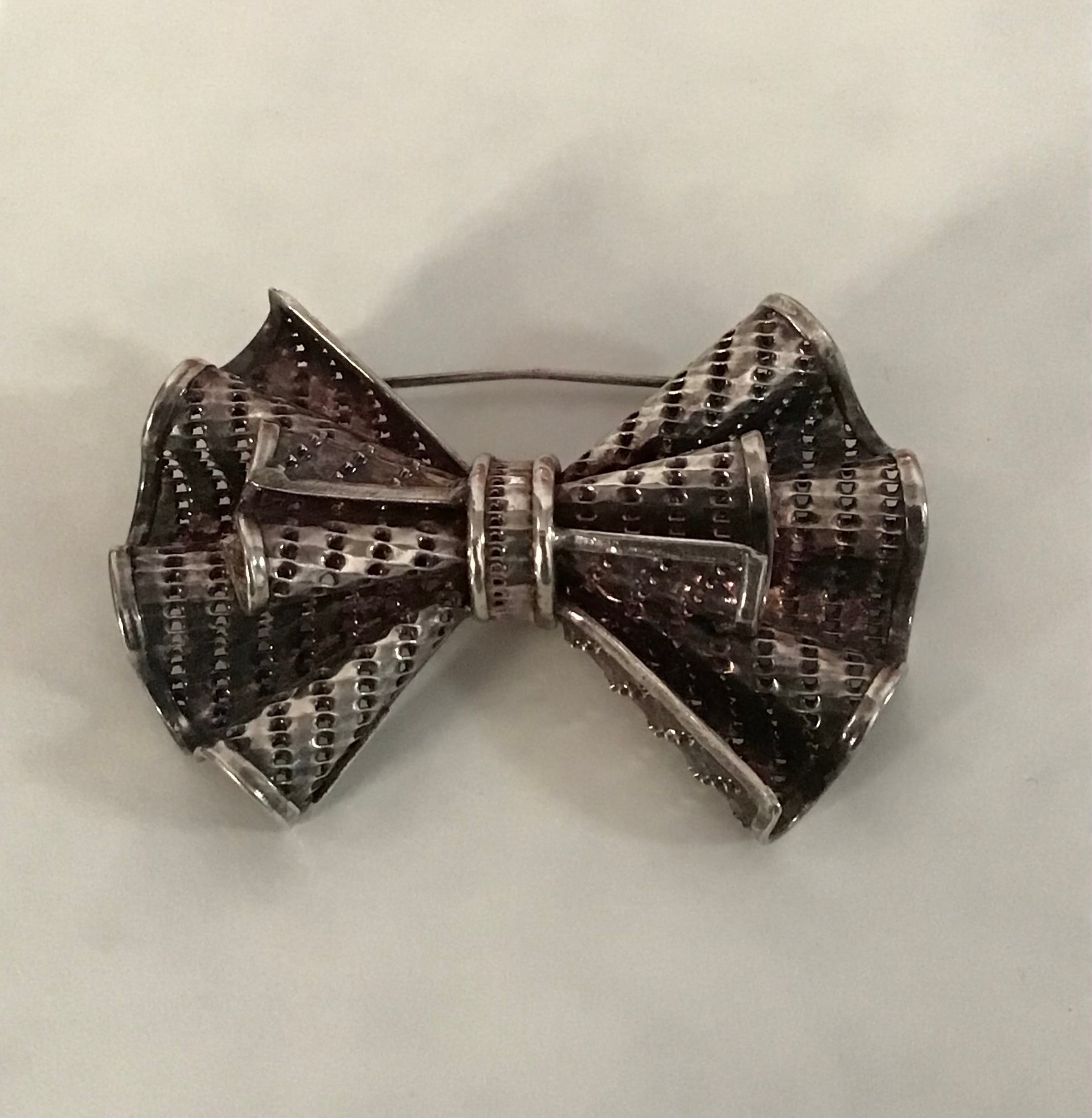 イタリアンシルバー製のリボンブローチ。透け感と立体感があるデザインは主張しすぎず、どこかドレッシーな雰囲気もあり素敵なお品です♡軽めでブラウスからニットやジャケットまで幅広くつけられます◎お手持ちのブローチと合わせても良さそうです!