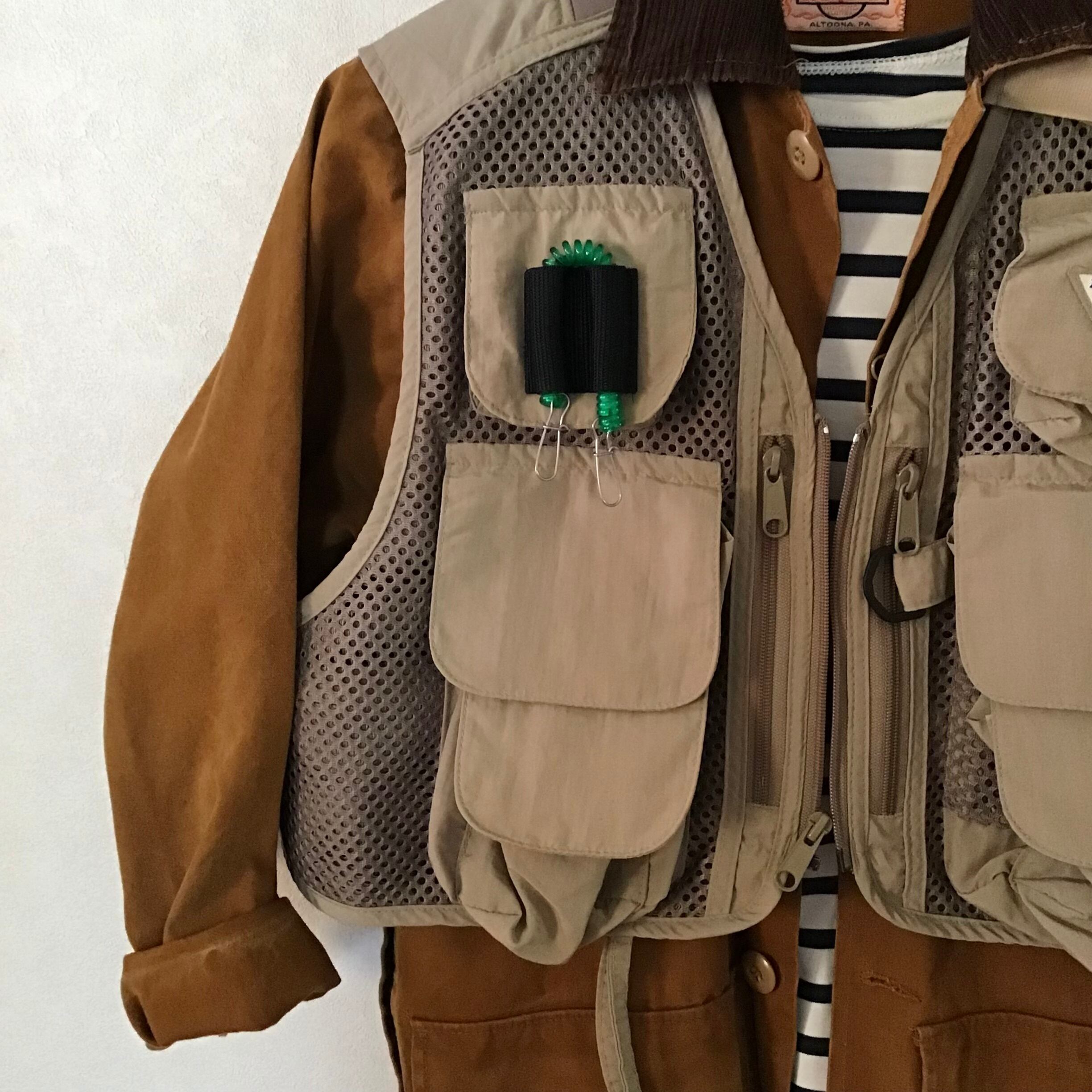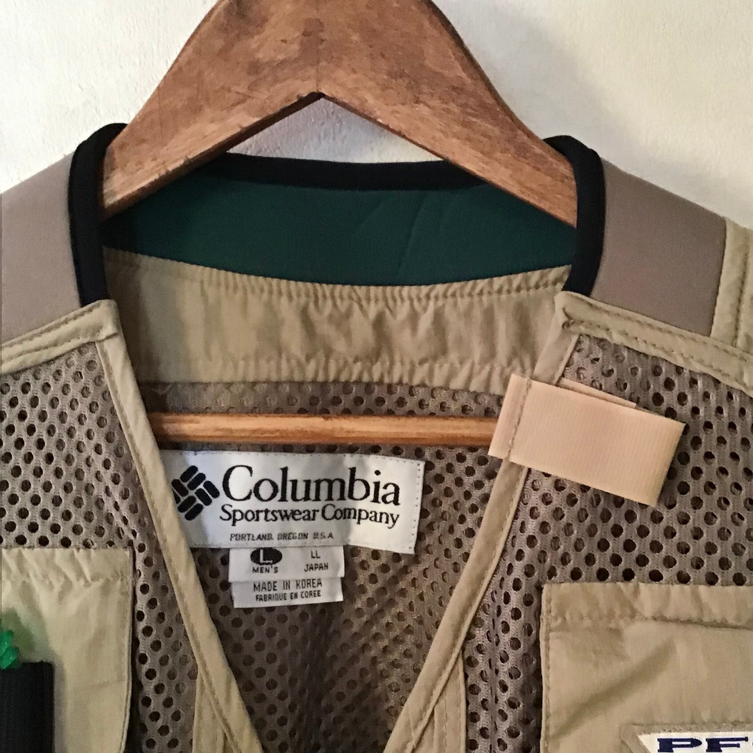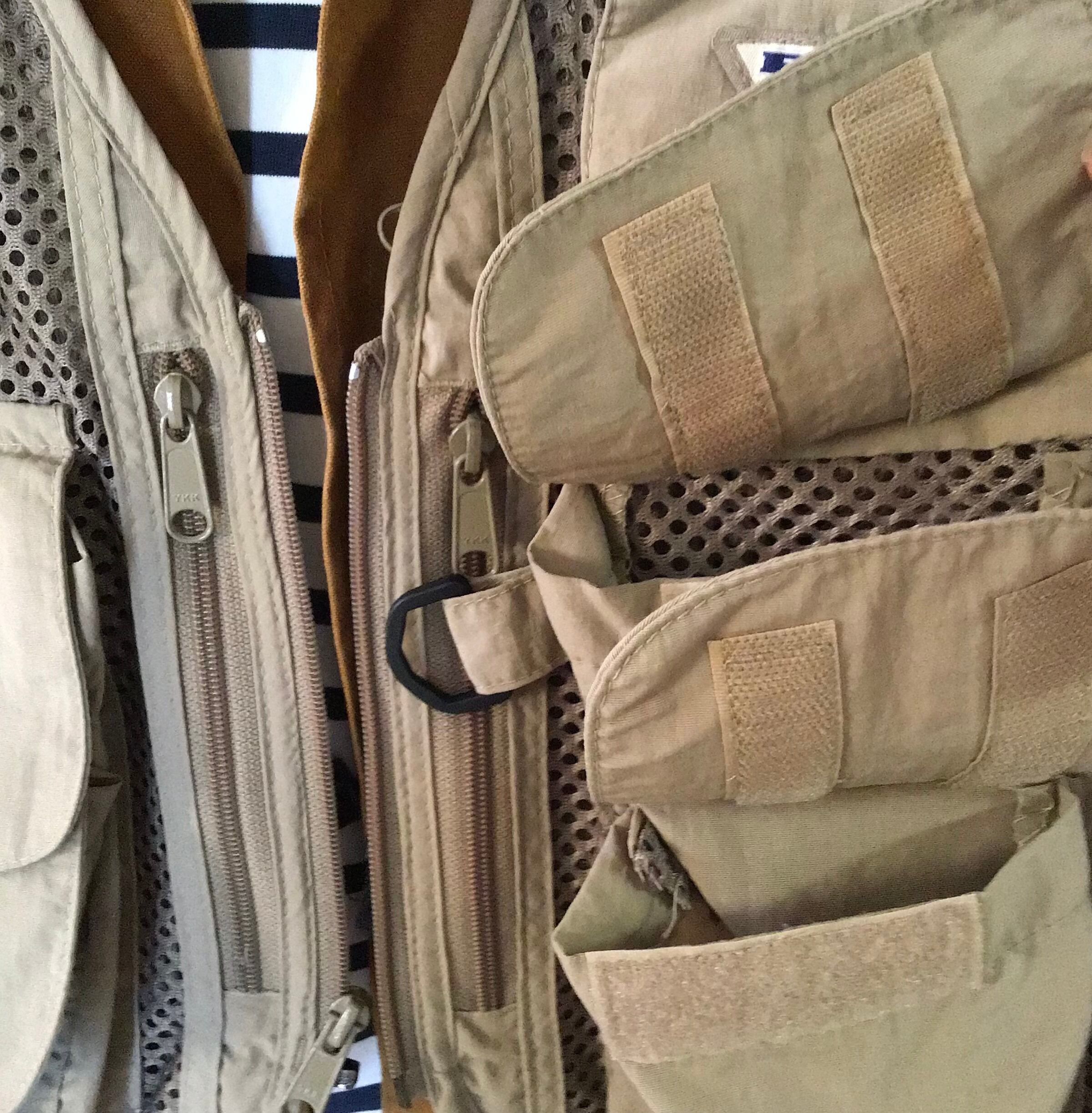 1990年代、コロンビアのフィッシングベスト。前9個、 後ろ1 個、内側4個と、とにかくポケットがたくさん!の良いデザインに体に馴染みやすいメッシュ素材が軽やかで良いです◎
