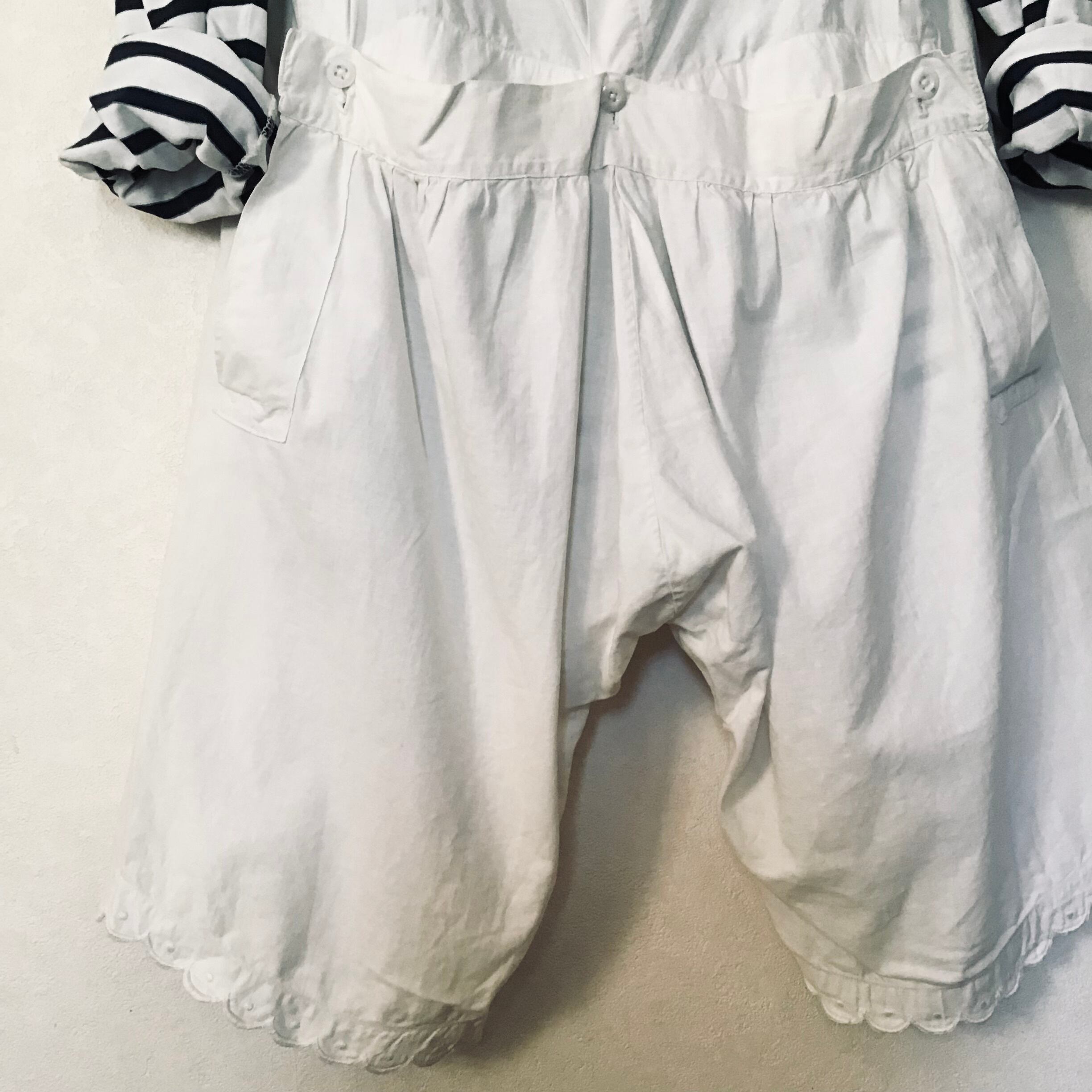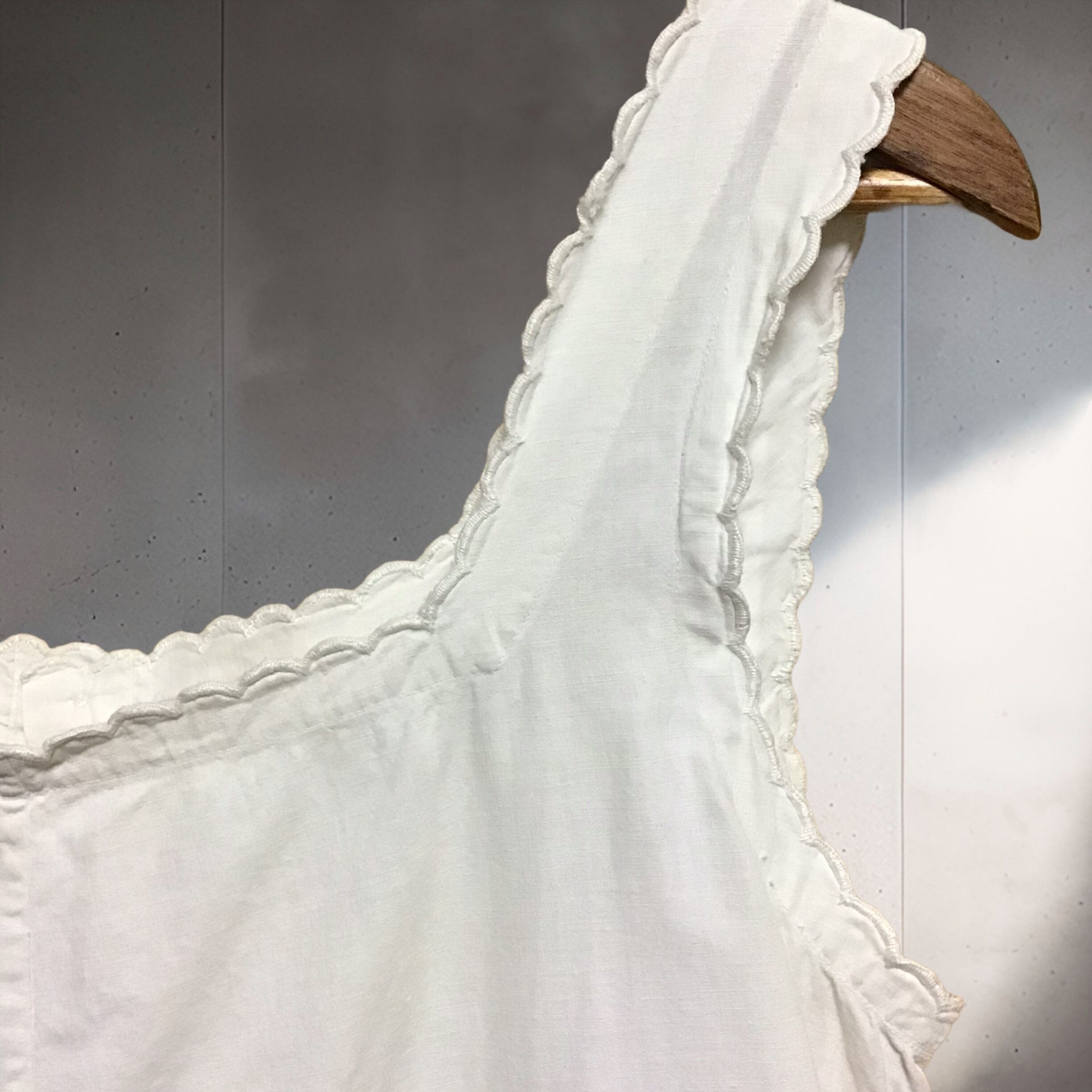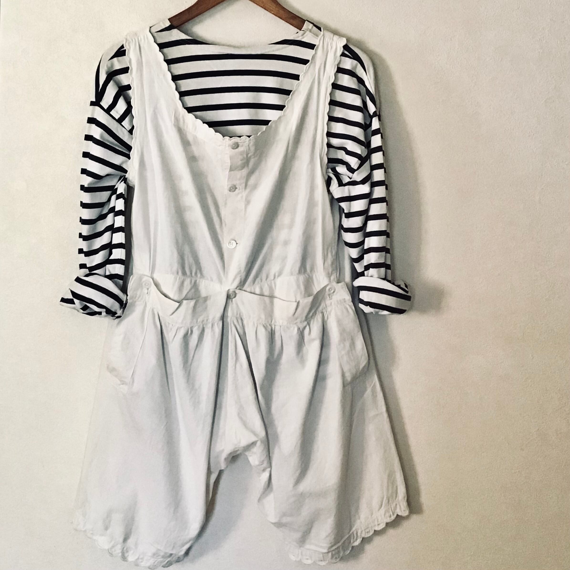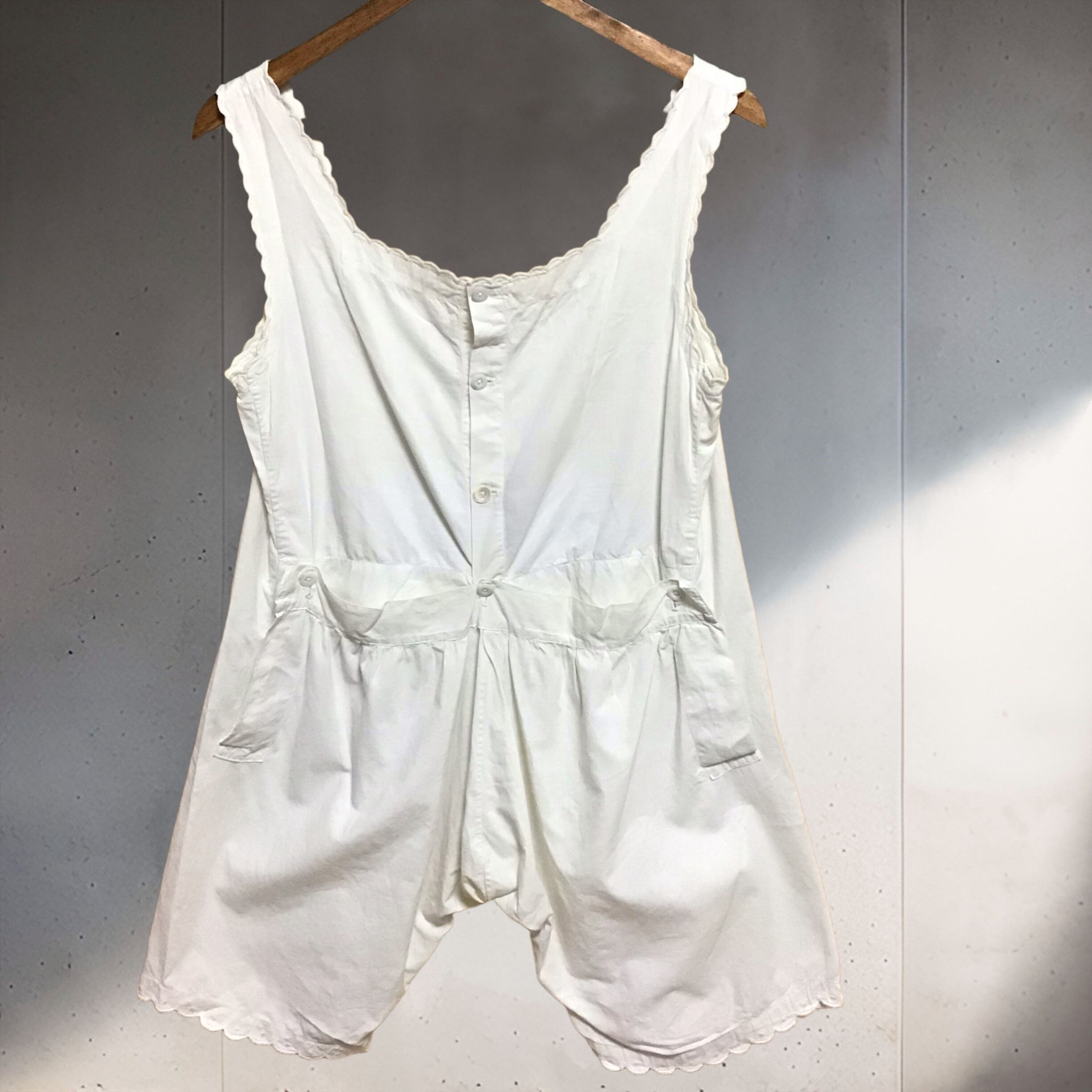 1930年代のコットンオールインワン。首周りや裾のスカラップ、ガラスボタンやお尻が開くようになったデザインなど時代が感じられる素敵なお品です◎
