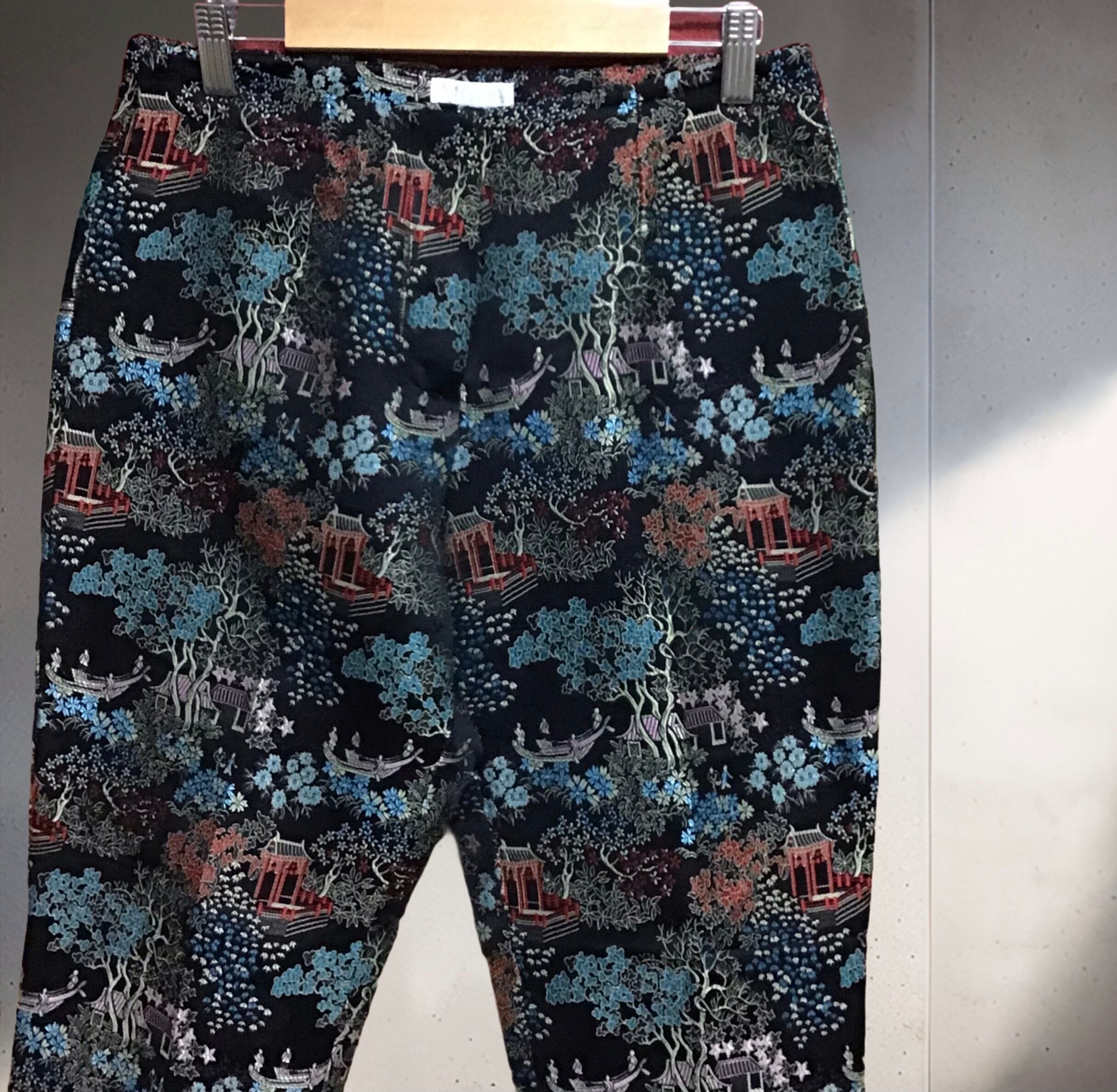 1990年代のチャイナ柄パンツ。艶のある生地がスッキリとし、カジュアルからキレイめまで幅広く使えそうです◎ざっくりニットやメンズライクなビックシャツ、柄×柄など、様々なコーディネートが楽しめそうなお品です♡