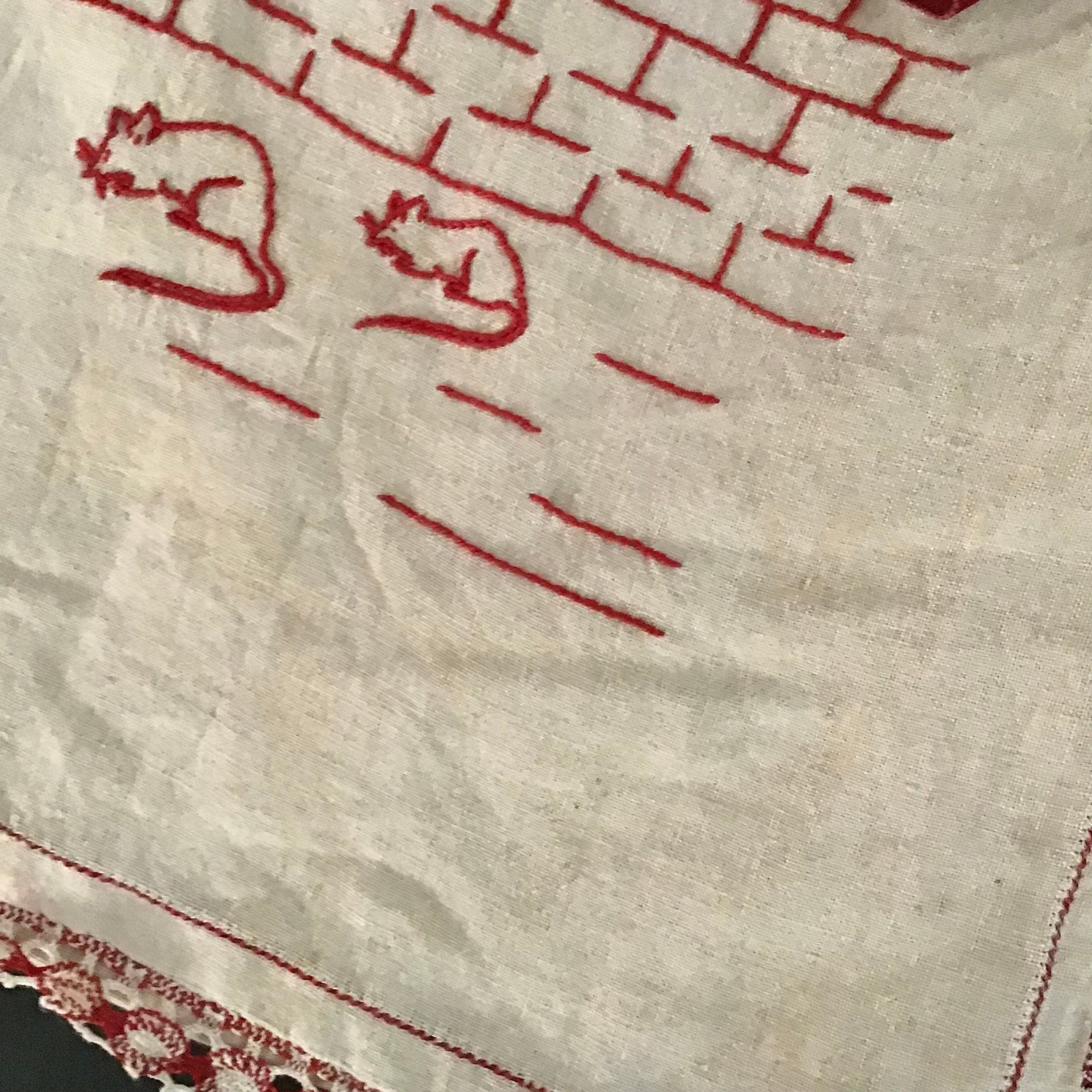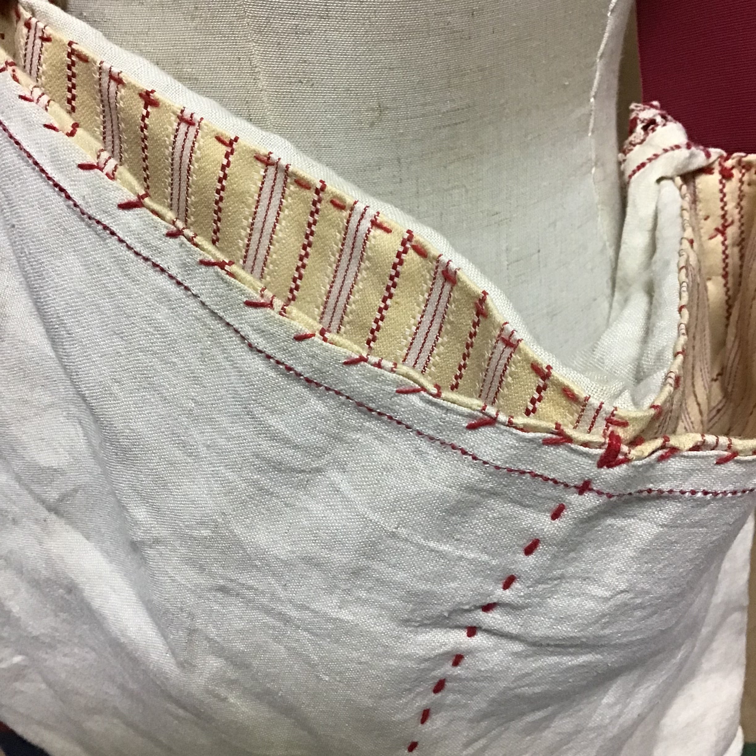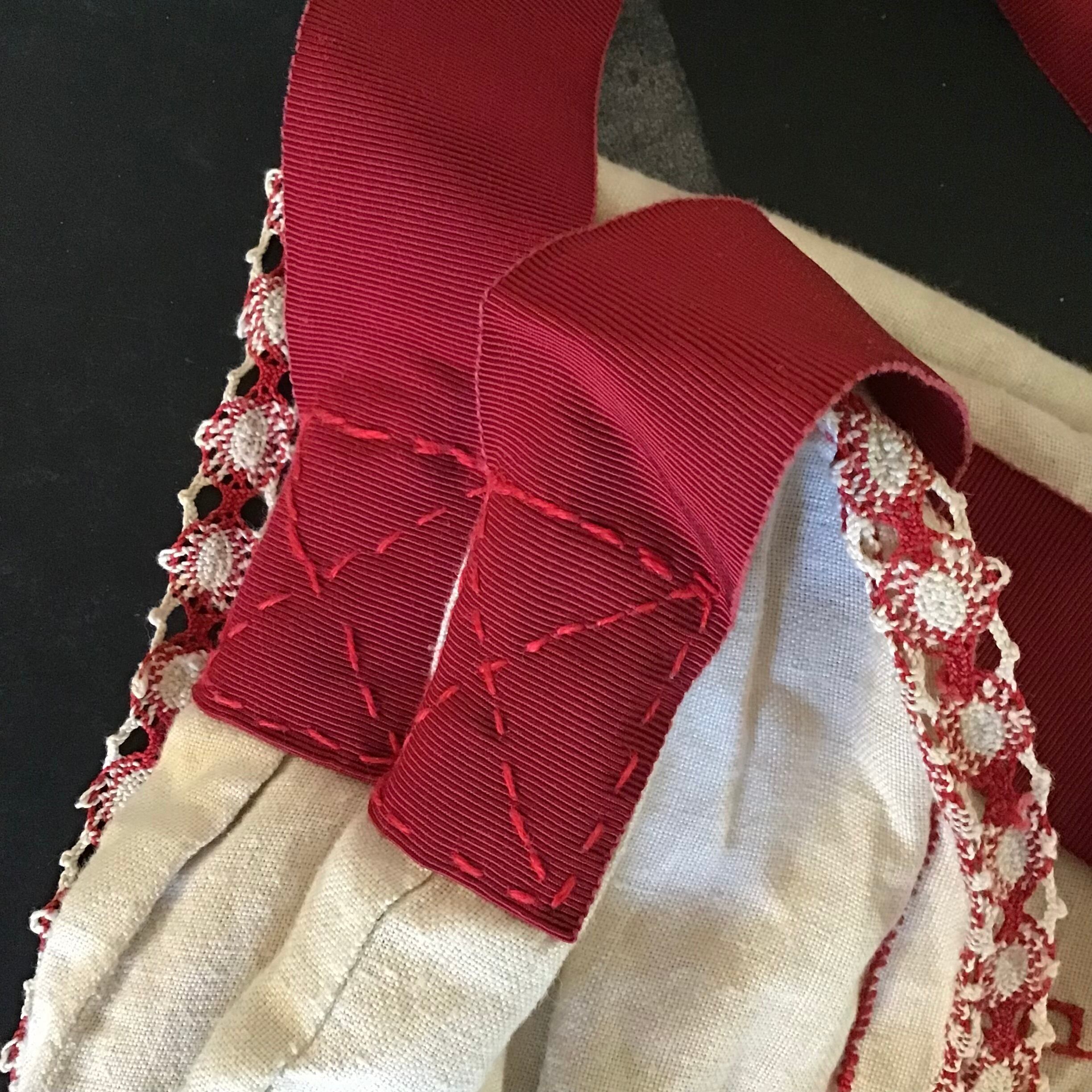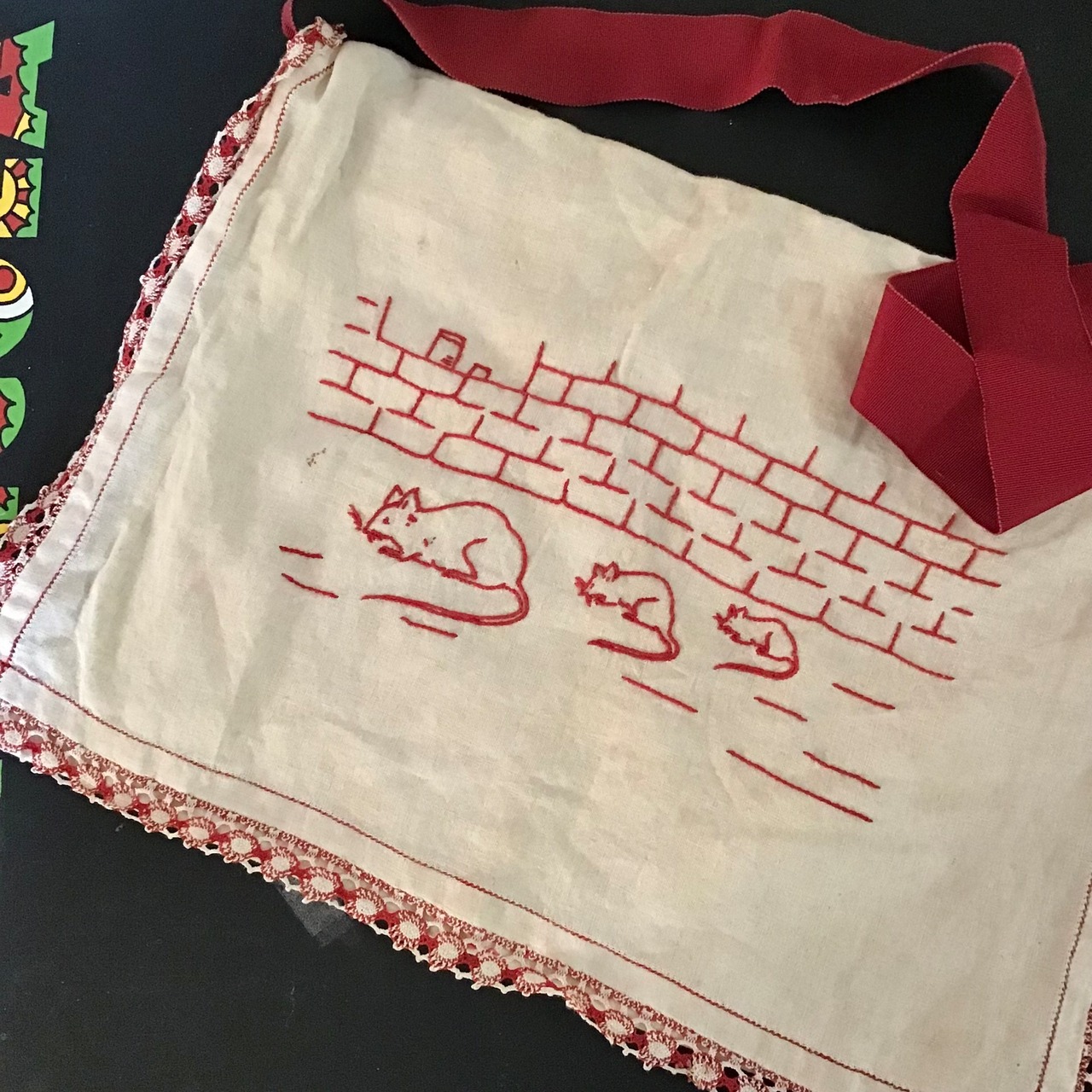 1920年代、枕カバーのリメイクバッグ。柔らかなリネンにネズミの親子の刺繍が可愛いです♡枕カバーの内側に生地が縫い付けられて2つに別れており、リメイクされたのは近年だと思いますが内側の生地も古そうで、素朴なお作りに温かみを感じるお品です♡ストラップは幅広のリボンが使われ、中の生地がしっかりしているので実際に物を入れても形が崩れにくそうです◎