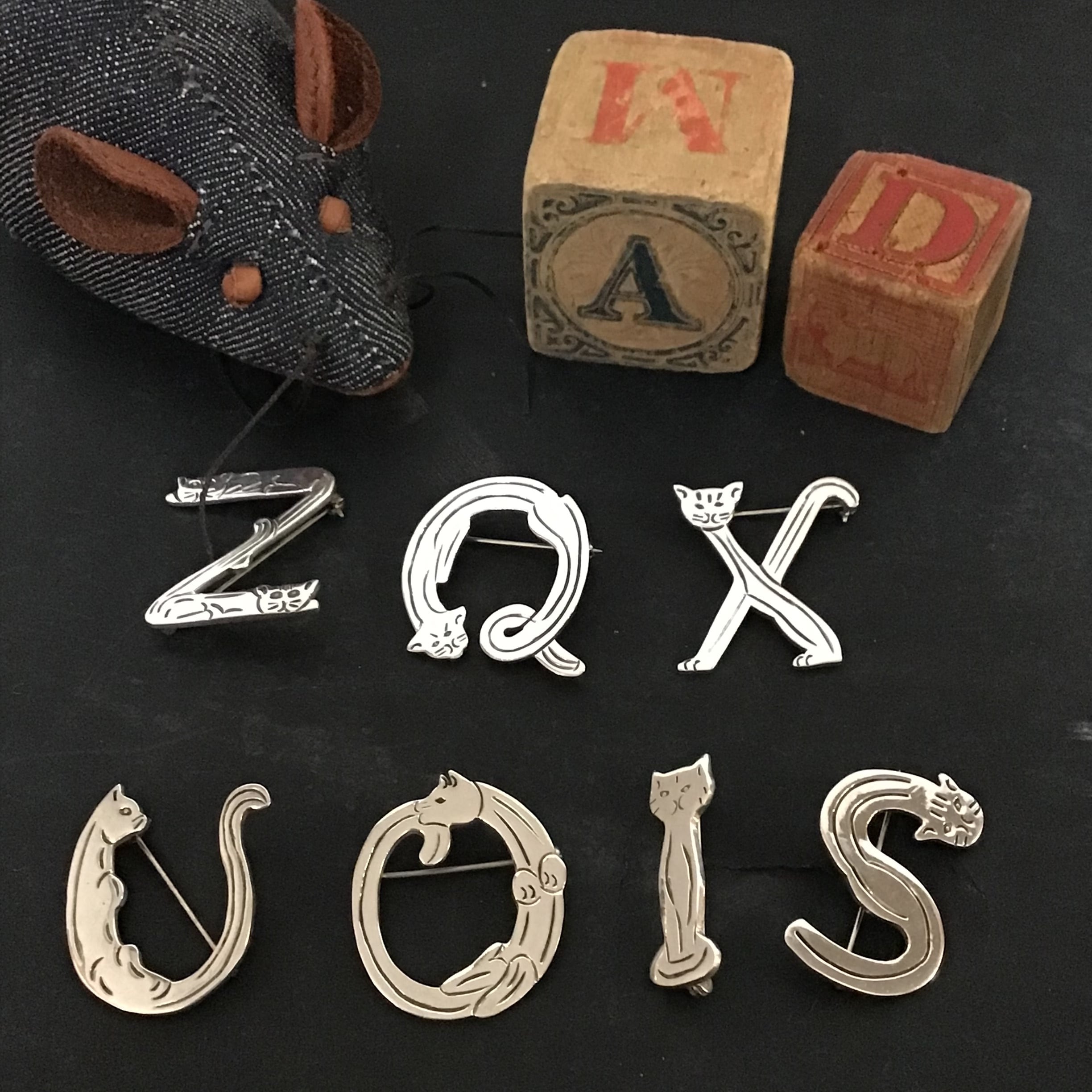 メキシコシルバー925の猫文字ブローチ。今回は7種類ご紹介です!クネっとしたり、ピンとしたり、いろいろな猫ちゃんがとっても可愛いです♡程よいサイズ感なので、重ね付けしてもくどくならず良い感じです◎