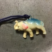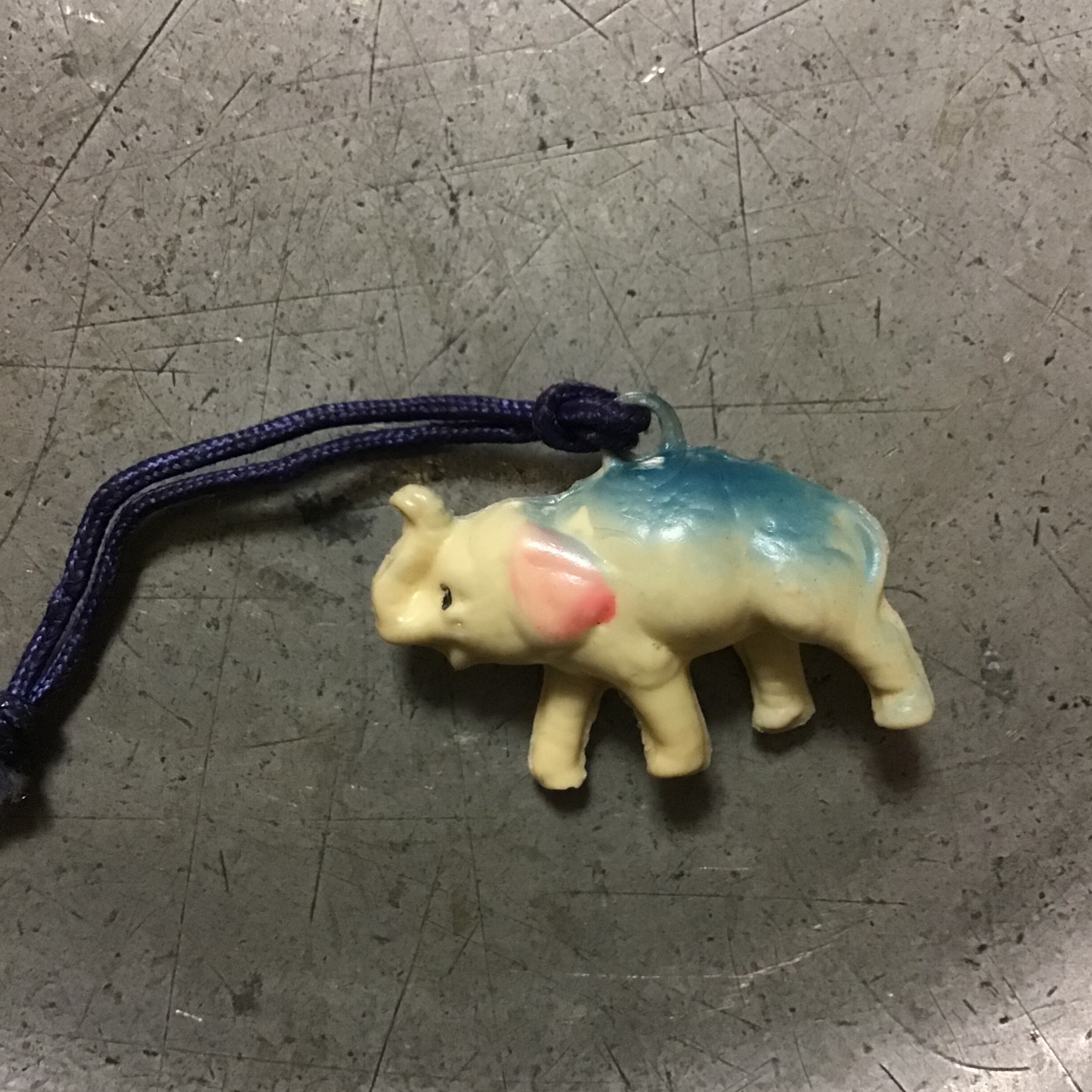 1950年代頃のガムボールのおまけチャーム、ぷっくりとして可愛いゾウさん。当時の紐がそのまま付いており、ブローチやネックレスにしたり、襟の先やお気に入りのポーチに縫い付けても可愛いです♡ボールチェーンをお付けしますので必要に応じてお使いください◎