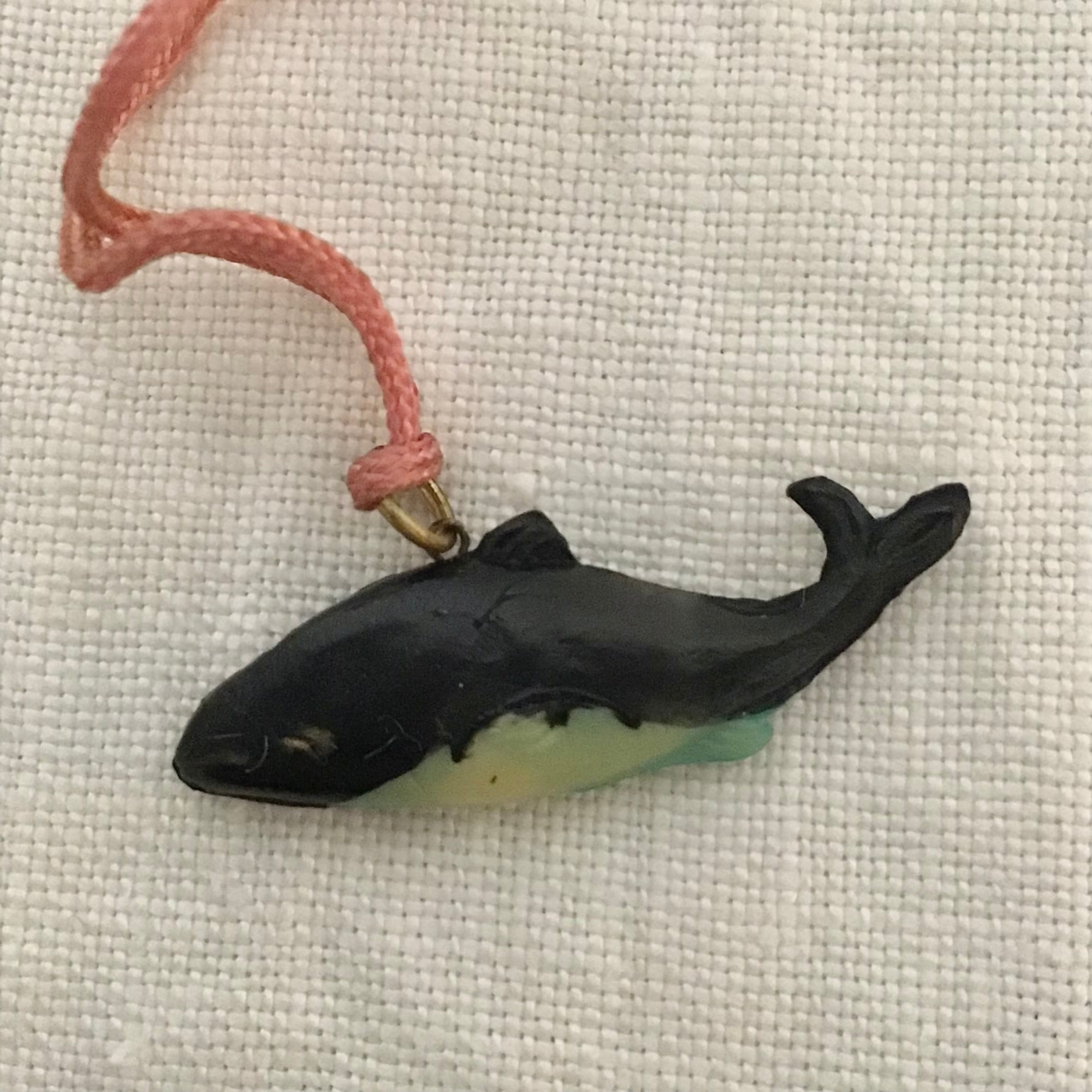 1950年代頃のガムボールのおまけチャーム、可愛いらしいサメ。当時の紐がそのまま付いており、ブローチやネックレスにしたり、襟の先やお気に入りのポーチに縫い付けても可愛いです♡ボールチェーンをお付けしますので必要に応じてお使いください◎