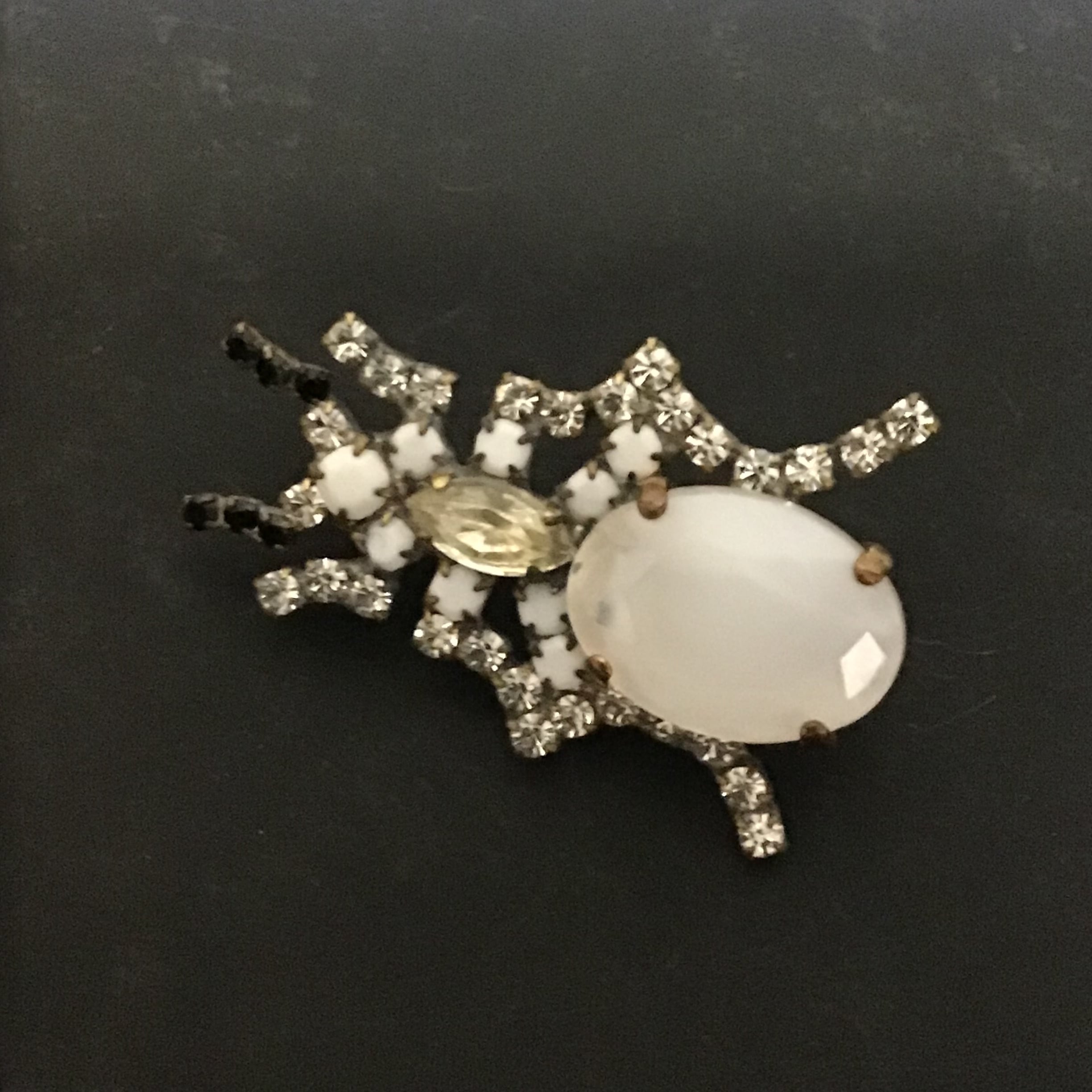 チェコガラスのブローチ、カミキリムシのデザイン。虫は苦手な店主ですが、虫モチーフにはなぜか心惹かれてしまいます♡モノトーンでシックな雰囲気がブラウスやニットに合いそうです◎