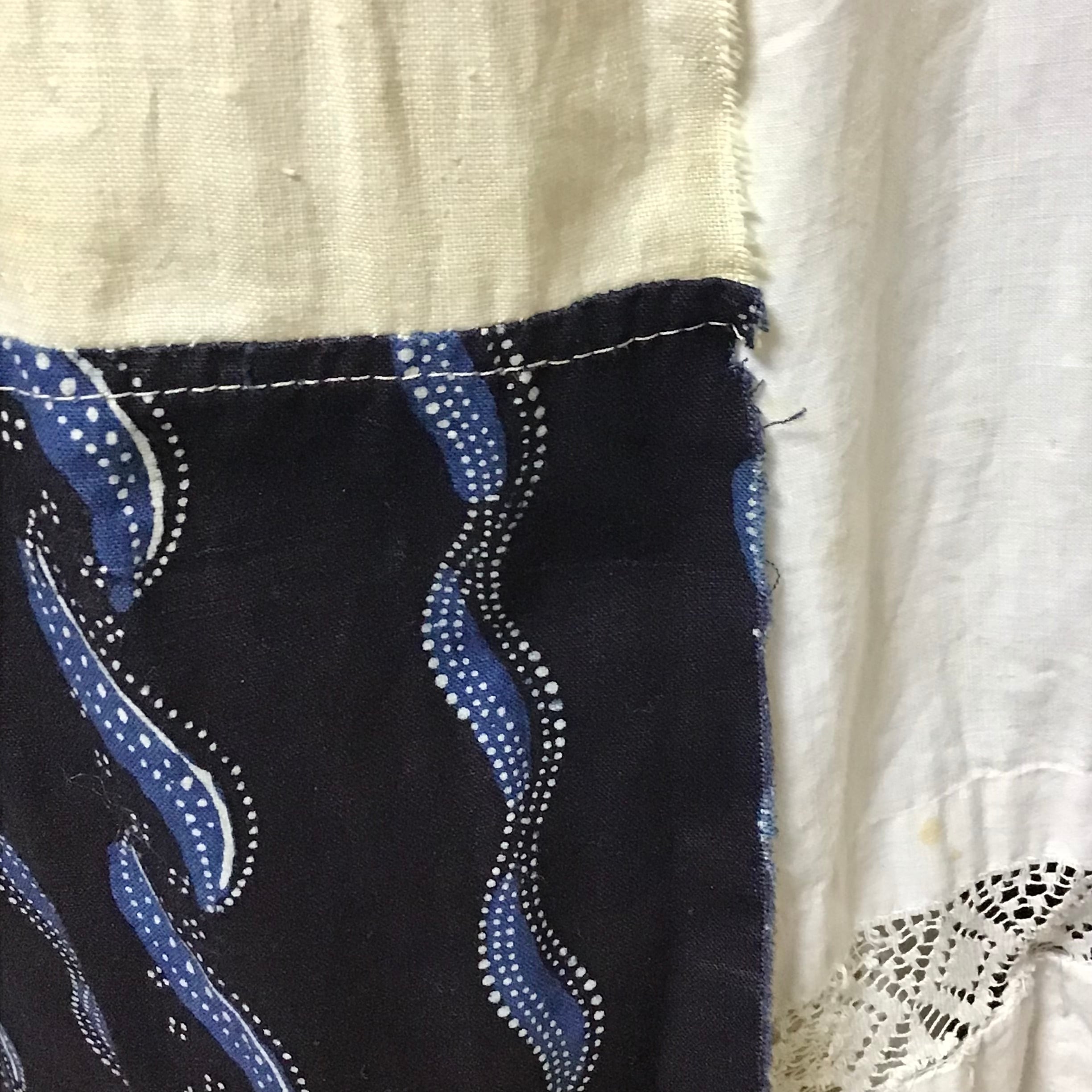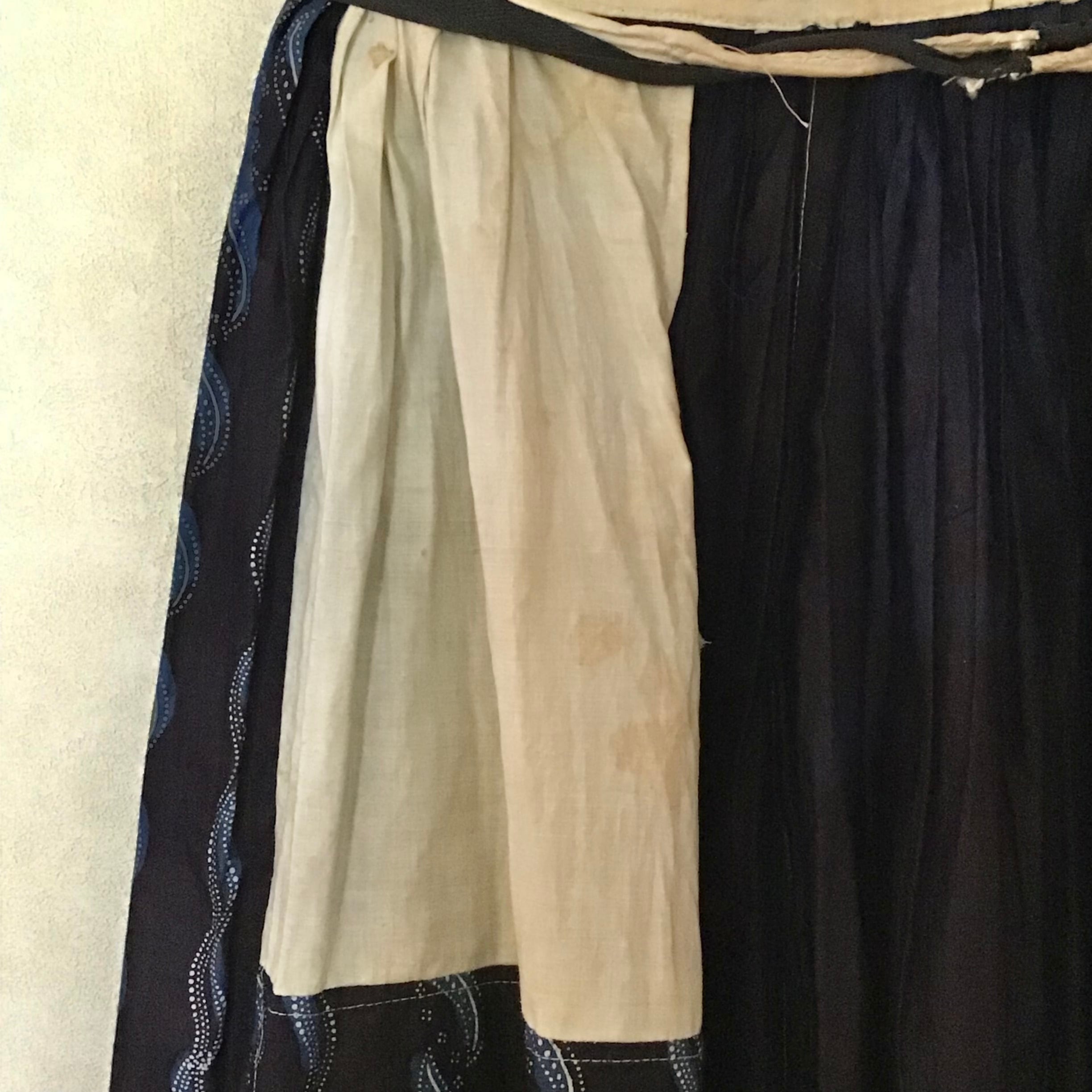 サイズ ウエスト57cm 着丈60cm 紐 各80cm 端は切りっぱなしです。また、インディゴの色がしっかり残っているので色移りにご注意ください。