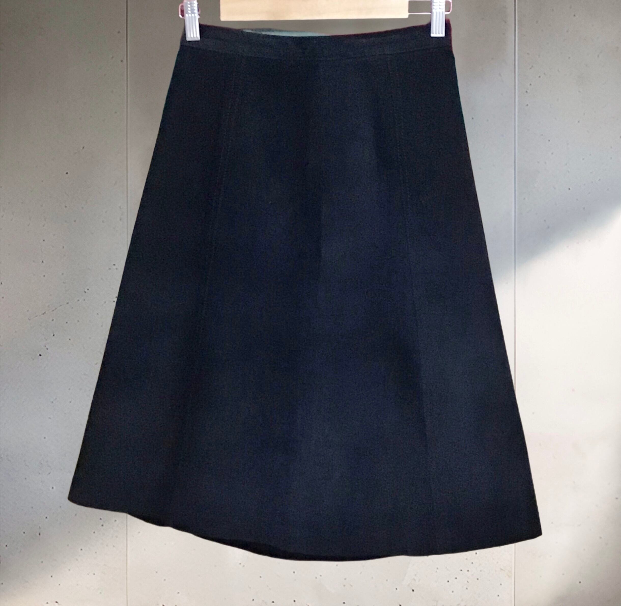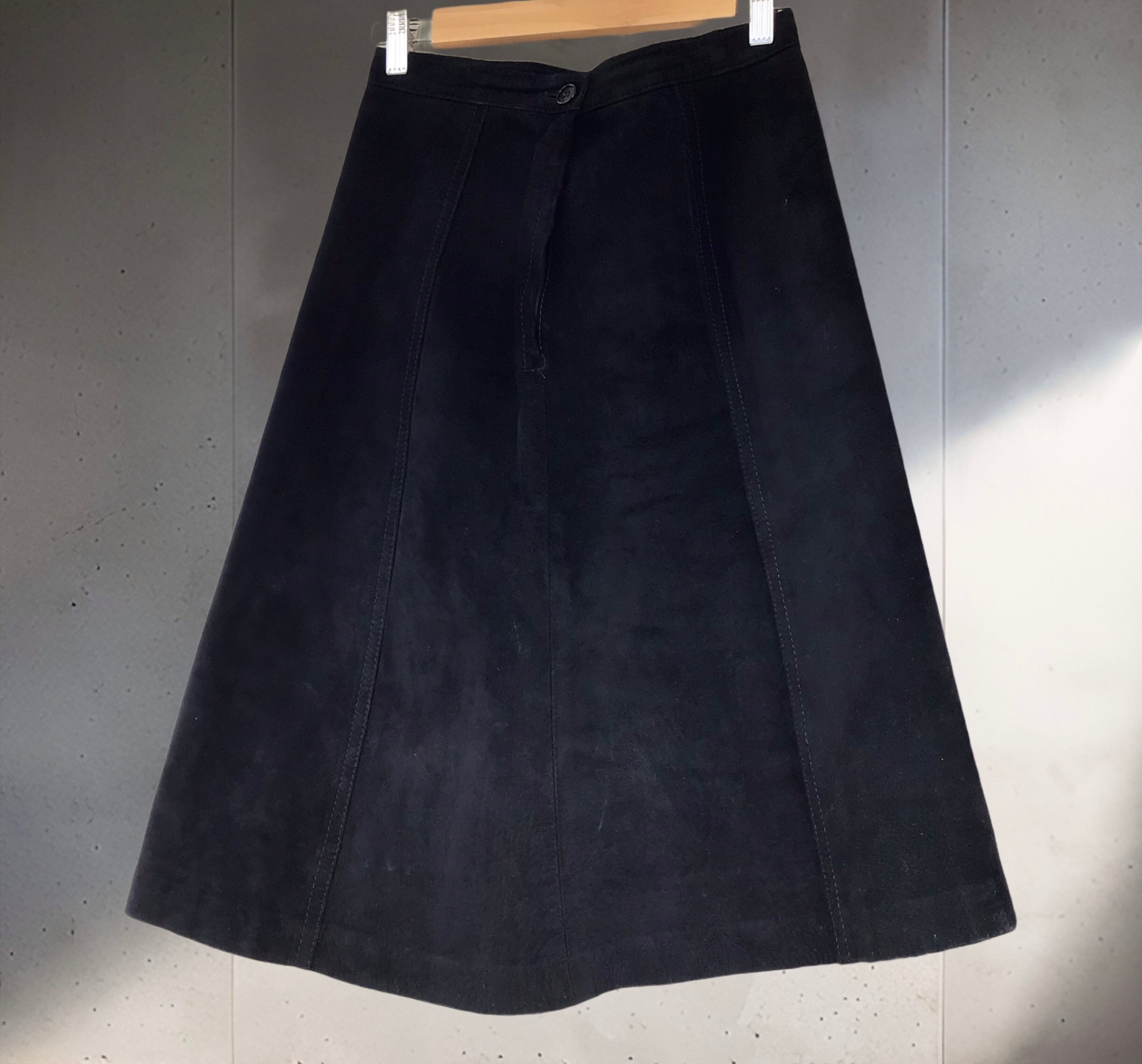 ブラックスエードのスカート。フレア過ぎずスッキリしたシルエットで万能感のあるデザインです◎カジュアルにスウェットパーカーにブーツや、キレイめのニットやジャケットに合わせたり、スエードが今年らしい出番が多くなりそうなおすすめのお品です♡