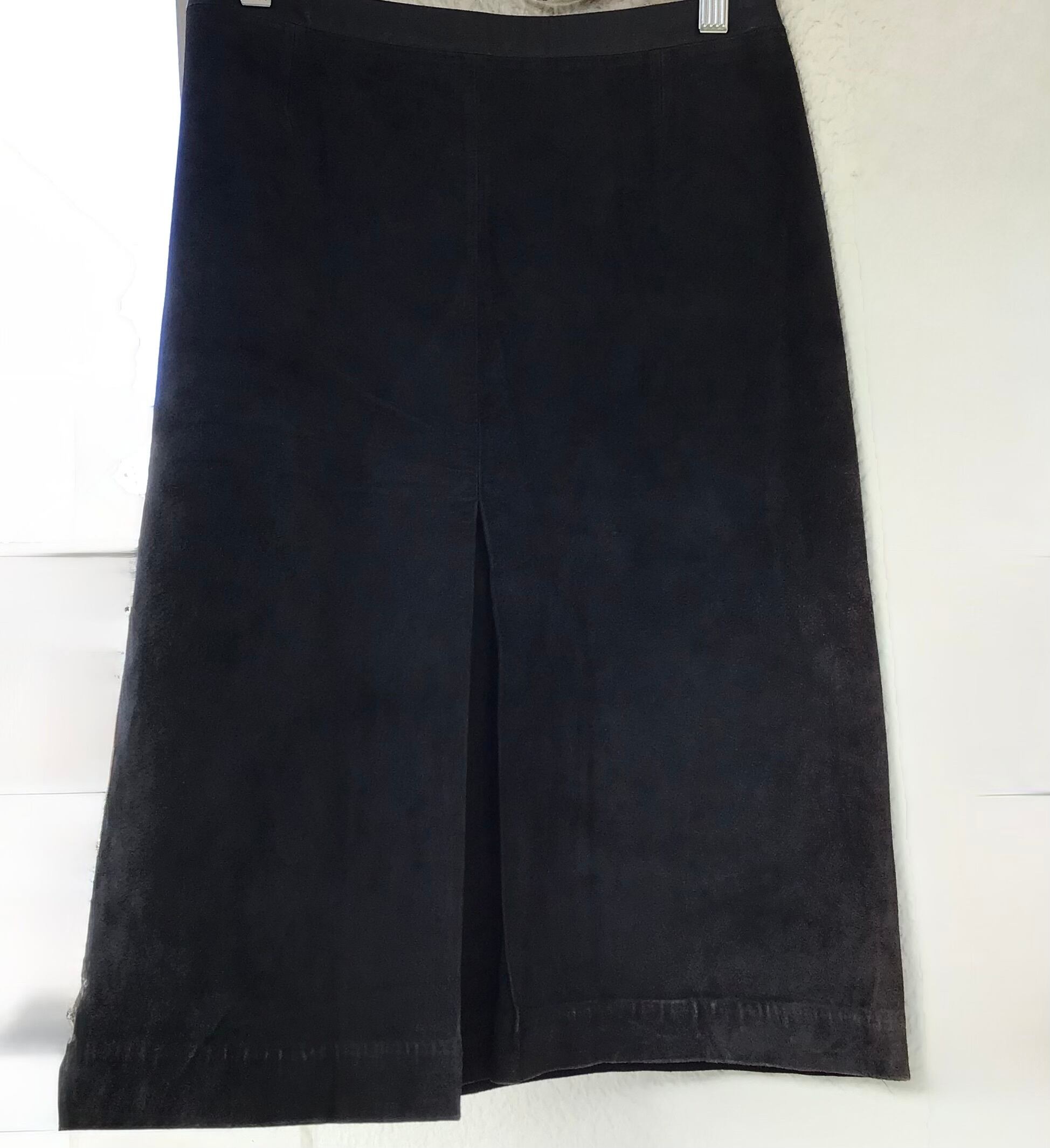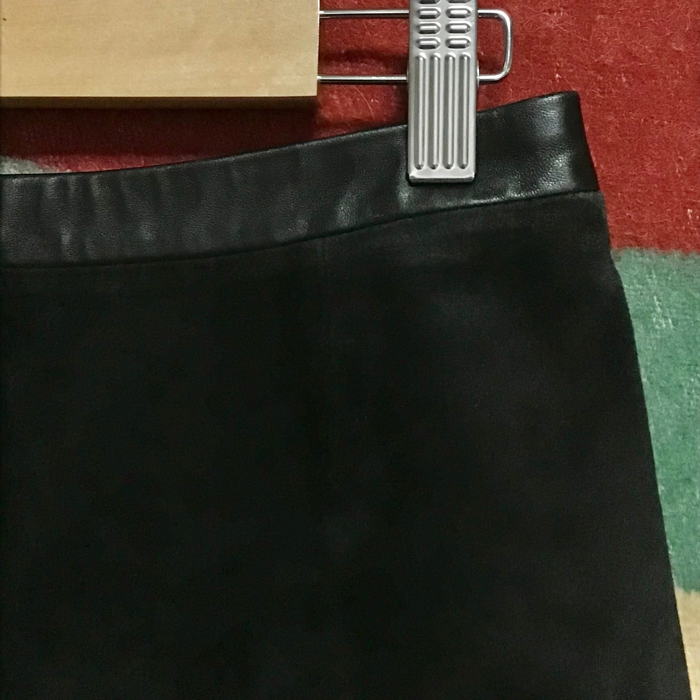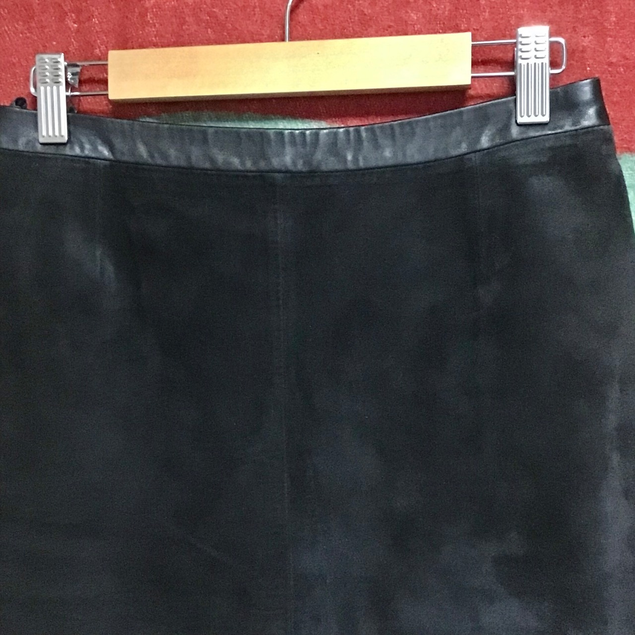 ウエスト部分がレザーのブラックスエードのスカート。腰回りスッキリでとても良いシルエットです◎ボックスプリーツなので足捌きも良く、ウエストのレザーがポイントになっておりシンプルですが気の利いたデザイン♡今年はスエードが気分の店主おすすめのお品です!
