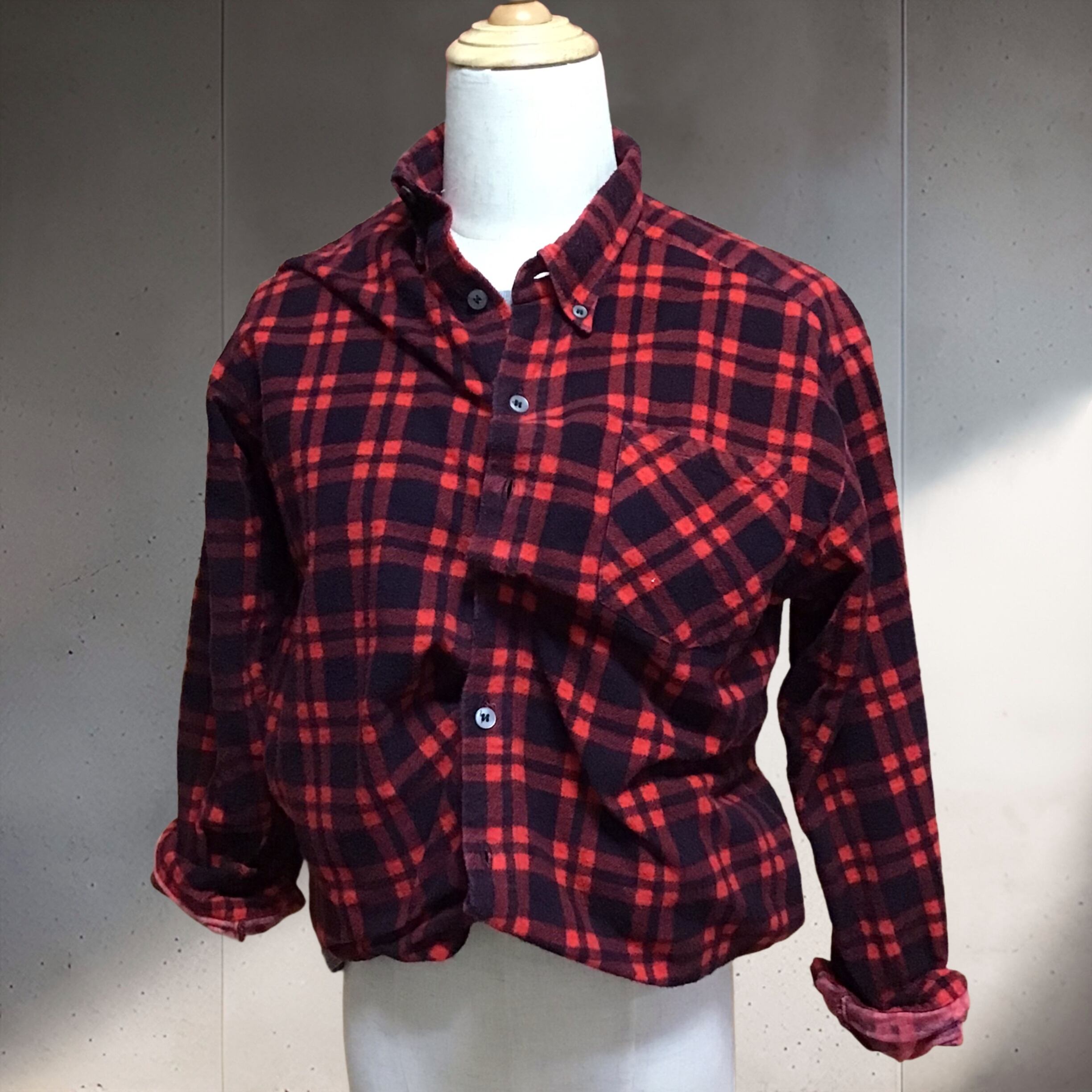 チェックのネルシャツ。定番のネルシャツですがこの季節は特に赤色に惹かれます♡羽織りとしてはもちろん、ワンポイントに巻いてみたり、スカートの様にしたり、ボタンを自由に留めて変形させたりと、シャツの可能性を広げたい店主です◎気軽に着られるとてもお気に入りのお品です!