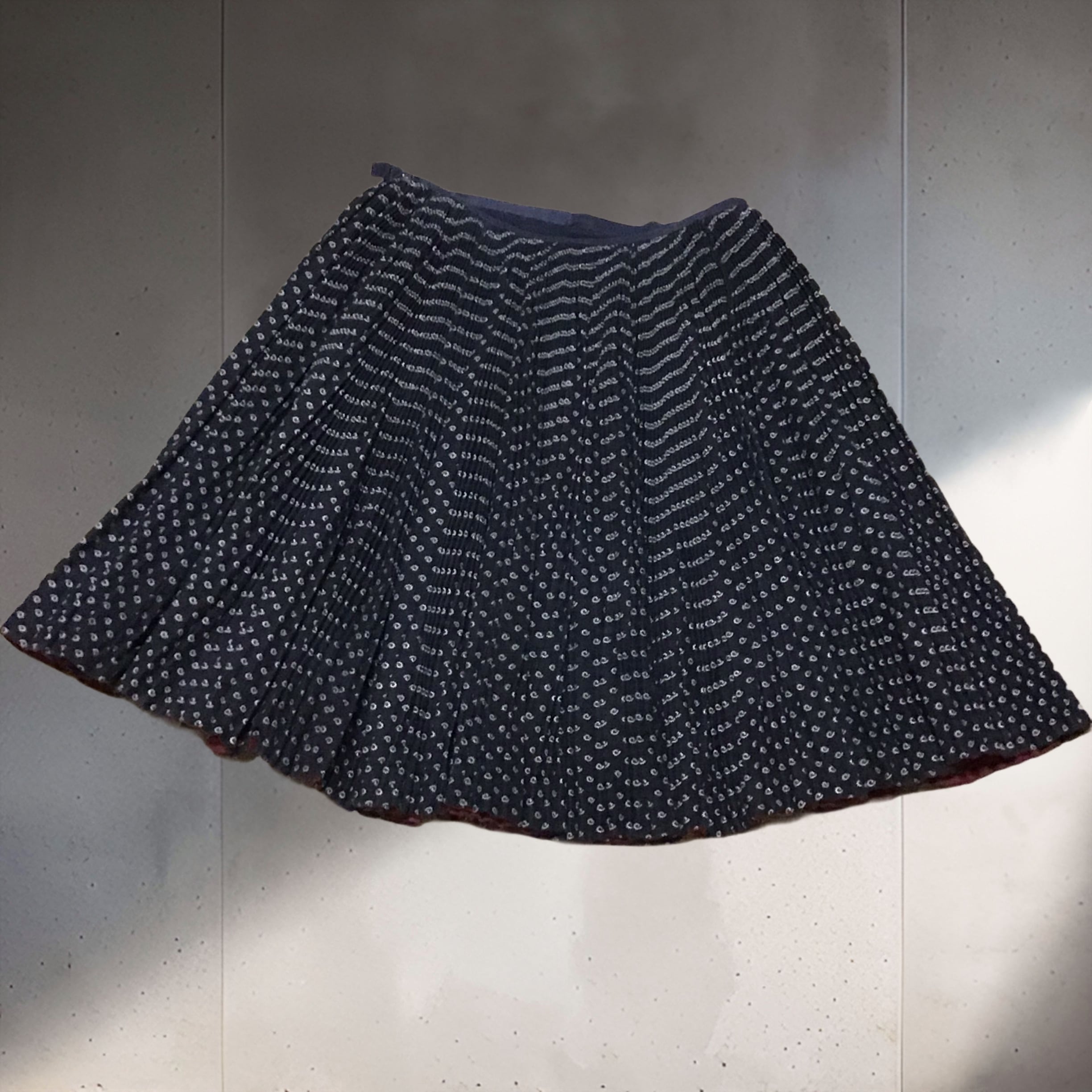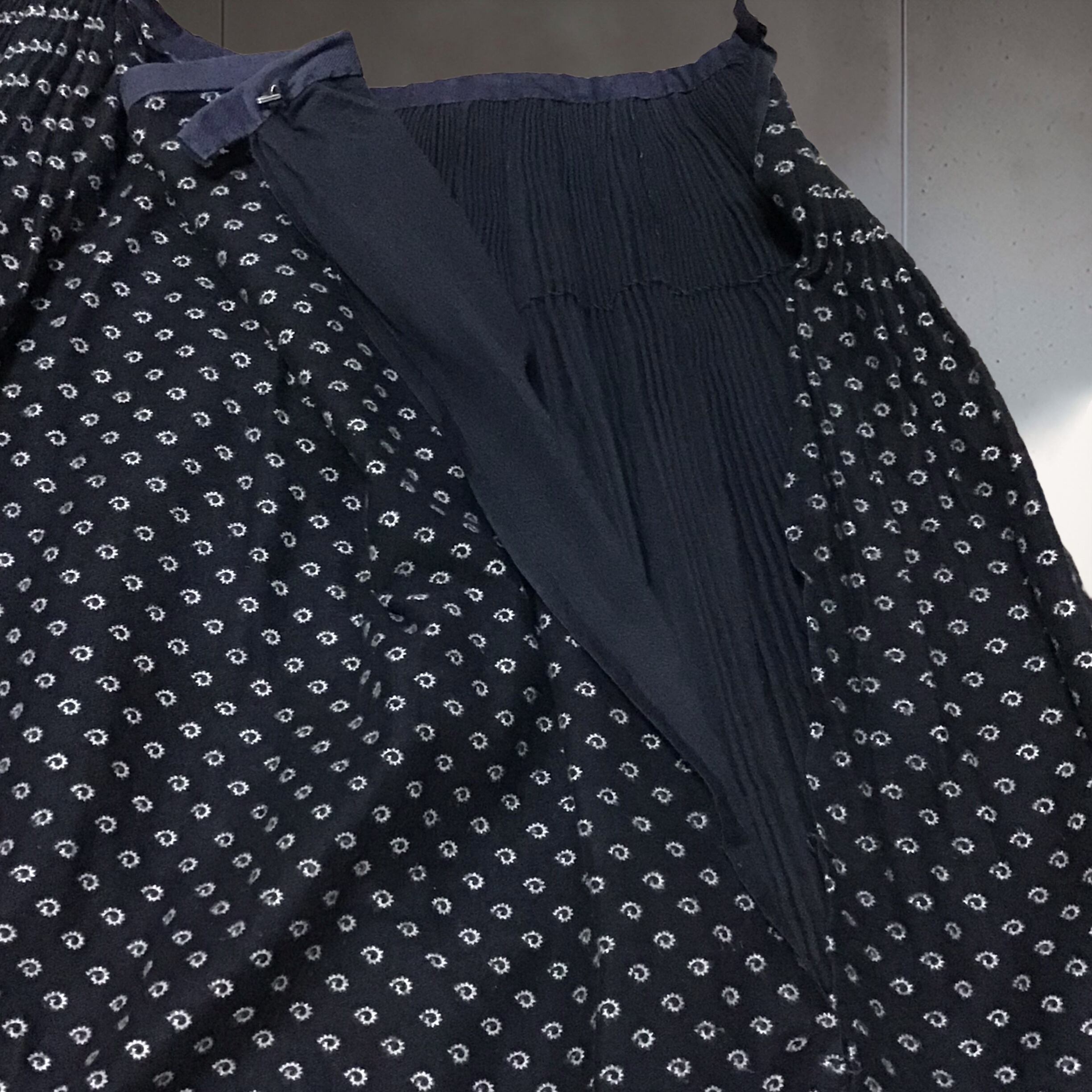 1920〜30年代、少し毛足のあるコットンネルの様な素材のプリーツスカート。可愛いらしい柄と前面に細かく入ったプリーツはとっても素敵です♡裏返すと裾にボルドーの生地が現れ、こちらもまた素敵なので、是非両面楽しんで頂きたいです◎