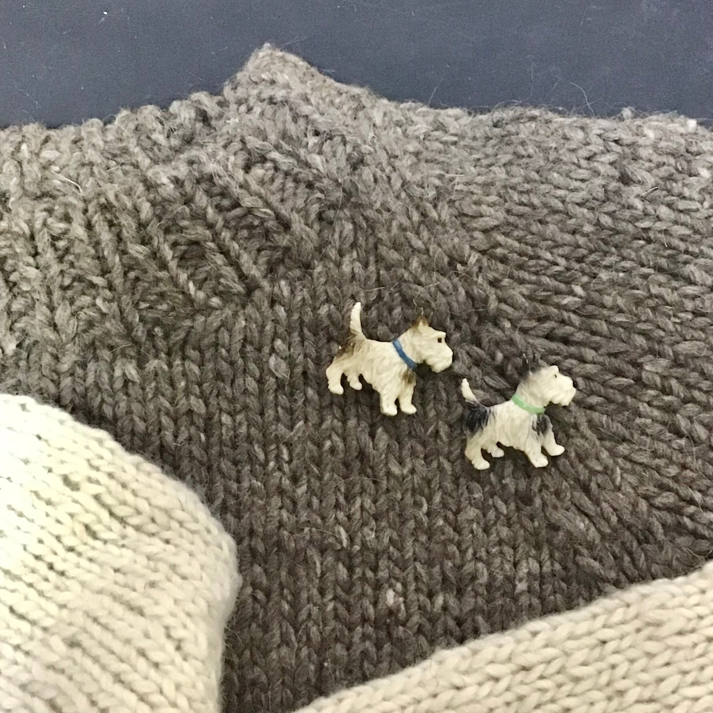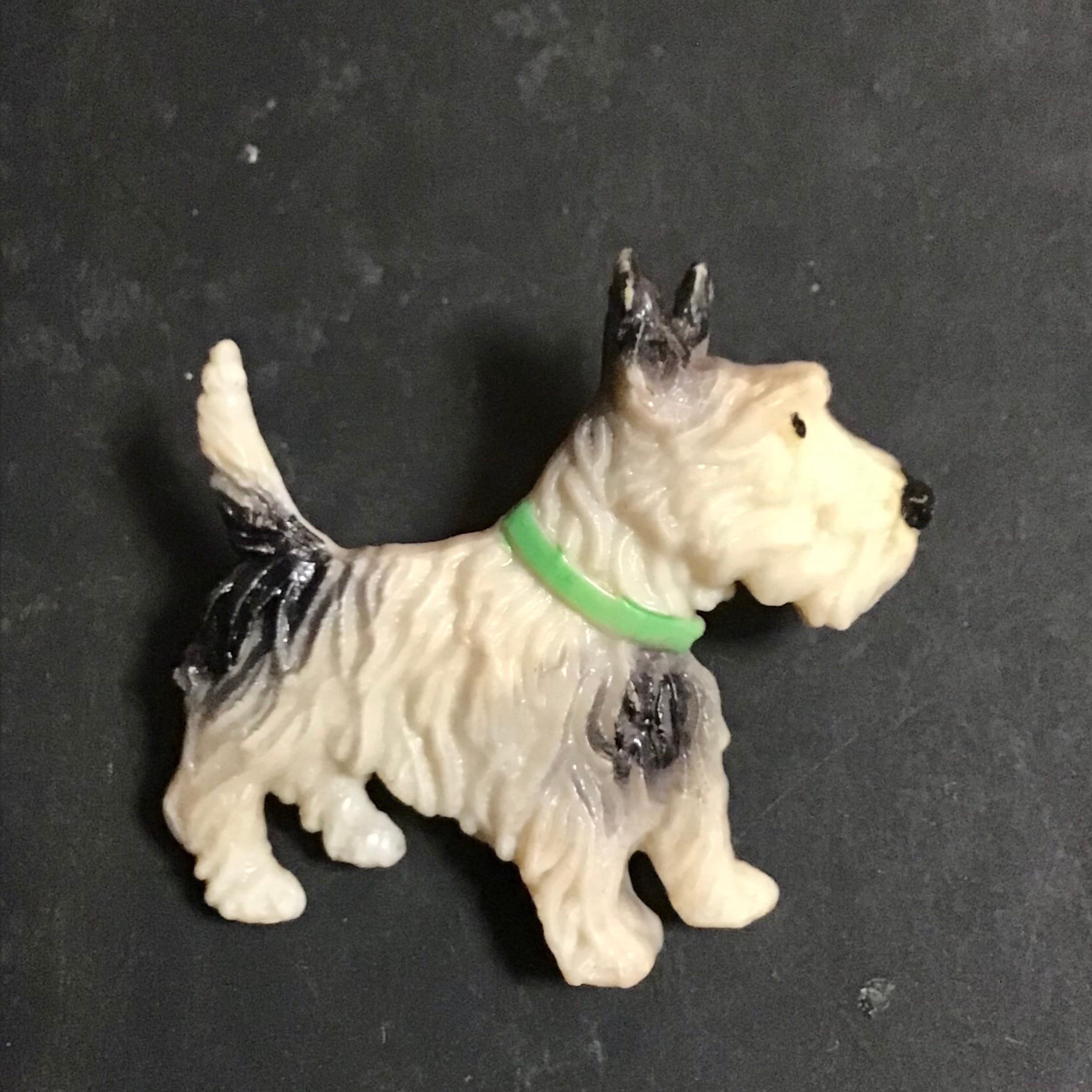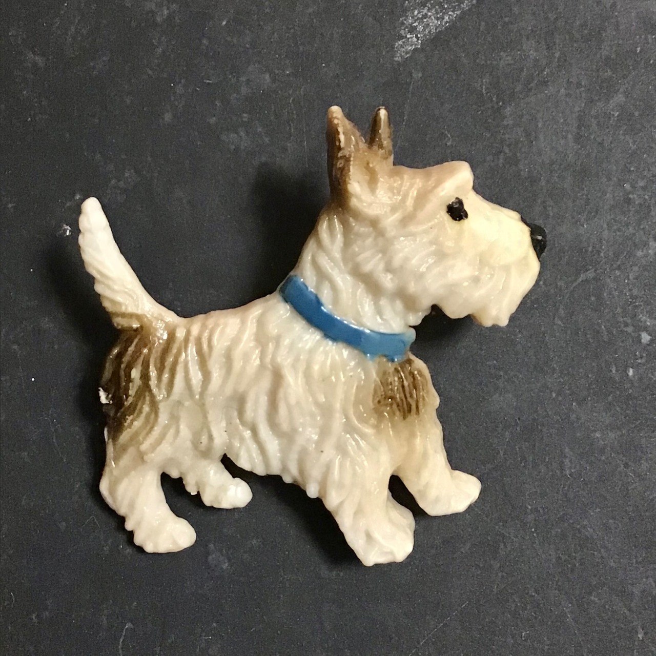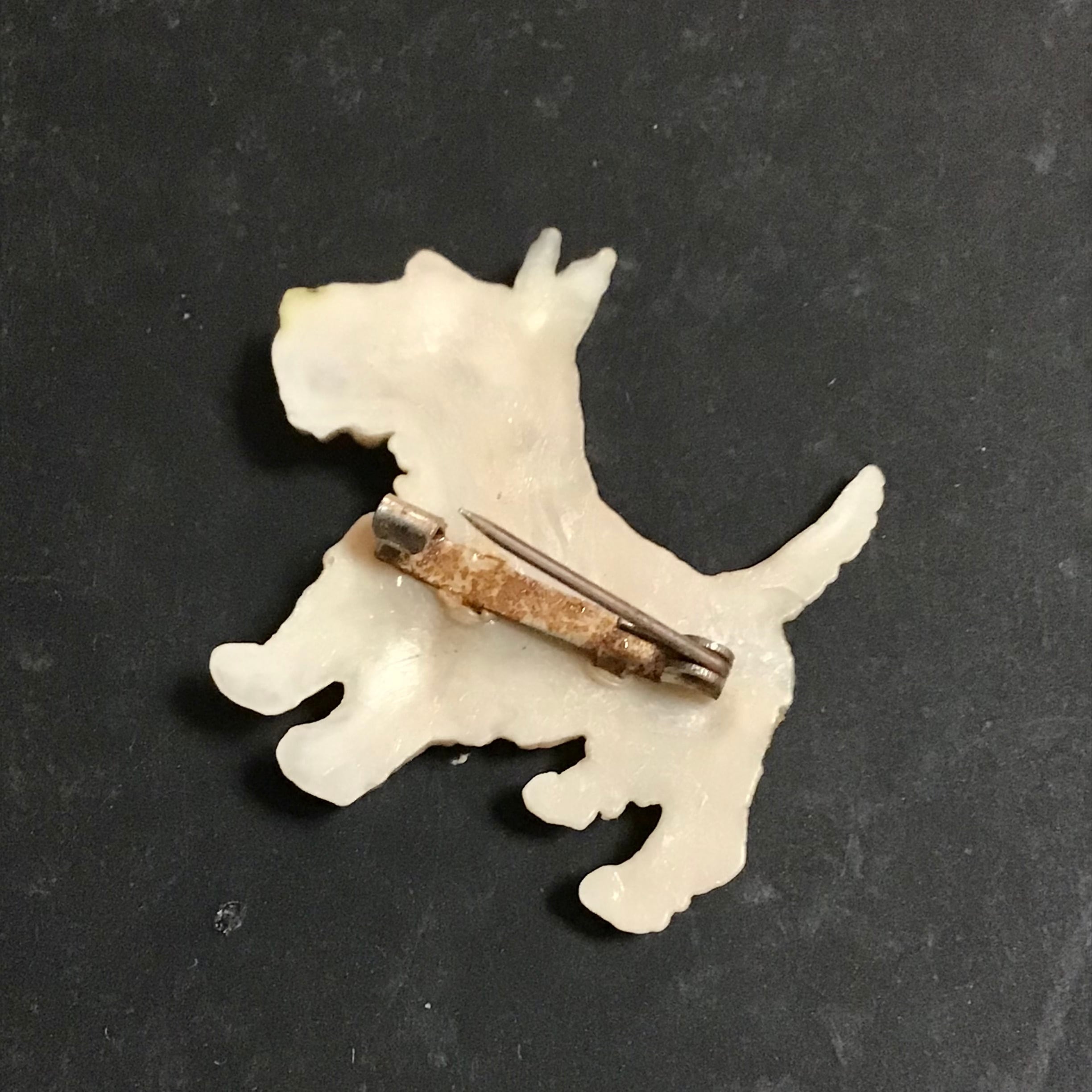 1950年代、セルロイド製のスコティッシュテリアのブローチ。毛並みやテリアの可愛いらしさが細部まで表現されていて、小ぶりながら存在感のあるお品です♡セルロイドでとても軽く、アンティークレースからニットまで幅広くつけて頂けます◎お色違いではもちろん、他のモチーフとの重ねつけもおすすめです!