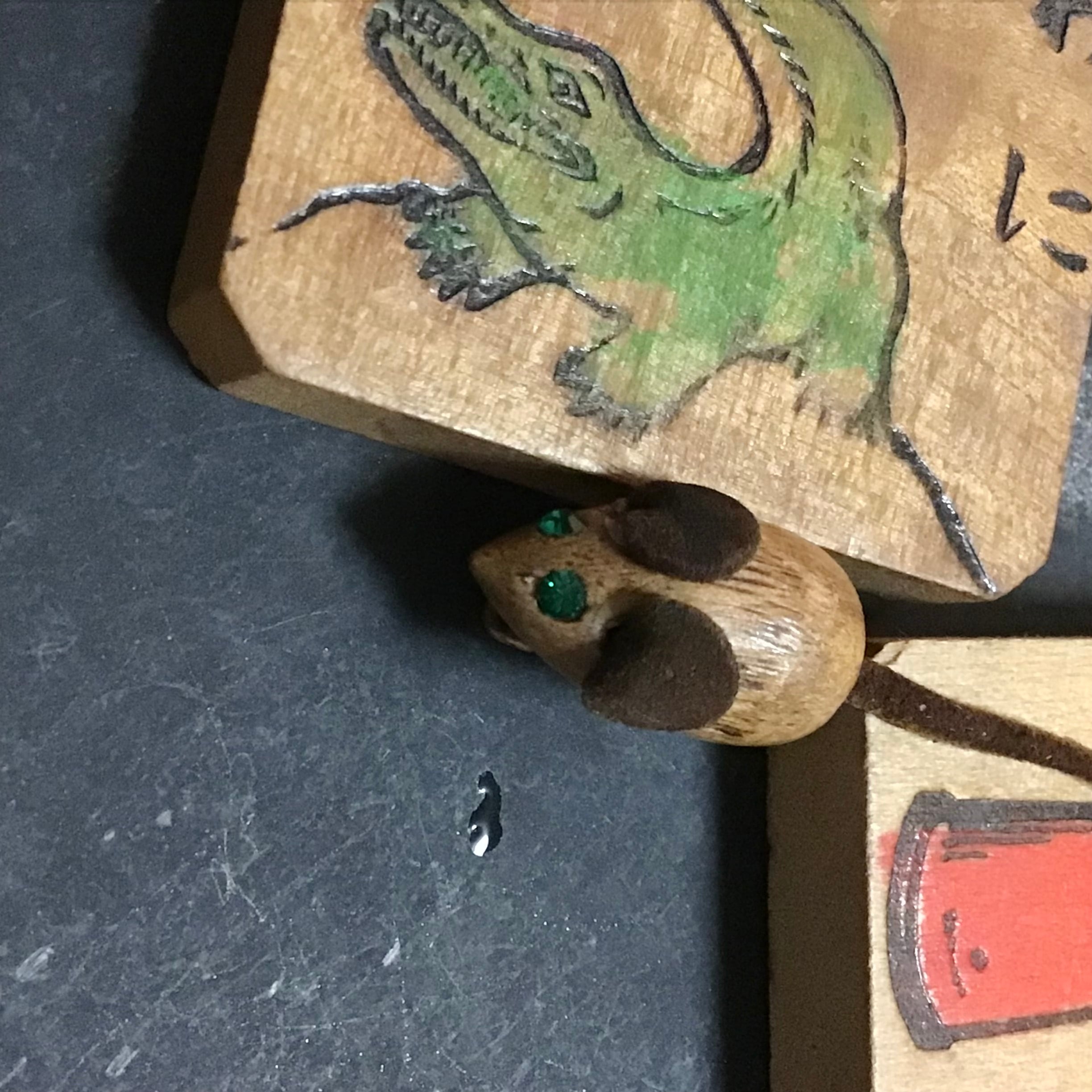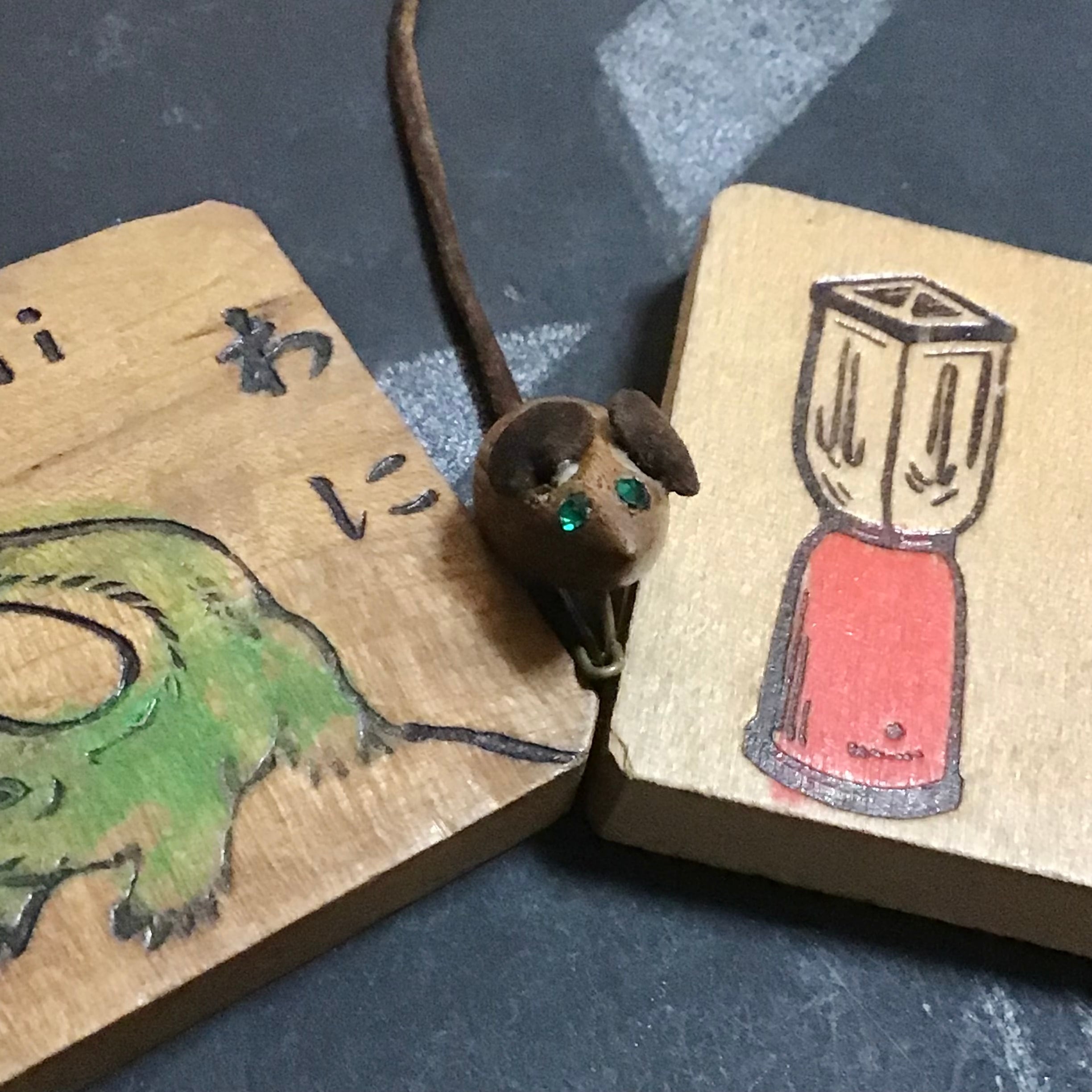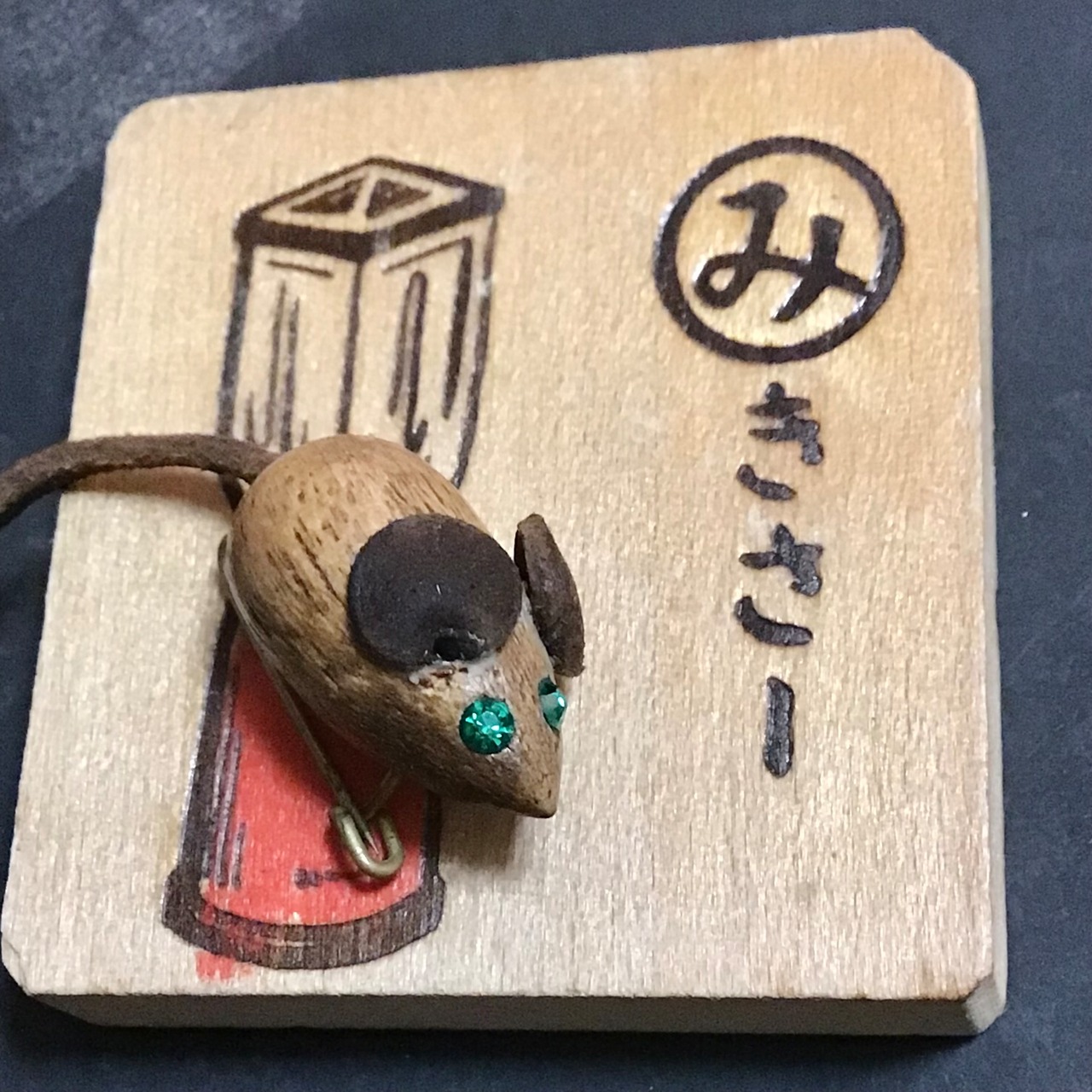 1950年代、木製の小さなネズミブローチ。キラッと光るグリーンの瞳と長いしっぽがポイントのスカンジナビアで作られたお品です♡とてもシンプルですが温もりのある素朴さと、洗練されたデザイン性を感じさせるのは北欧デザインならでは◎ざっくりニットにちょこんとつけて、しっぽが垂れるのも可愛いです!