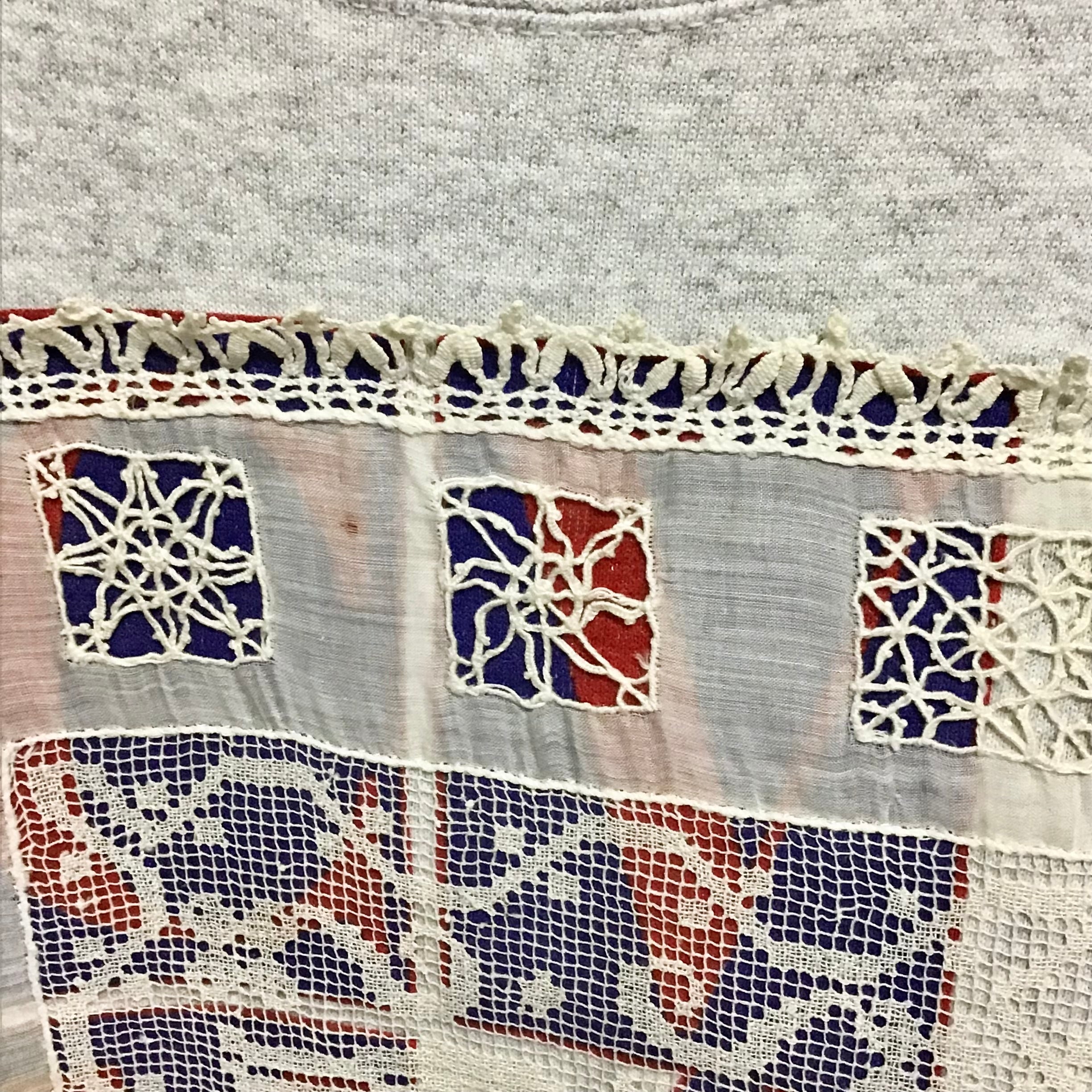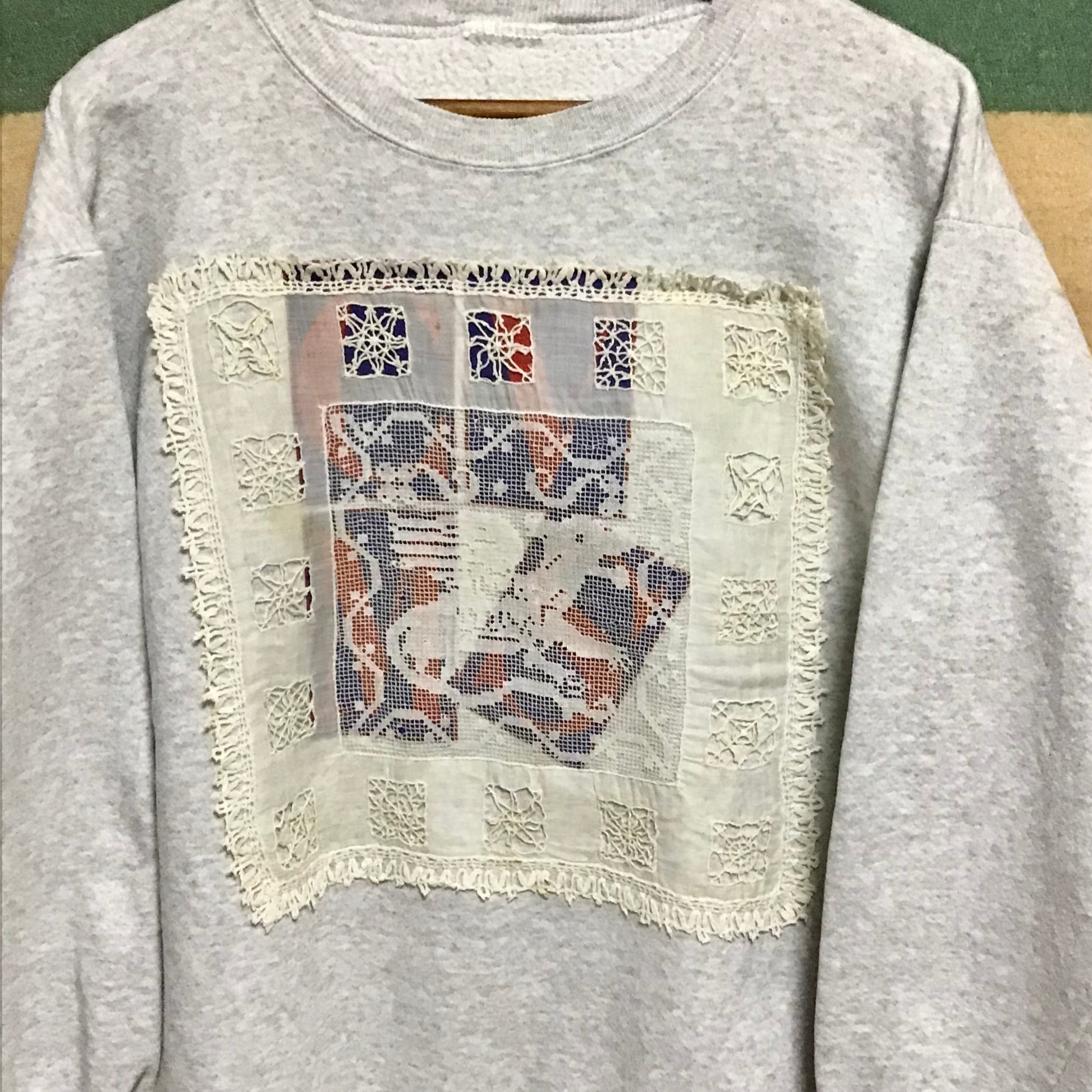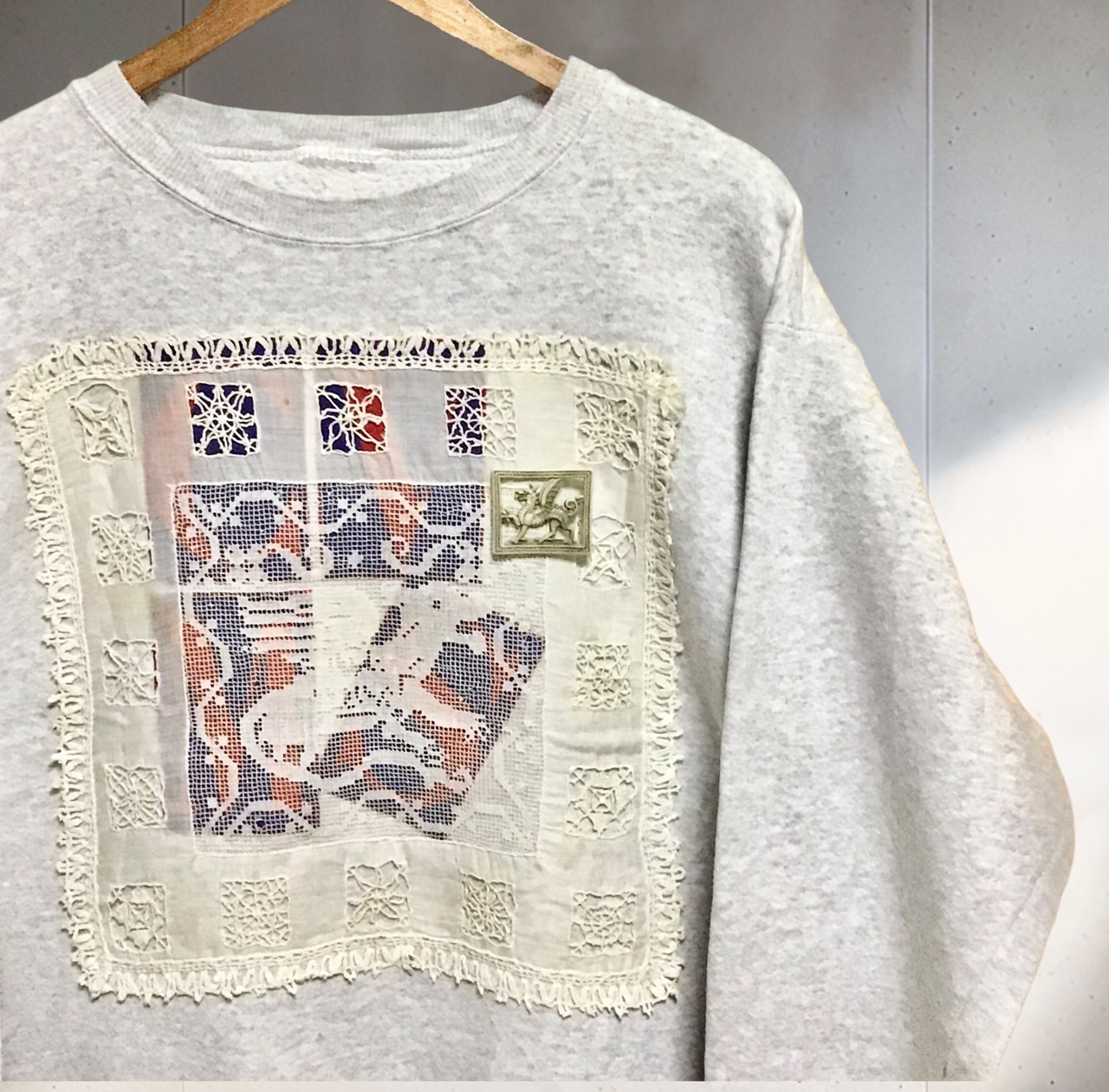 昨年に続き、今年もリメイクスウェットのご紹介です!タグはありませんが2000年代のプリントスウェットに1930年代のアンティークレースを施しました◎コットンとタティングレースの組み合わせや、なんと言ってもドラゴンモチーフがとても可愛いです♡100年余りの時代を経たアンティークを、日常でお楽しみ頂けましたら嬉しいです!