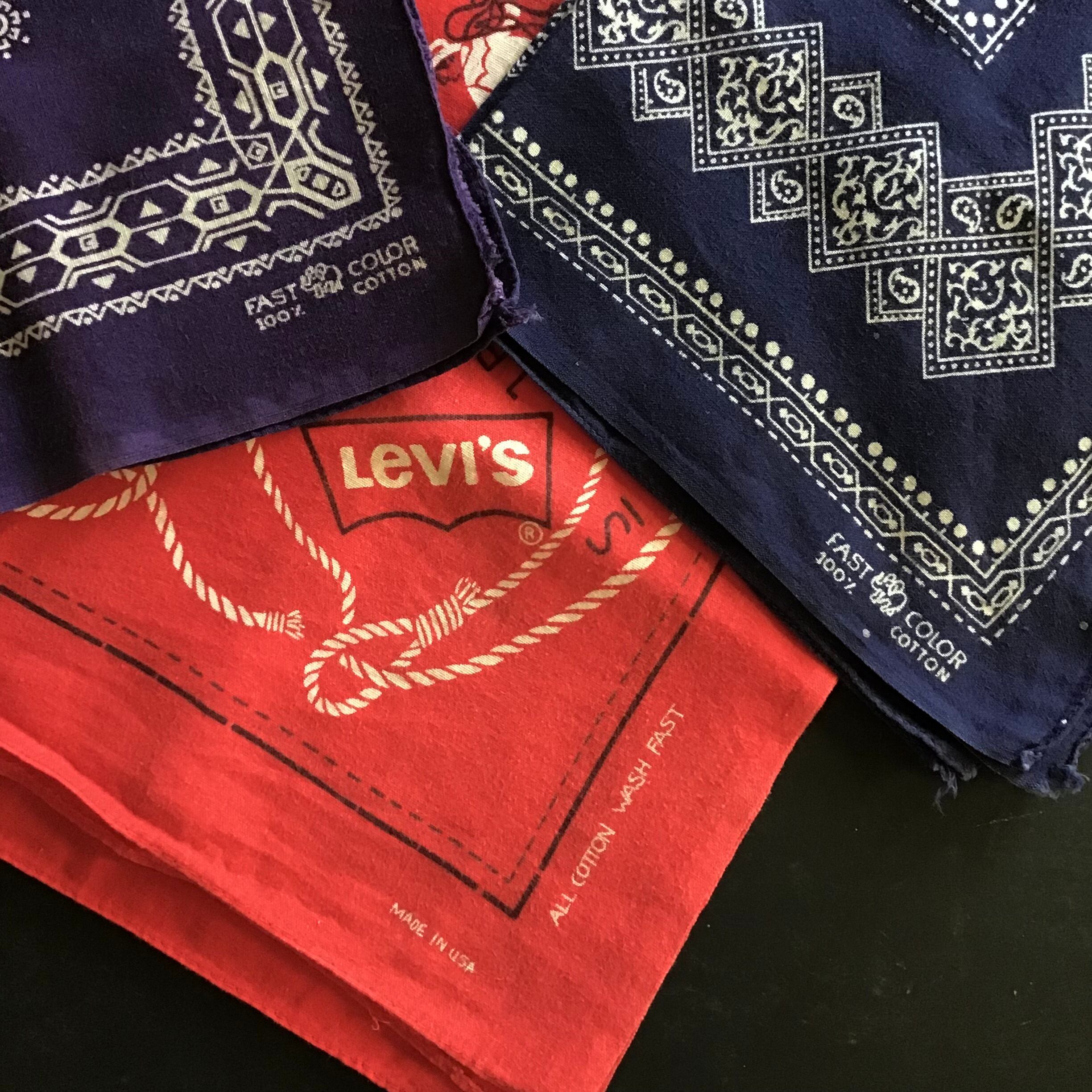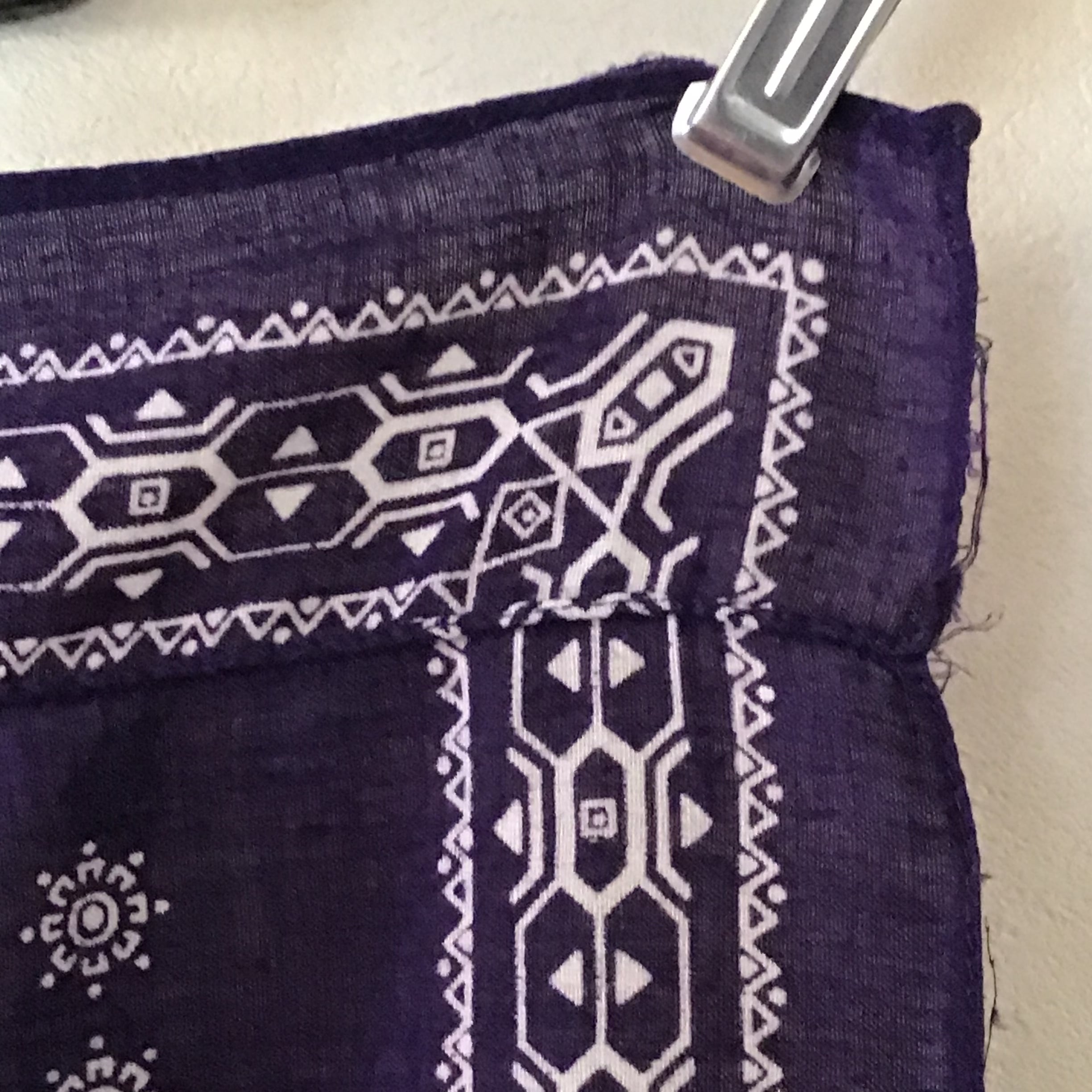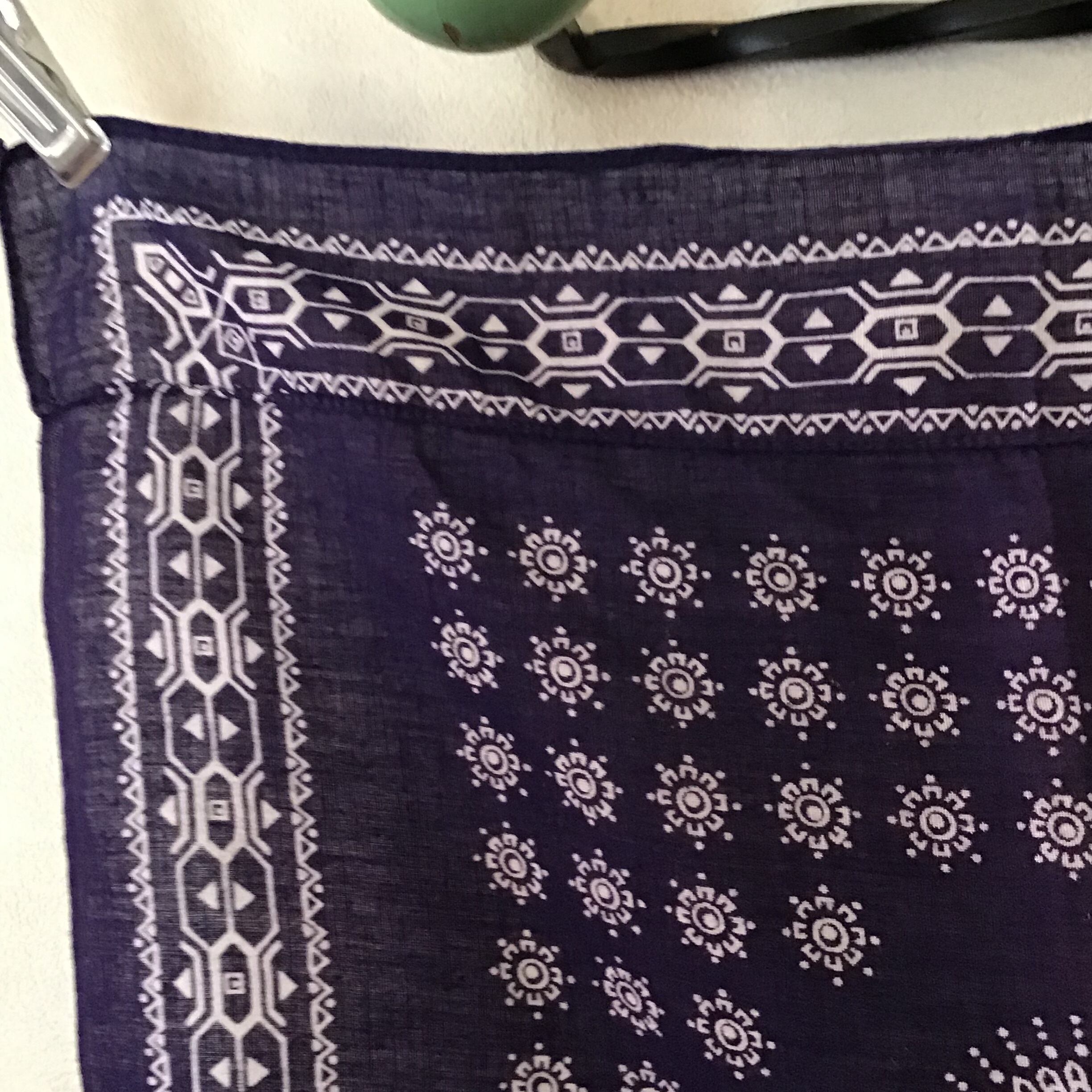 1960年代、小ぶりサイズのバンダナ。茄子紺色が良い色味です◎首元やバッグに巻いたり、ポケットからチラリと覗かせたり、コレクションしても楽しいお品です!