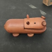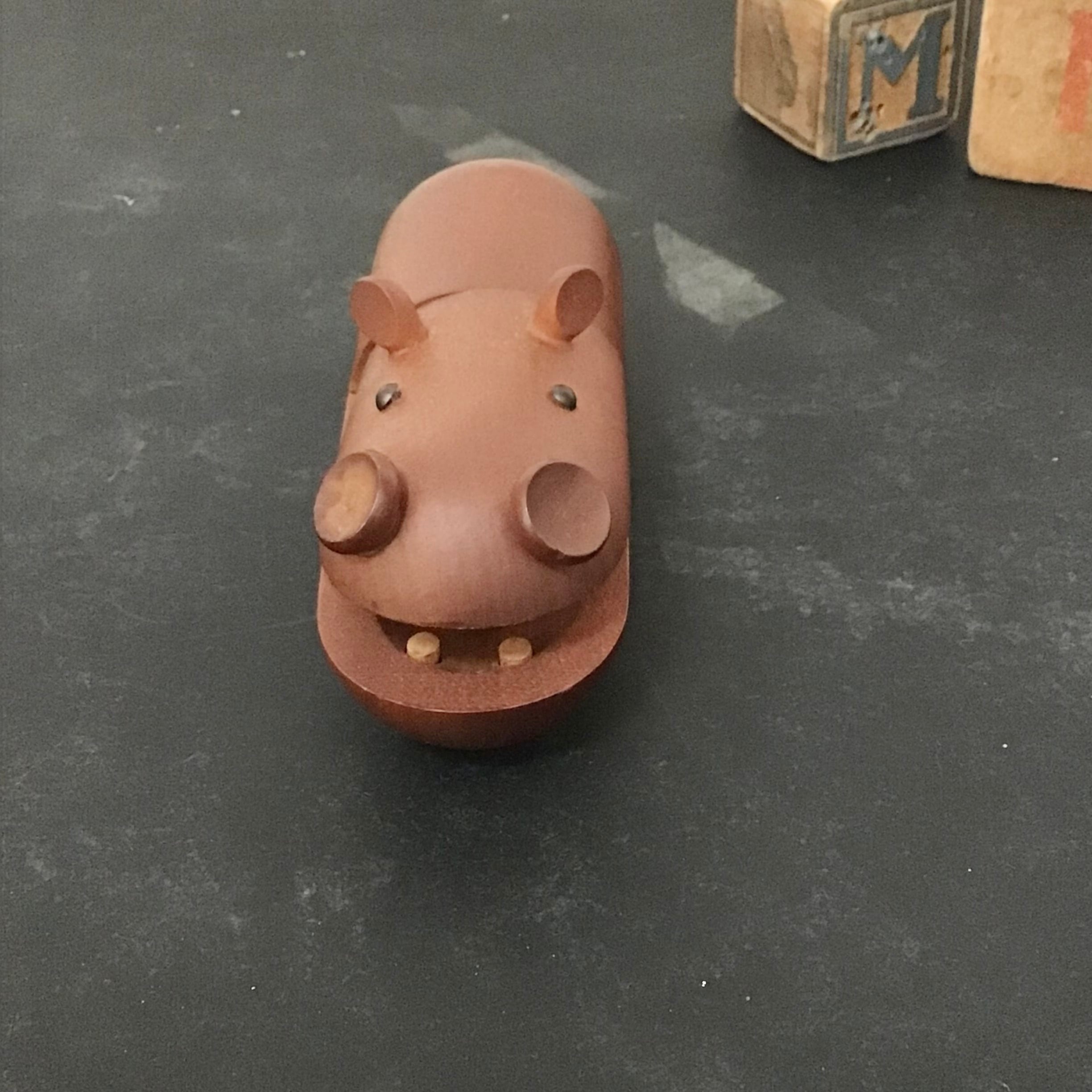 1960年代、日本のこけし職人によって作られたロイヤルペットシリーズ、口がカスタネットのように閉じる表情も可愛らしいカバです♡北欧デザインを参考に作られているのも納得の、シンプルですが温かみのあるお品です◎様々なインテリアとも相性が良くおすすめです!