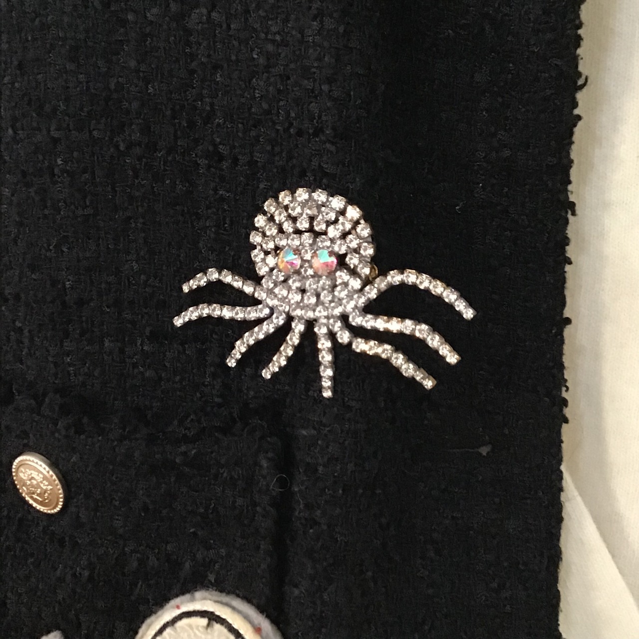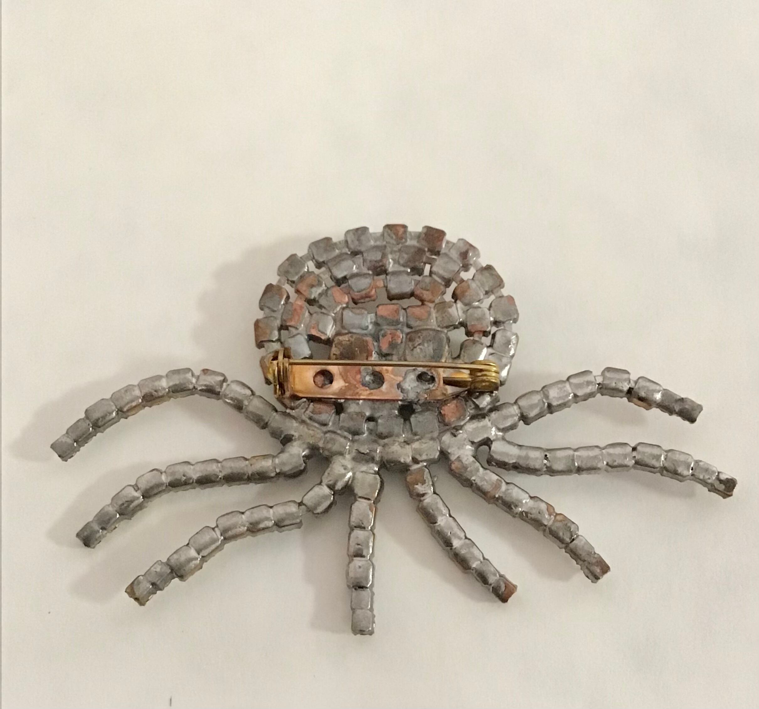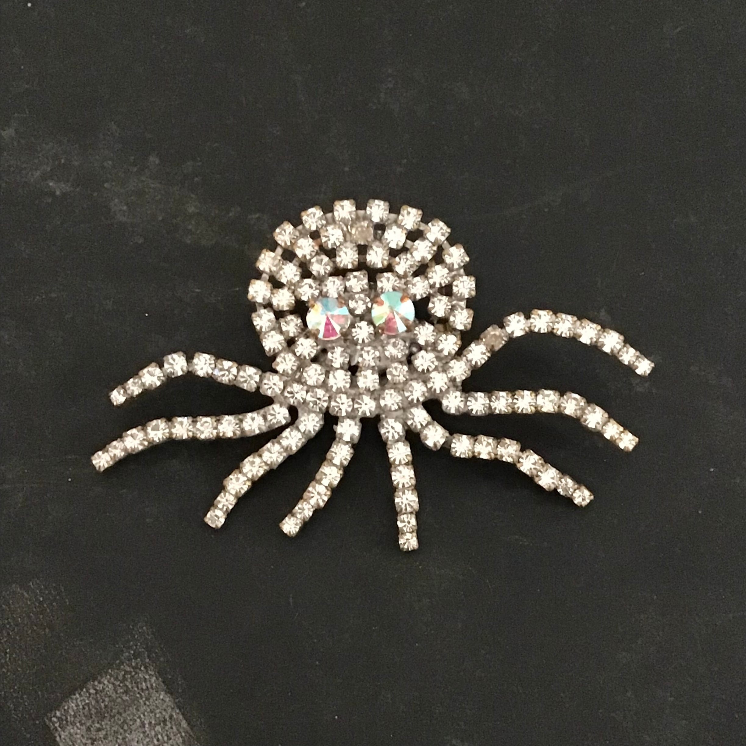 チェコガラスのブローチ。100年以上も同じ製法で一つひとつ丁寧に手作業で作られているジュエリー達。今まで古いものをご紹介してきましたが、こちらは新品です◎ ユニークなモチーフが多くヴィンテージとも相性抜群!こちらはキラリと光る瞳がポイントのタコさんです♡今にも動き出しそうな足の繊細な作りも素敵で、シンプルが故に存在感があり黒ニットなどにとても映えます◎個人的にお気に入りです!