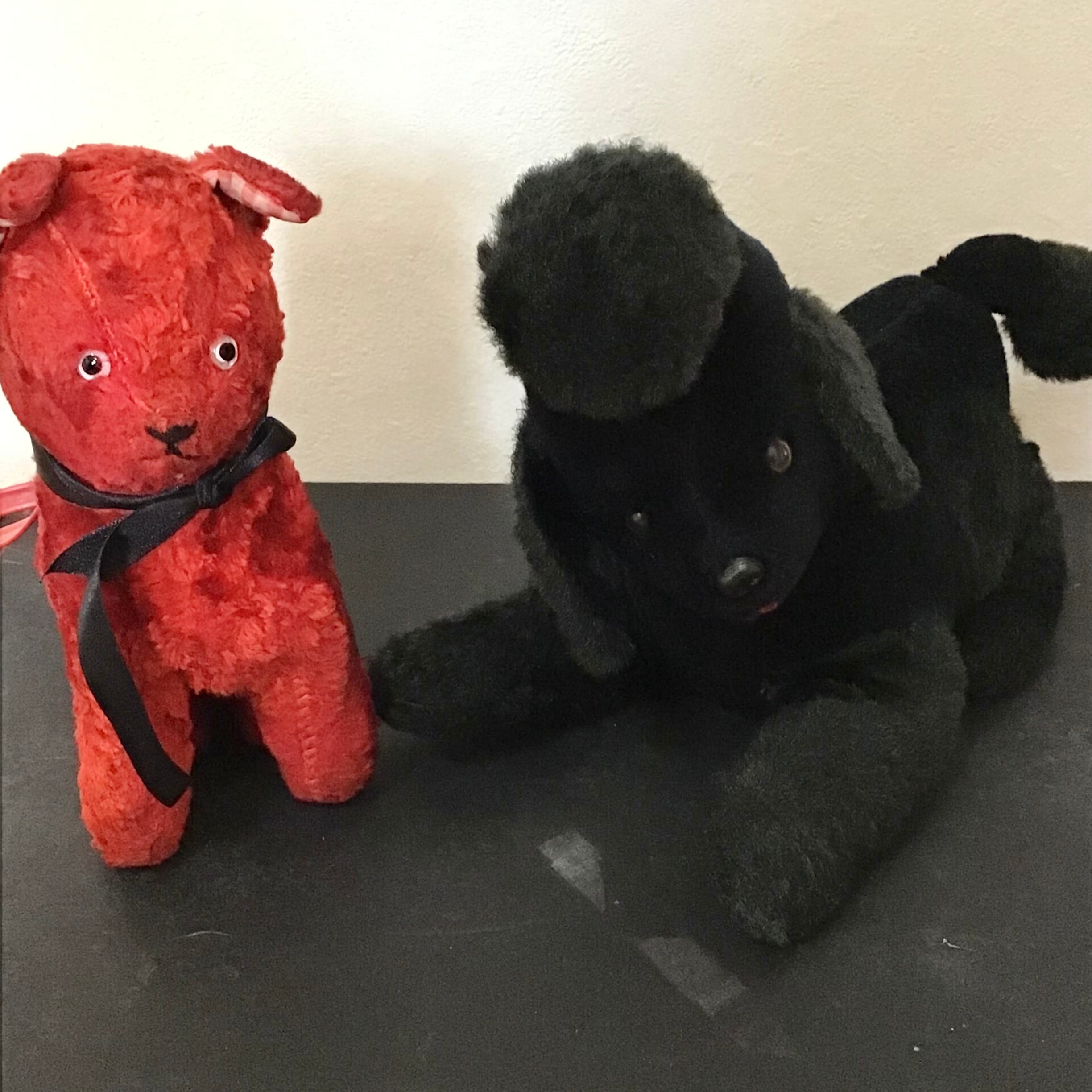 1950年代のプードルのぬいぐるみバッグ。ペロッと出た舌と、リーゼントみたいな頭のモフモフがたまりません♡こちらは元々ラジオだったものをバッグにしてある様で、お腹に付いたファスナーの中、ラジオが内蔵されてた部分がバッグスペースとなっており鍵と小銭入れ位は入ります◎