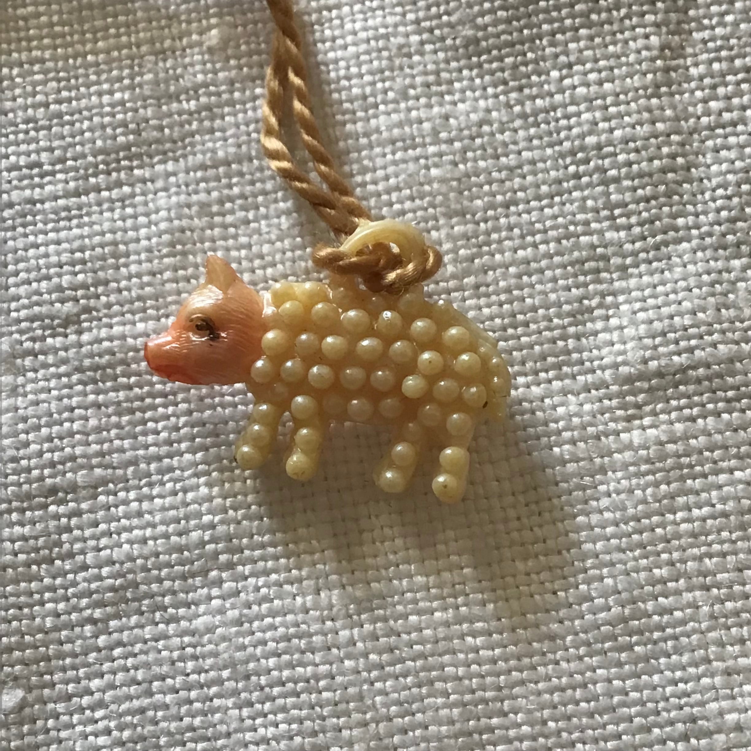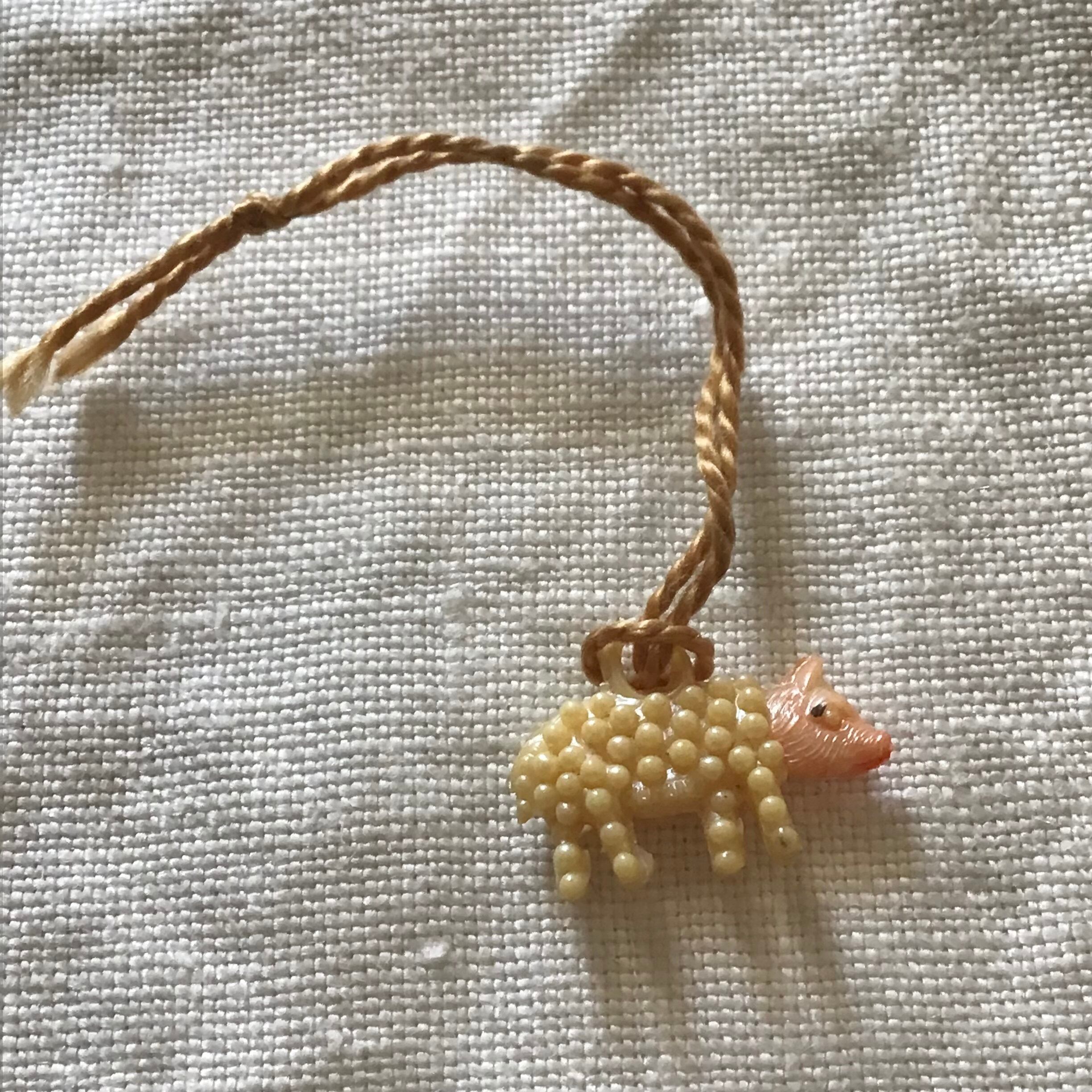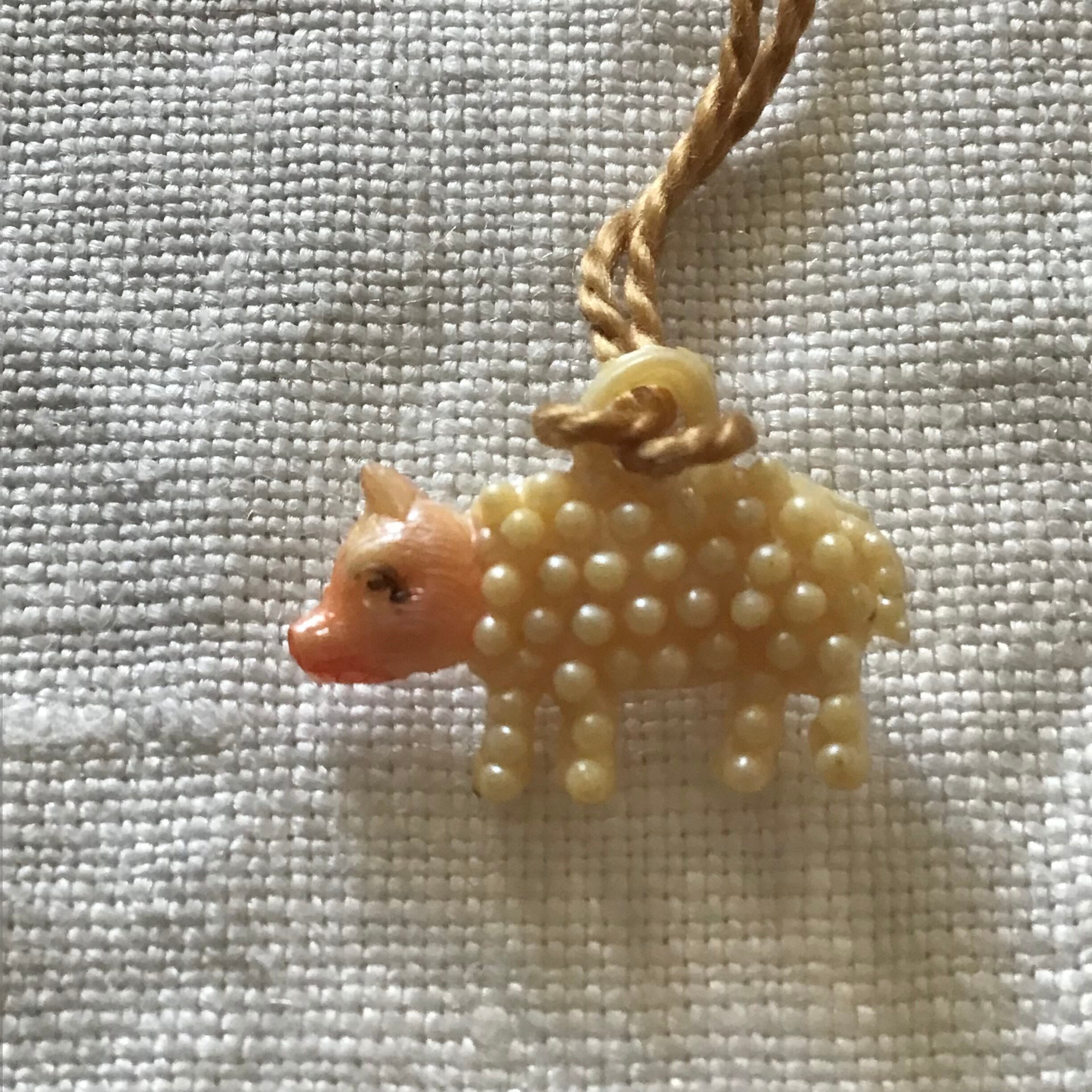 1950年代頃のガムボールのおまけチャーム、粒々の体がチャーミングなブタさん。ブローチやネックレスにしたり、襟の先やお気に入りのポーチに縫い付けても可愛いです♡ボールチェーンをお付けしますので必要に応じてお使いください◎