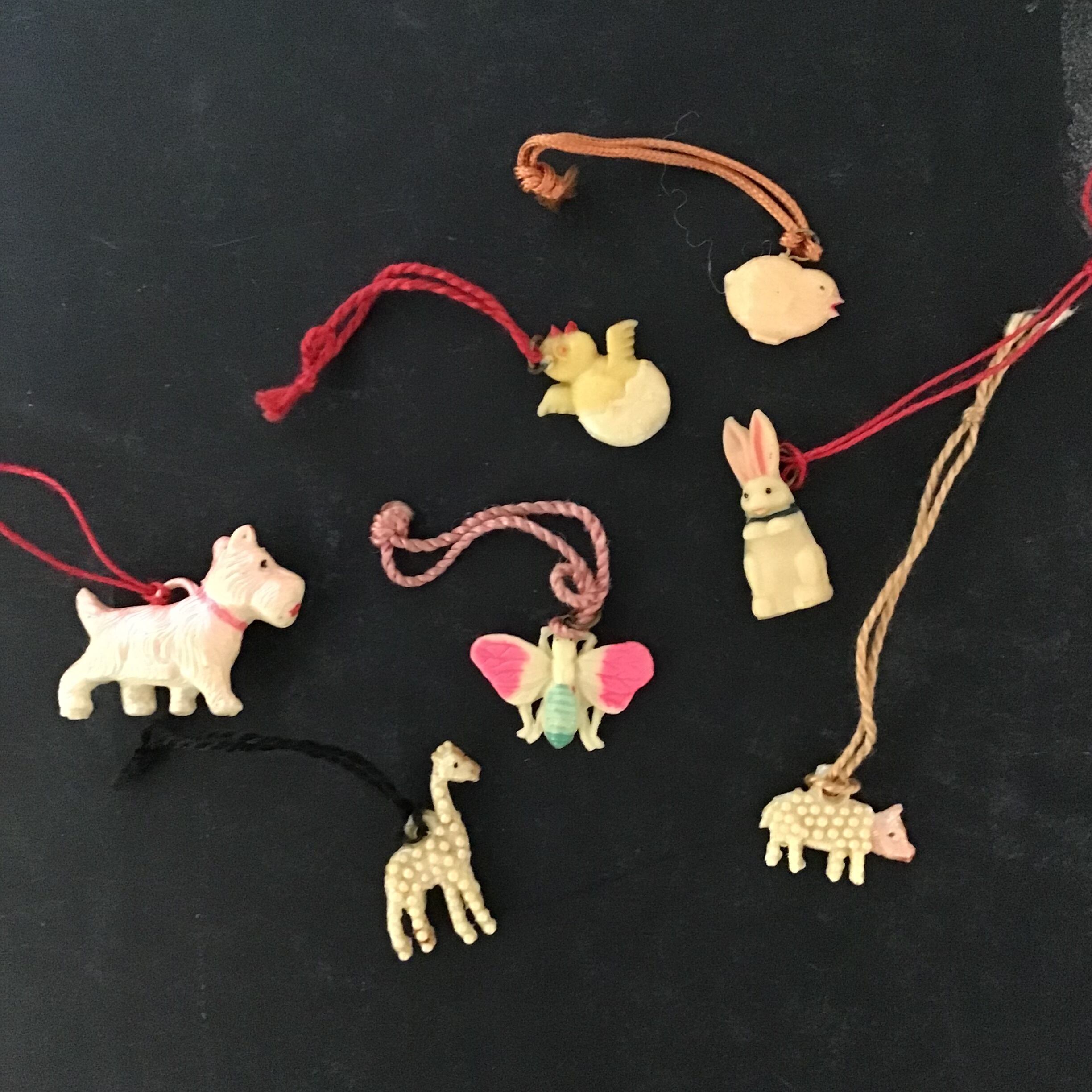 1950年代頃のガムボールのおまけチャーム、少し大きめのテリアです。ブローチやネックレスにしたり、襟の先やお気に入りのポーチに縫い付けても可愛いです♡ボールチェーンをお付けしますので必要に応じてお使いください◎