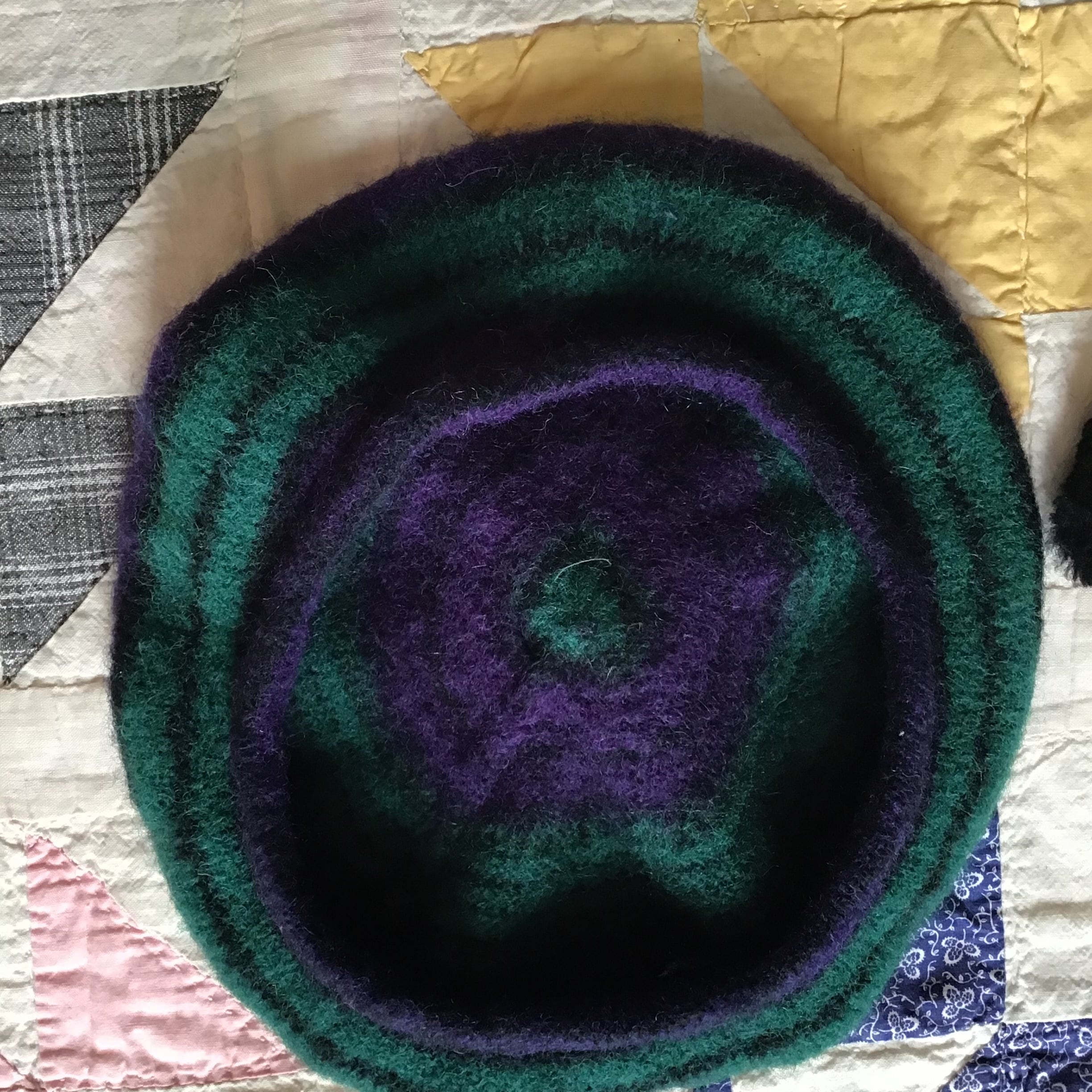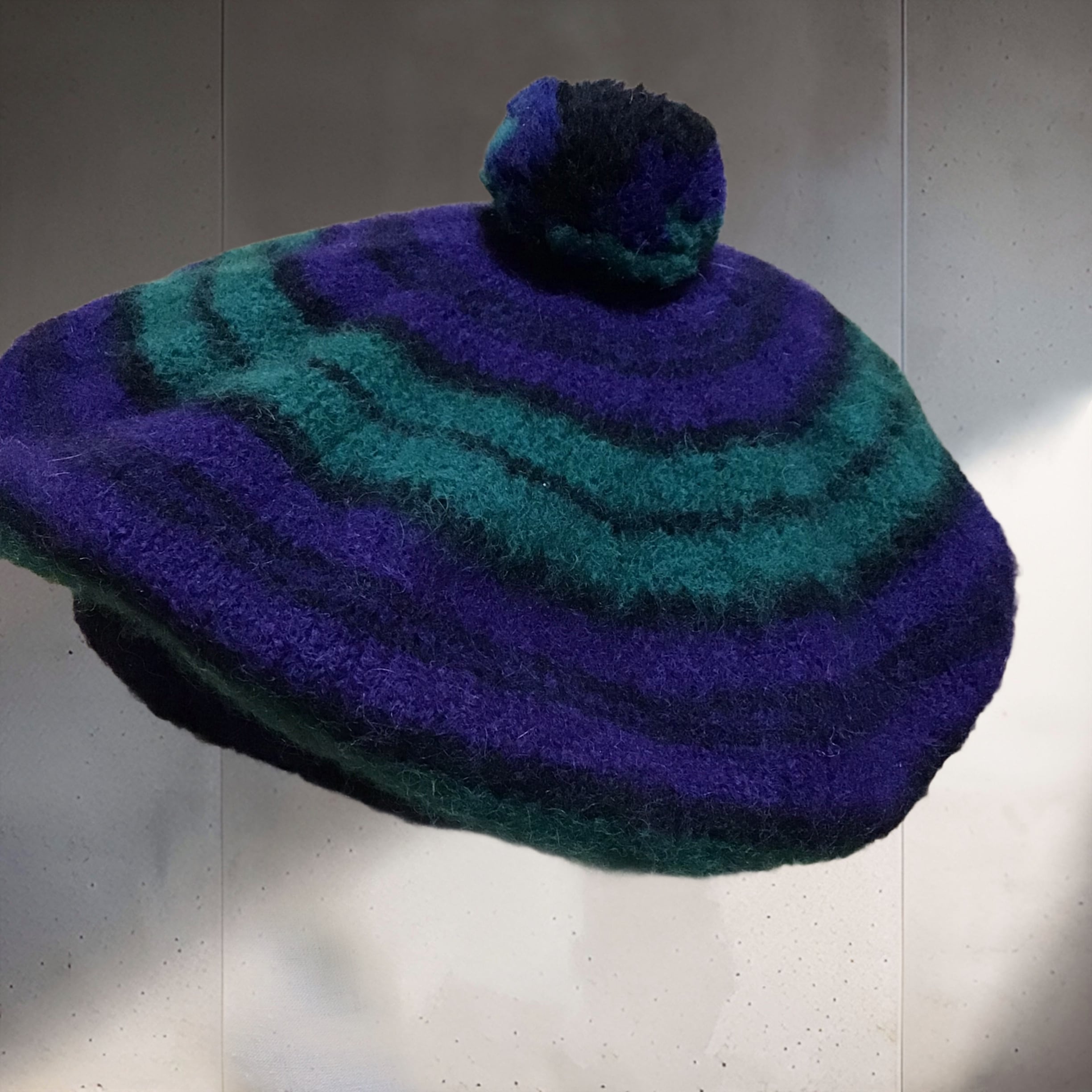 1970年代のスコットランド製ベレー帽。グリーンとネイビーの配色がカジュアル過ぎず、いろいろなコーディネートのポイントになってくれそうです♡ウールなので暖かさも◎です!
