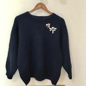 モヘア混のネイビーニット。比較的厚みもあり、たっぷりとした身幅で丸みのあるボックスシルエットがナイスバランス♡どんなスタイルにも馴染み、シルバーやビジューなど様々な素材のジュエリーが映えるネイビーカラーが良いですね◎