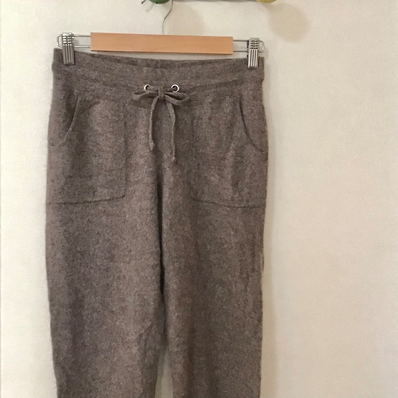 アメリカのデパート、ブルーミングデールズのカシミアニットパンツ。落ち着いたベージュで、レギンスほどぴったりせずワンピースや長めのニットなどに合わせて頂くと可愛いです♡裾のリブもポイントで手編みのソックスなどを合わせても!