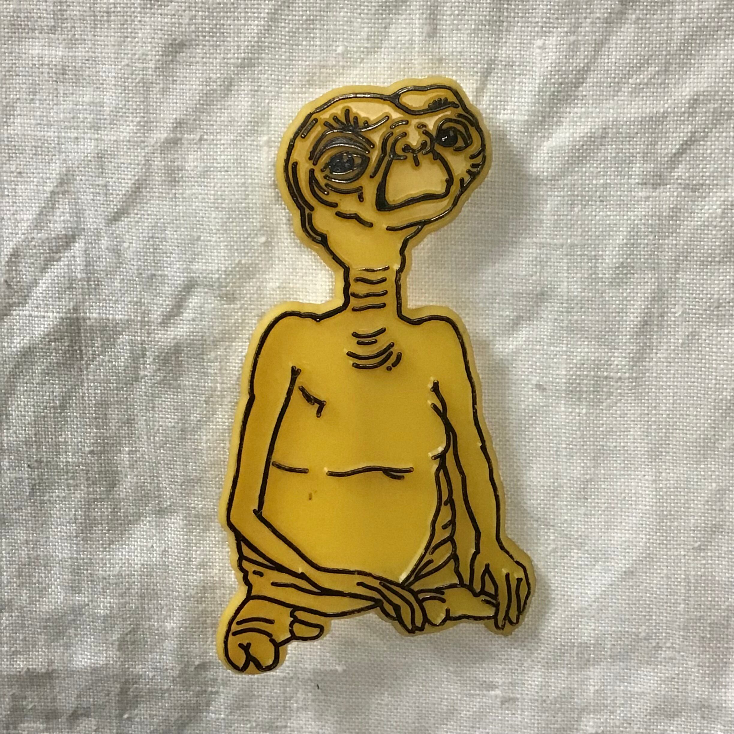 1980年代のE.T.プラスチックバッジ。缶バッジとはまた違った可愛さがあり、大きめサイズがナイスです♡スウェットやバッグなど、お好みの場所につけてお楽しみください◎