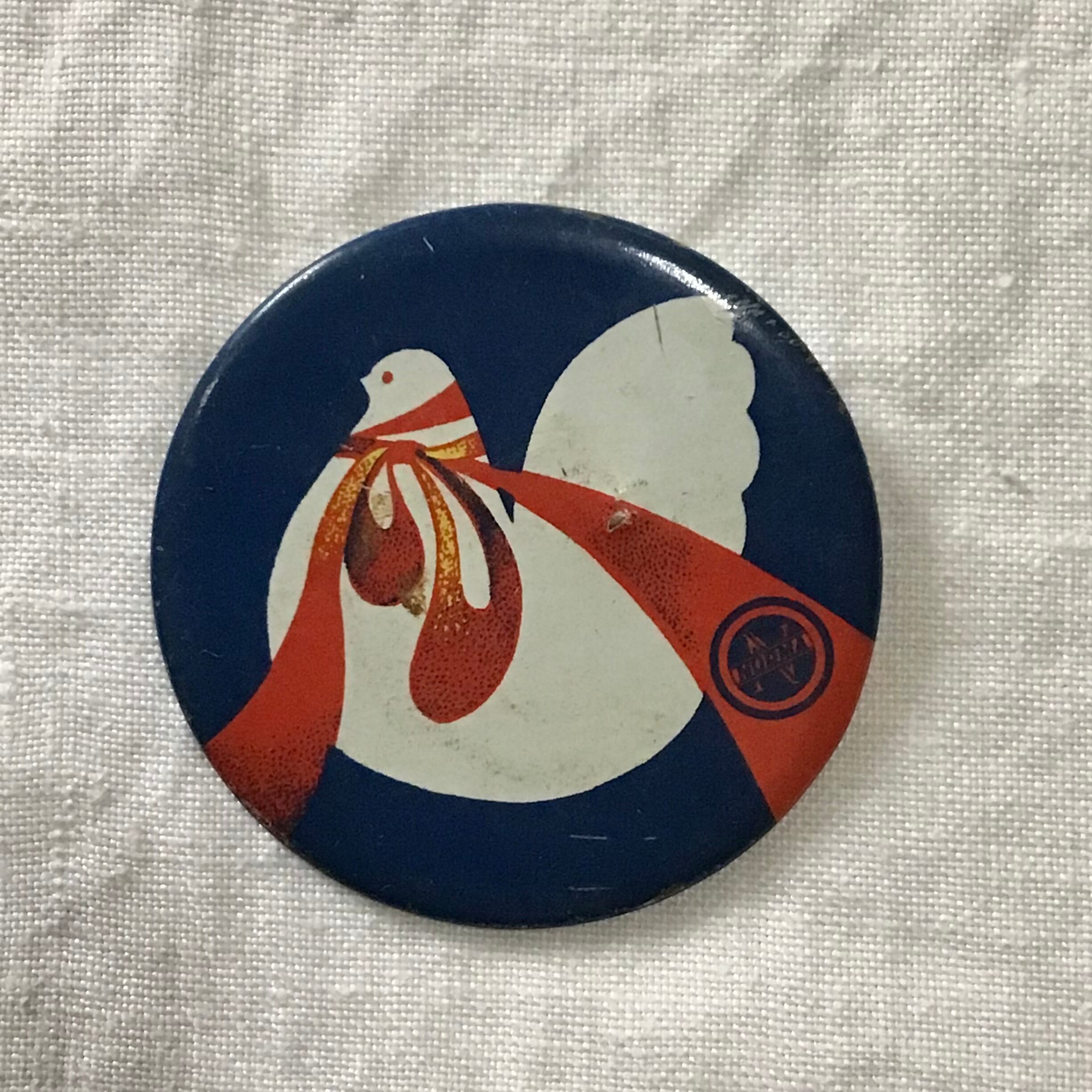 1970年代、ソ連時代の缶バッジ。幸せの象徴、白い鳩が可愛いです♡独特なデザインや色使いが良い雰囲気の缶バッジ、お好きな場所につけてお楽しみください◎