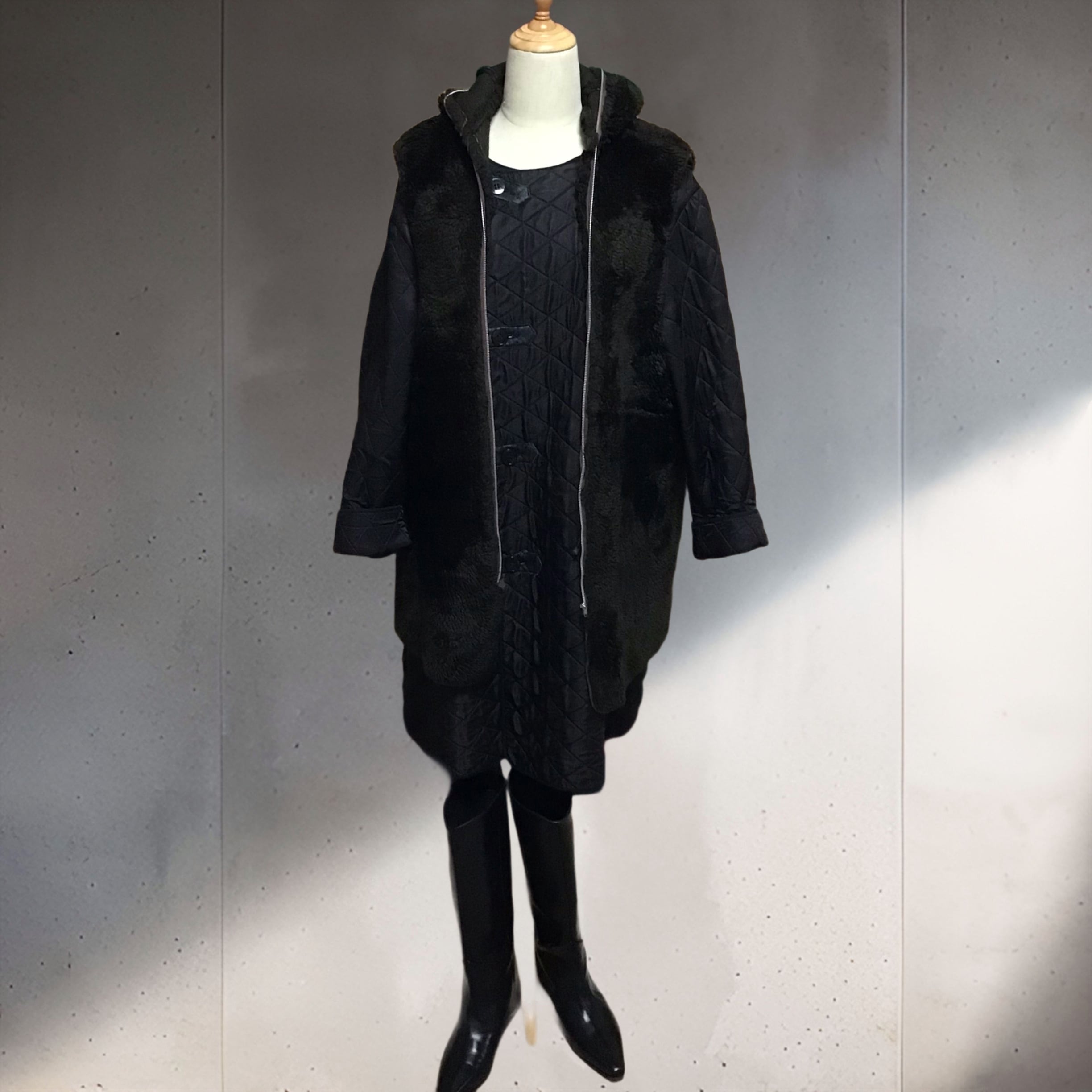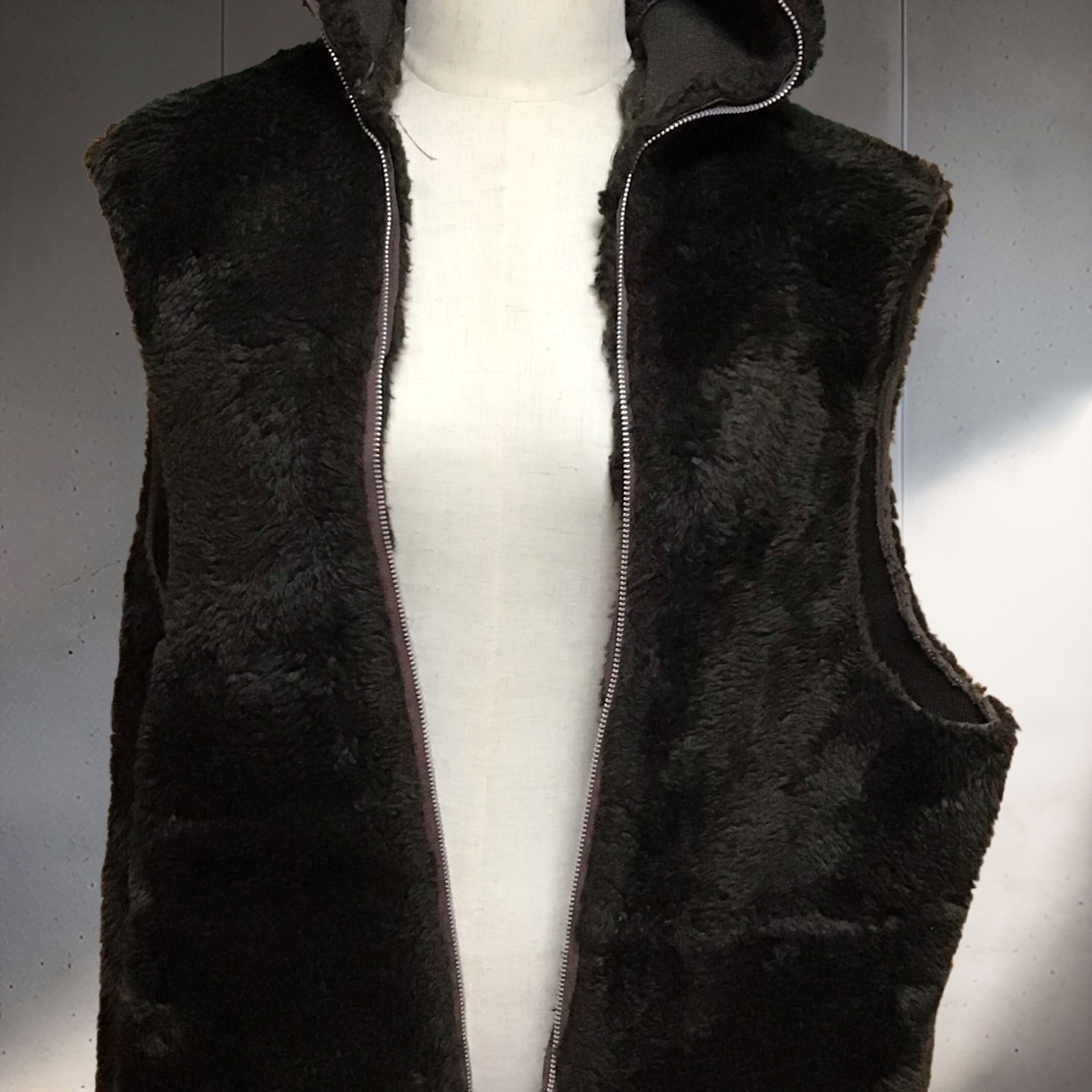 フェイクファーのライナーロングベスト。ダークブラウンが良いお色で、モコモコ感が可愛いです♡アームホールもゆったりでアウターや腕周りにボリュームのあるの物にもストレスフリーで羽織って頂けます◎ライナーのため、ファスナーはありますが前は閉じませんのでご注意を!