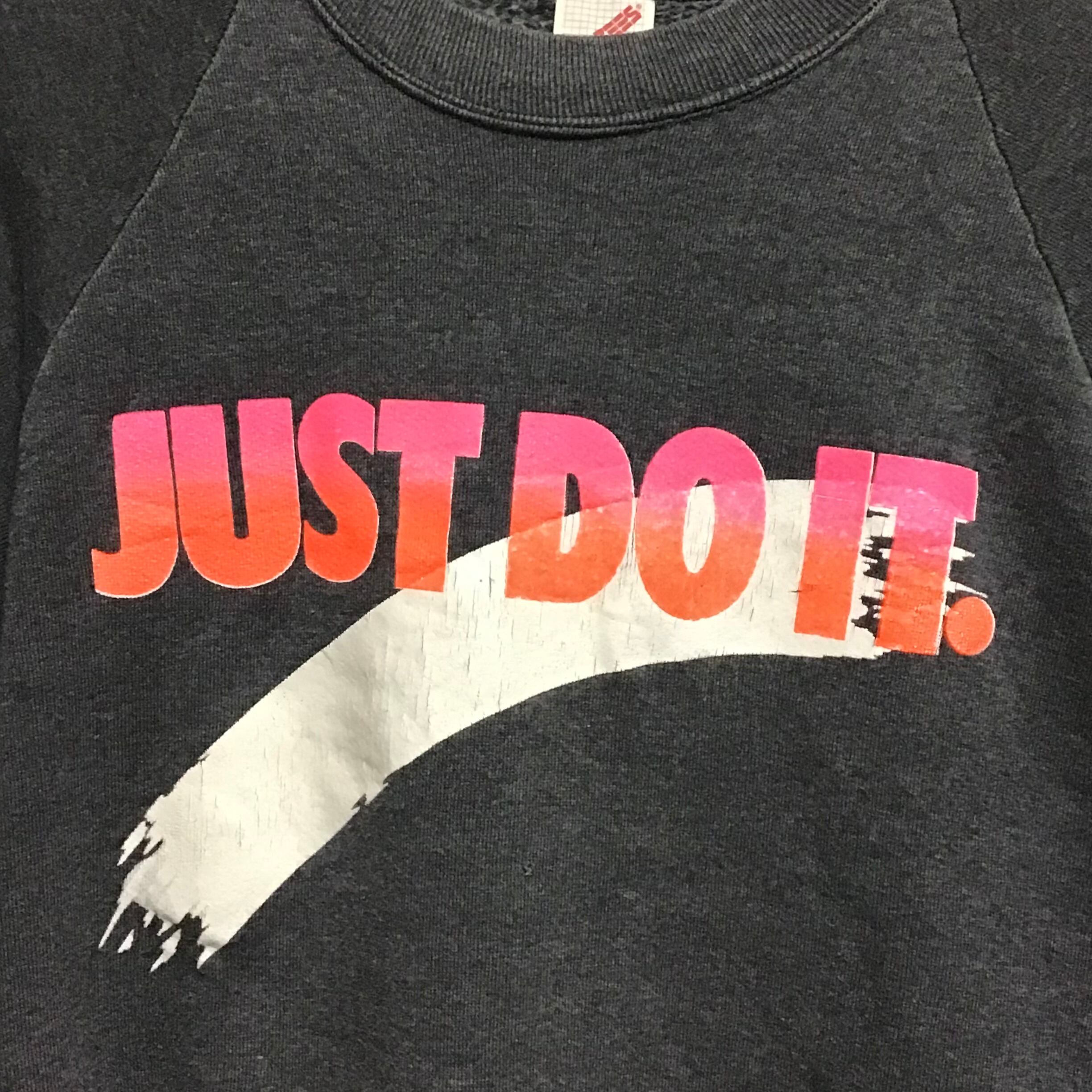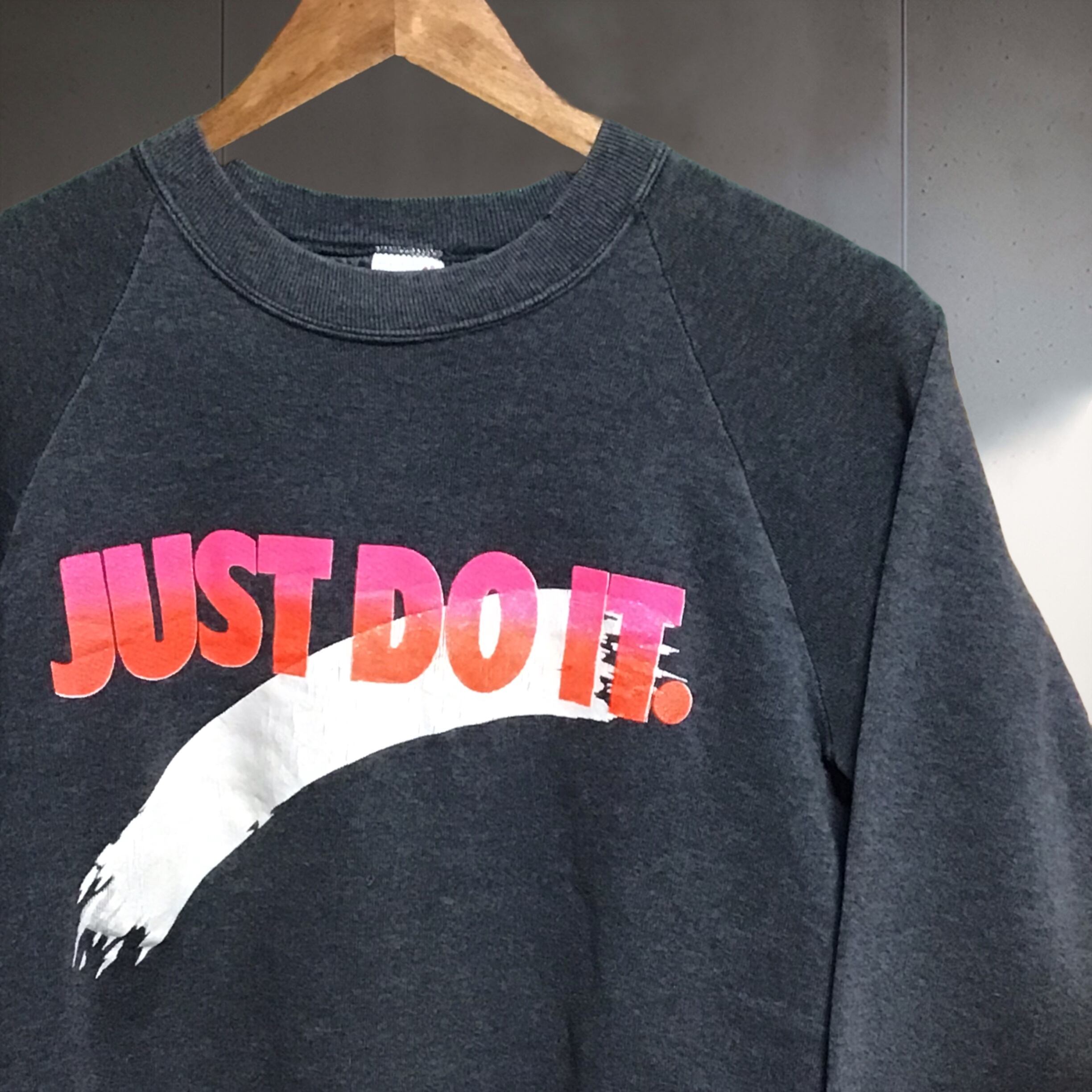 1990年代のプリントスウェット。”JUST DO IT.”のメッセージがどこかで見たことあるような…♡チャコールグレーとピンクのカラーリングも良く、どこか緩いムードが可愛いです◎ジャストサイズで着られるのもポイント!