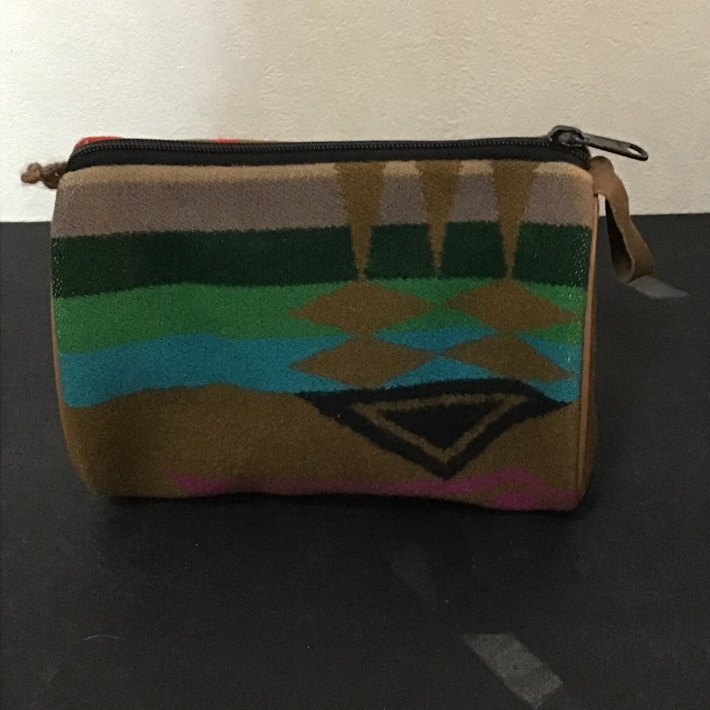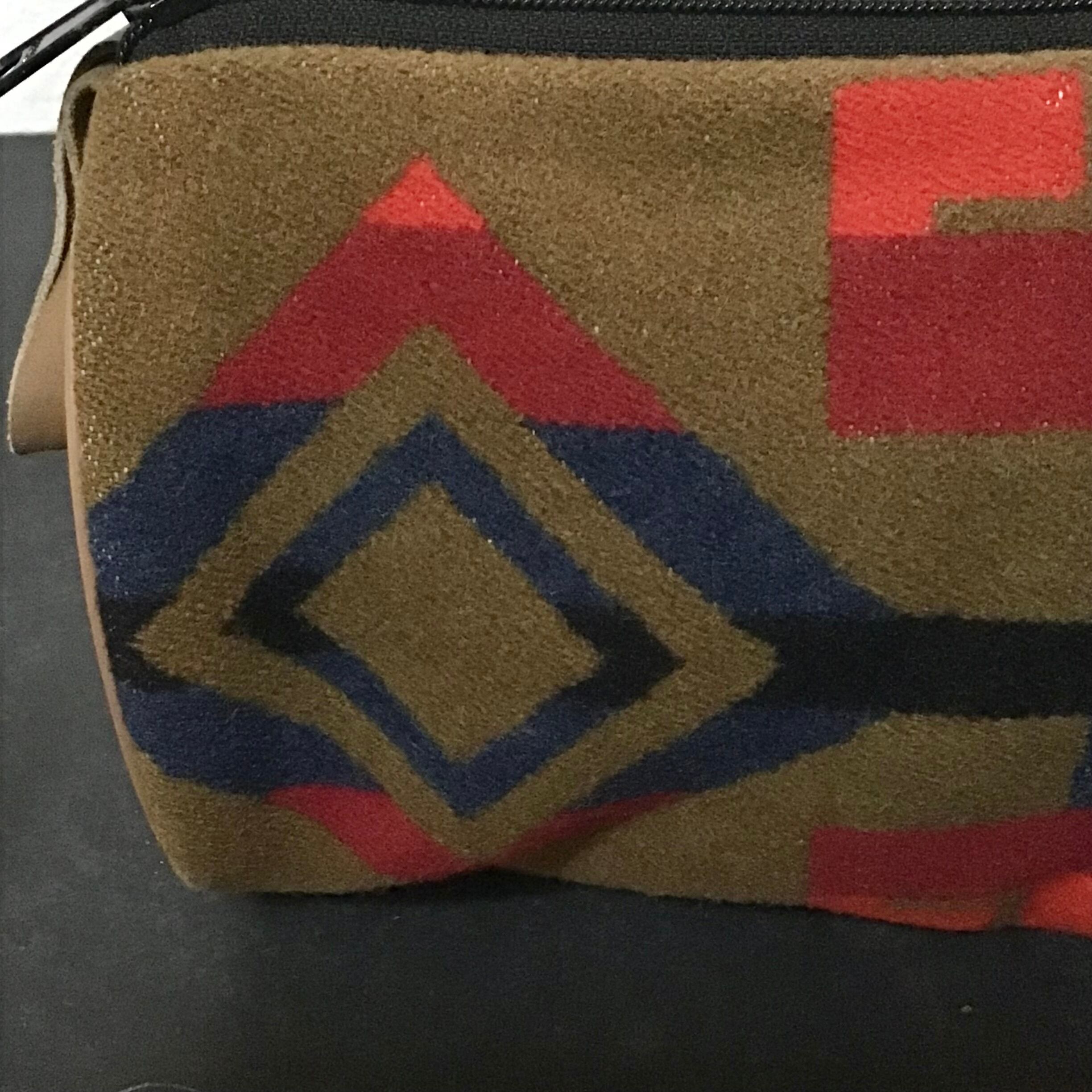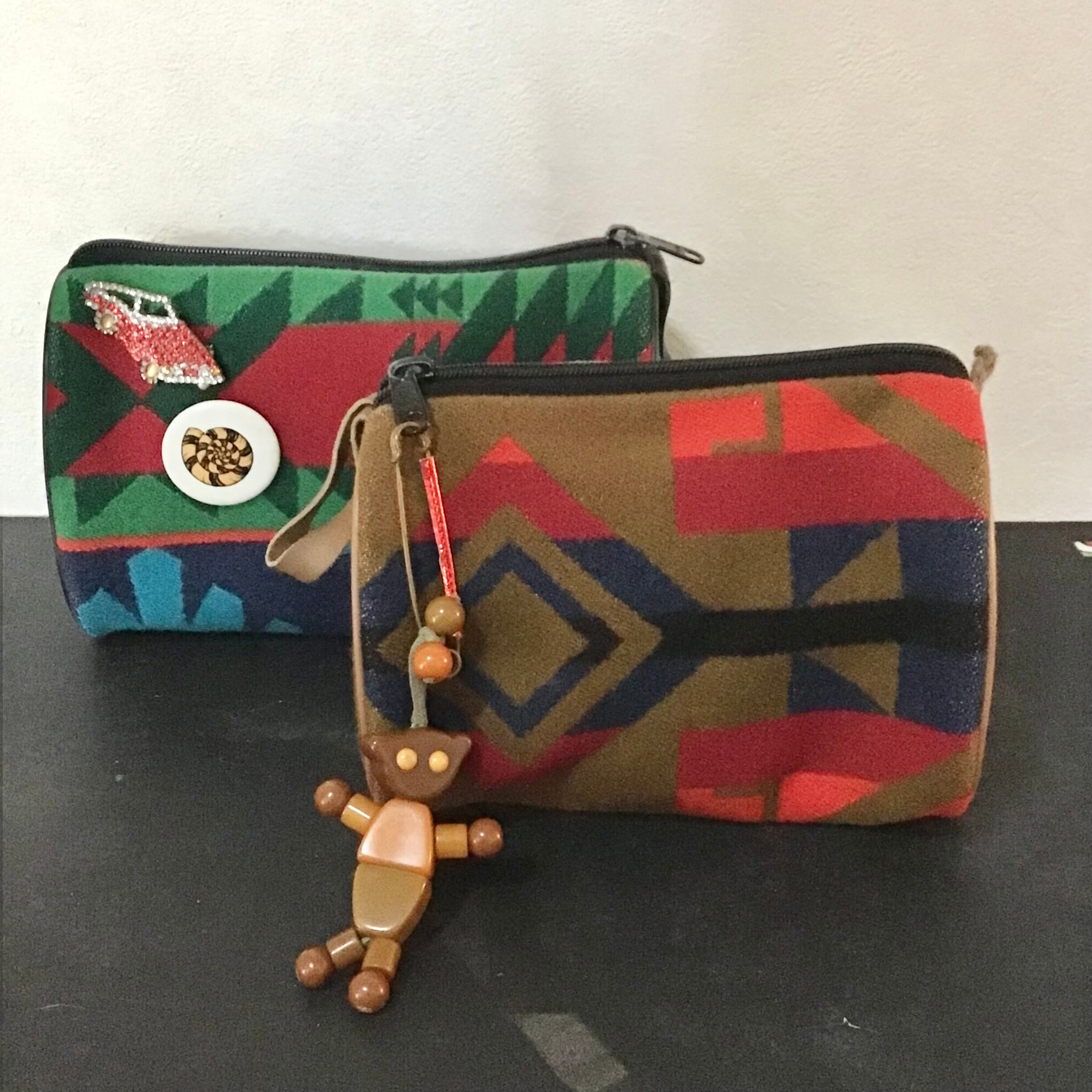 1980年代のペンドルトンのウールブランケットポーチ。表裏で違う柄が出ており雰囲気も変わります◎クラッチバッグのように抱えたり、バッグインバッグとしても♡かごバッグから覗かせても可愛いです!