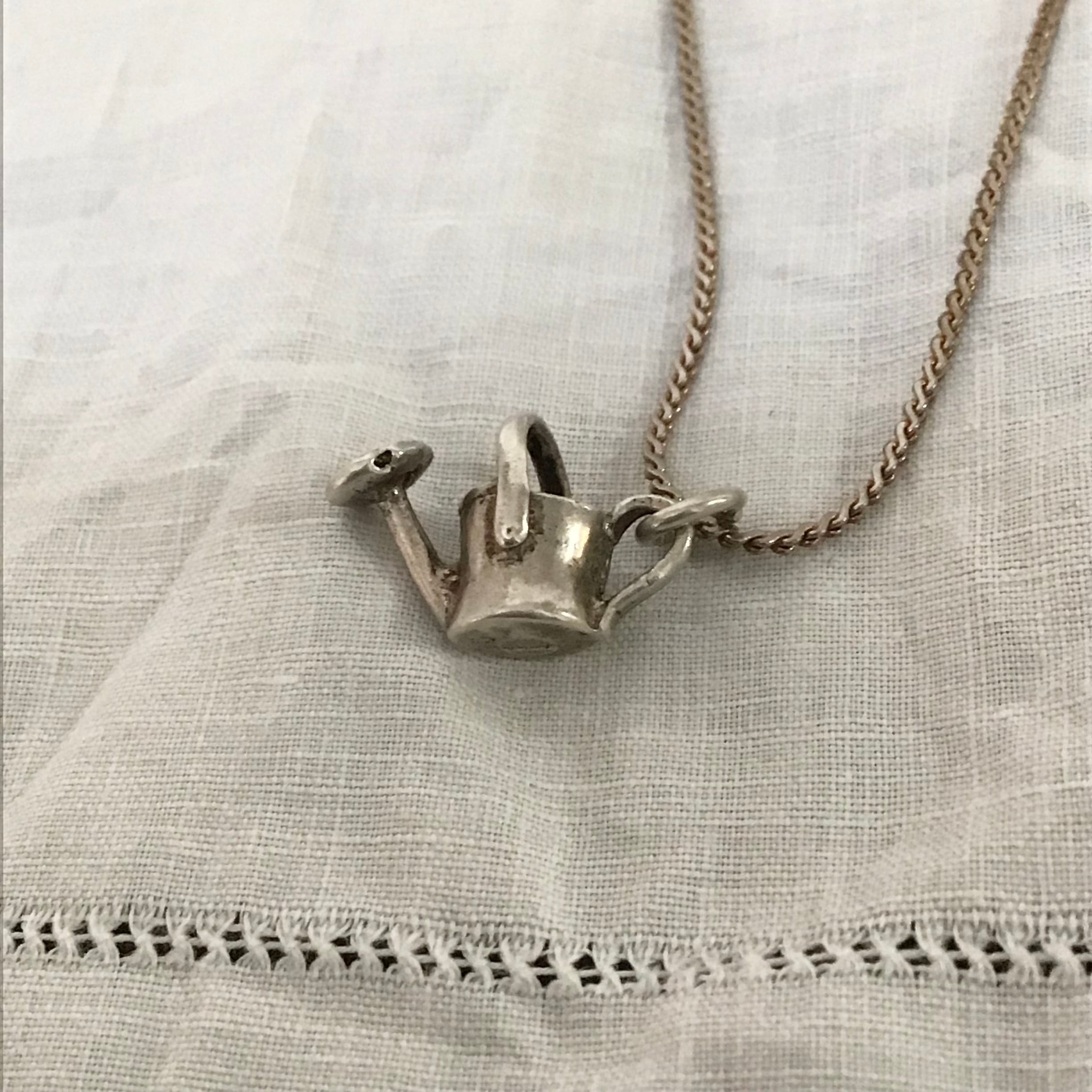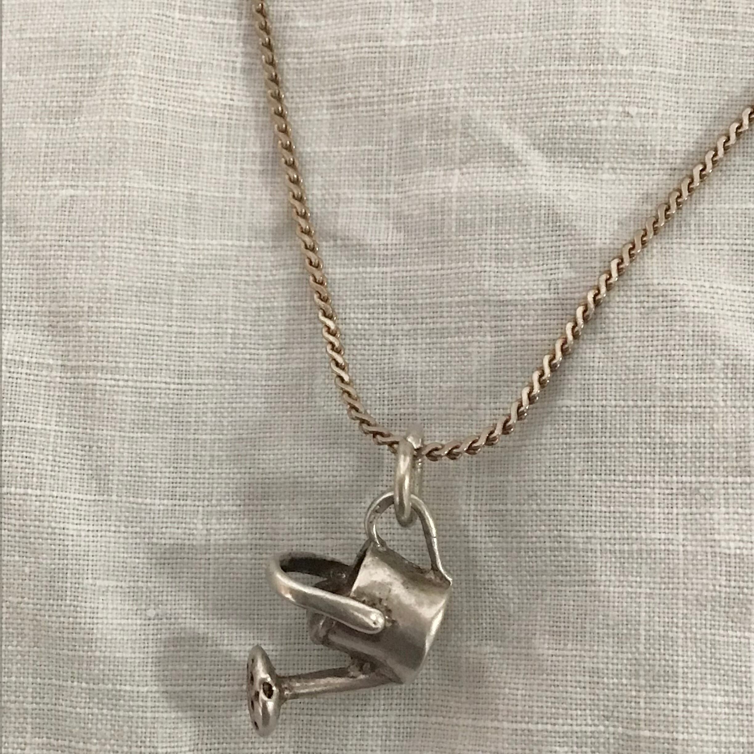 ヴィンテージネックレス、チェーンとチャーム共にシルバー925製です。立体感のあるジョウロモチーフがユニークで良いです♡お手持ちのチャームを足してオリジナル感のあるネックレスにするのも楽しいです◎ギフトにもおすすめです!