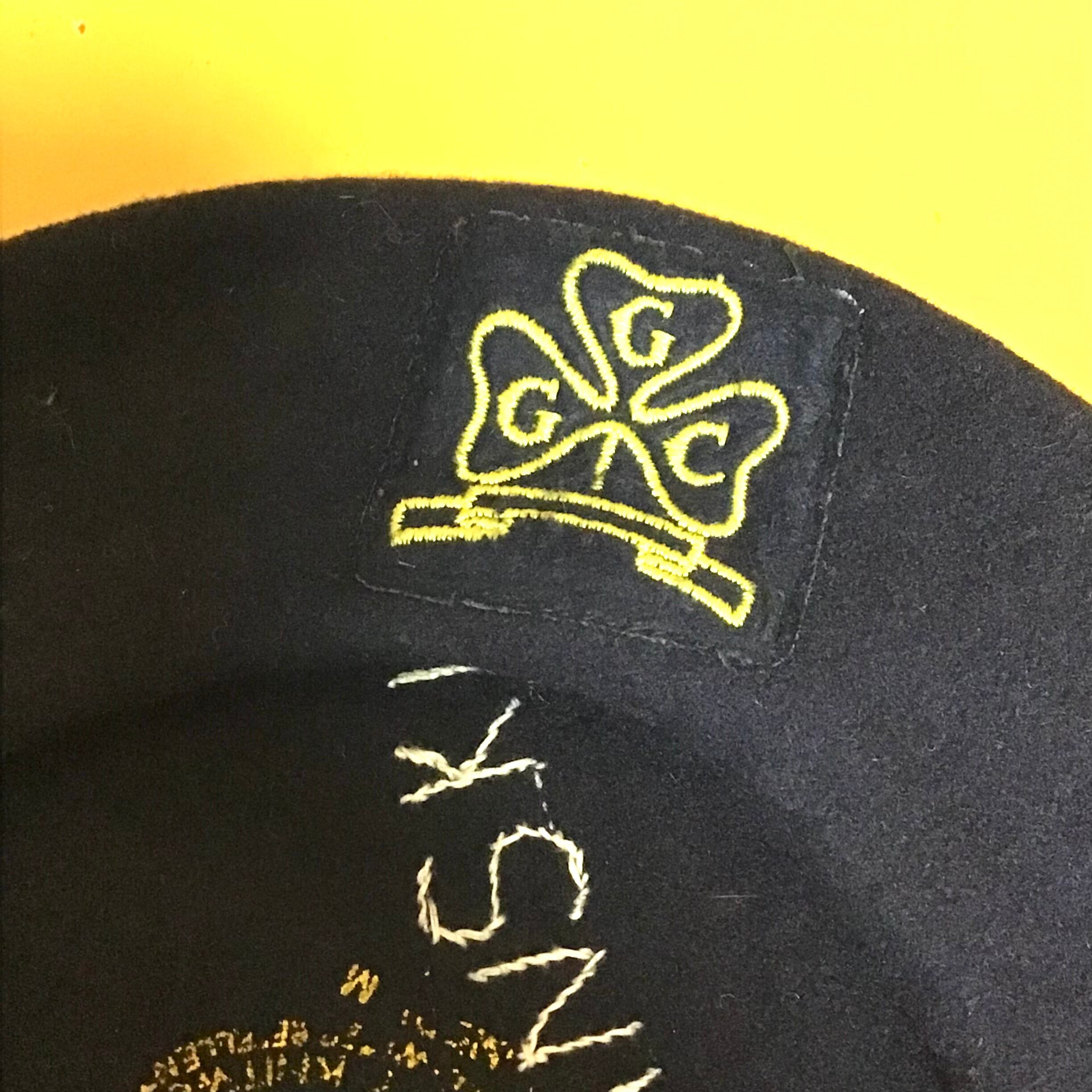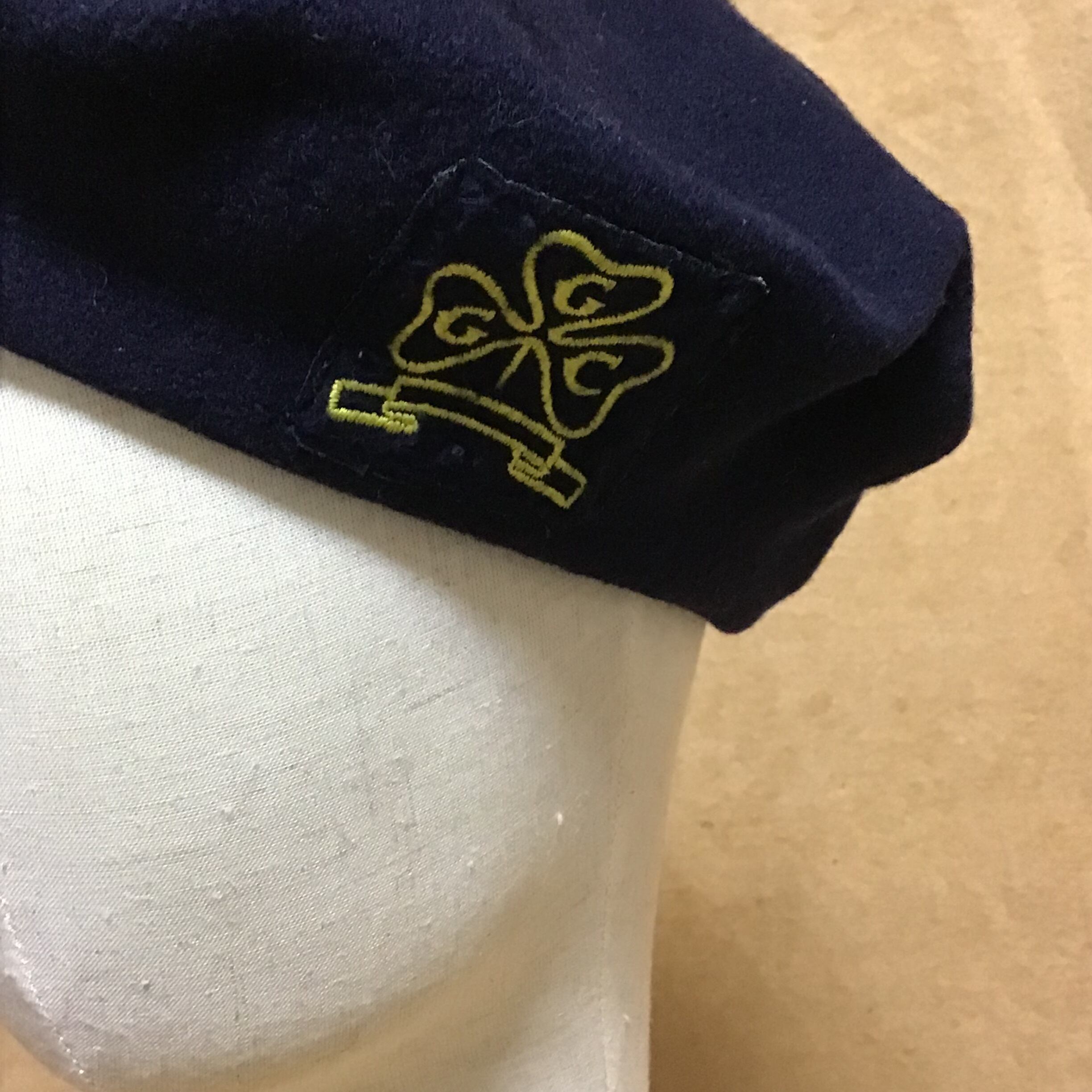 1960年頃のGGCワッペン付きベレー帽です。ベーシックなネイビーカラーにワッペンがポイント◎そして個人的には、内側に刺繍されたネーム刺繍が愛しくてたまらないです♡ワッペンは前後ろどっちにしても可愛いです!一応裏表にしても被れそうなので是非お試しください♡