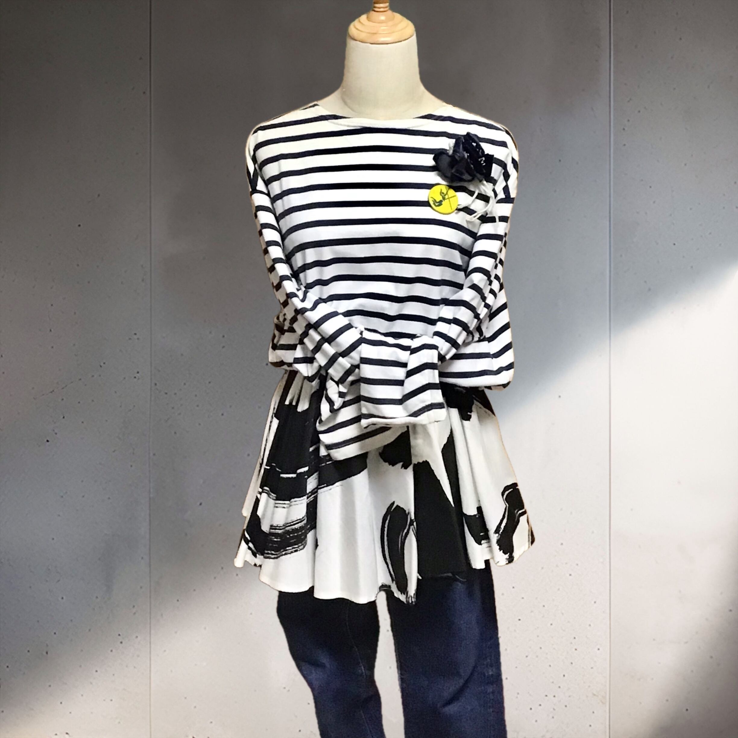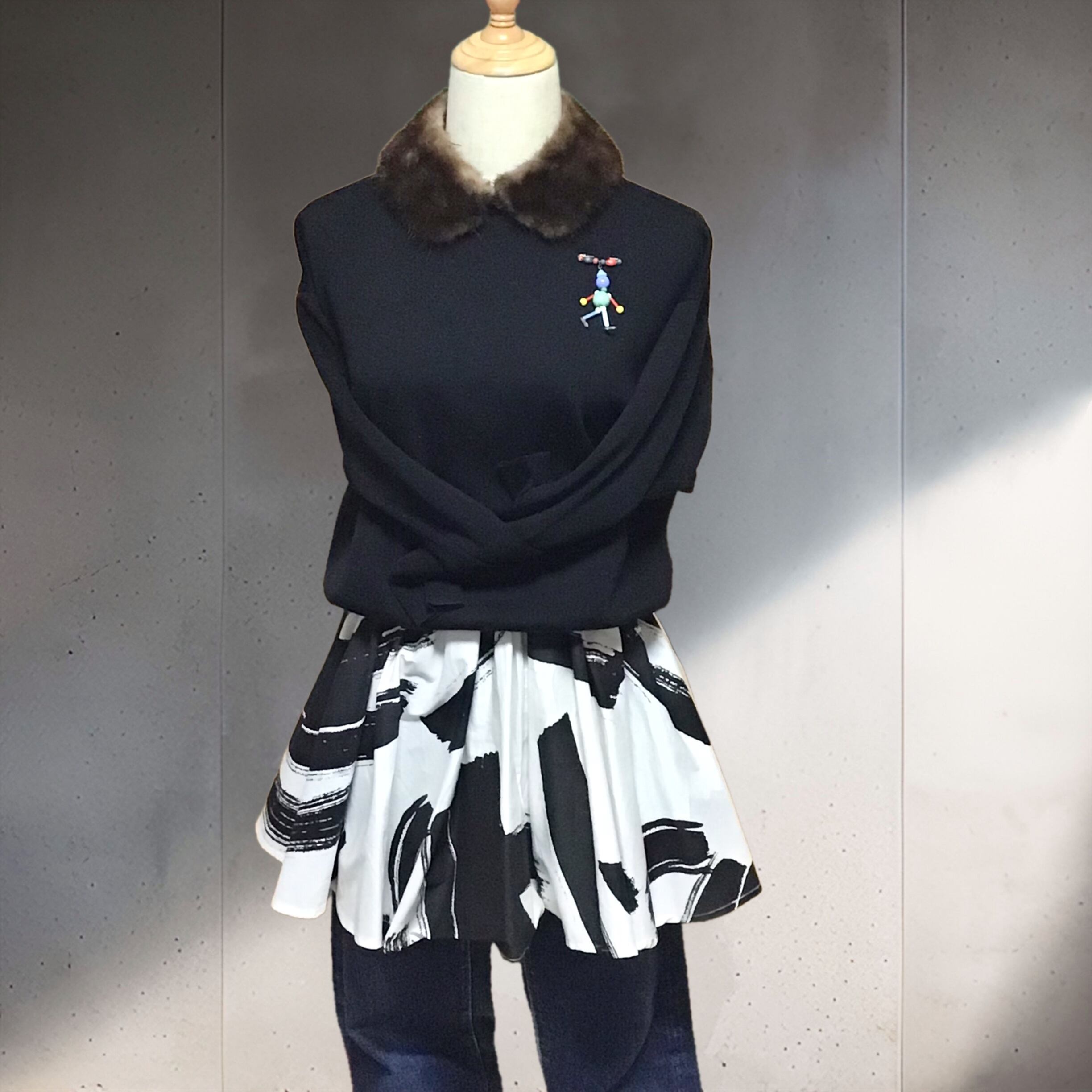 ヴィンテージファブリックのミニスカート、少し張りのありコットン地にたっぷりフレアーのボボリュームが可愛いです♡トップスの裾から覗かせたり、パンツに重ねたりしやすいミニ丈で、オールシーズンいろいろなコーディネートが楽しめそうです◎大柄なので柄×柄の合わせも良い感じです!